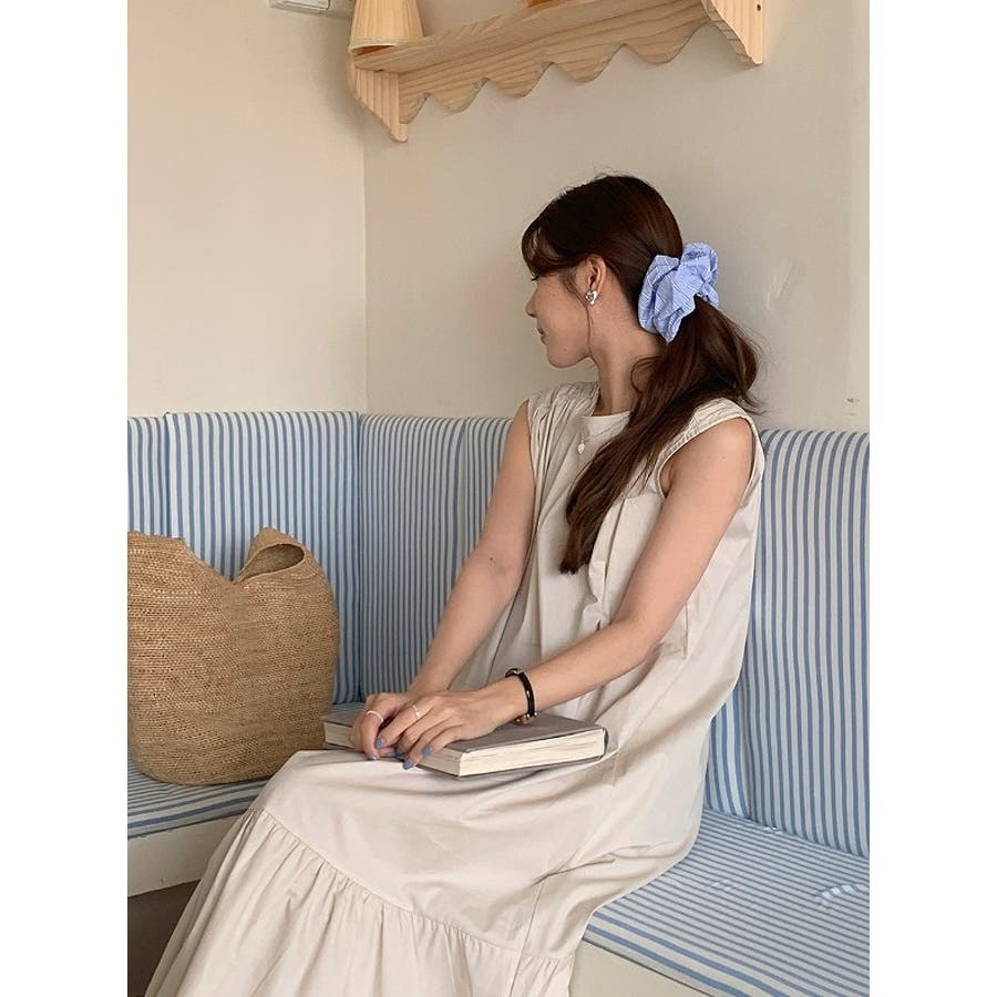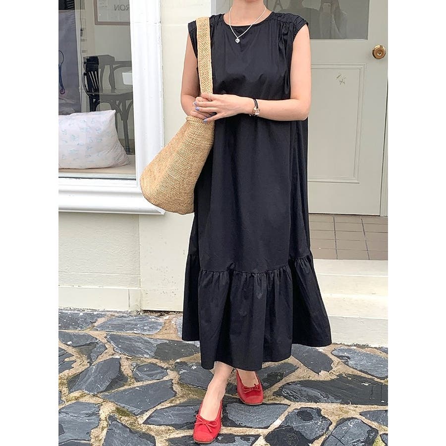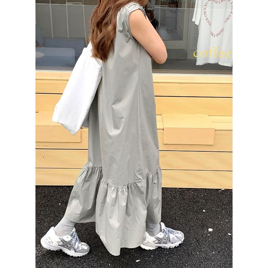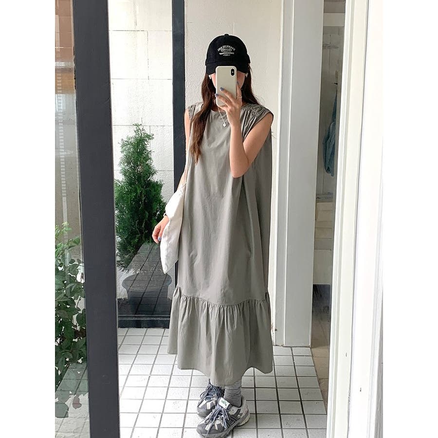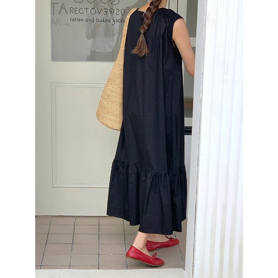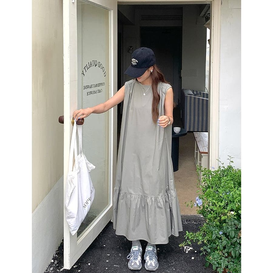シンプル袖なし無地ジャケットワンピース