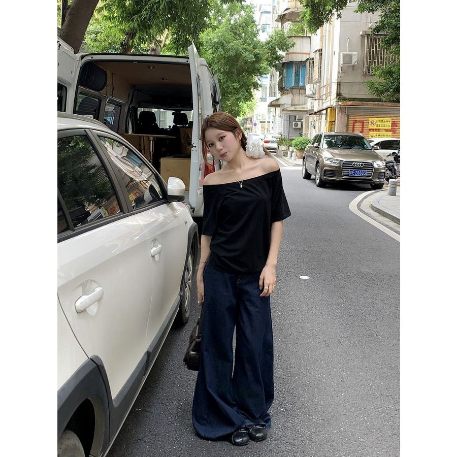 オフショルダー半袖TEE