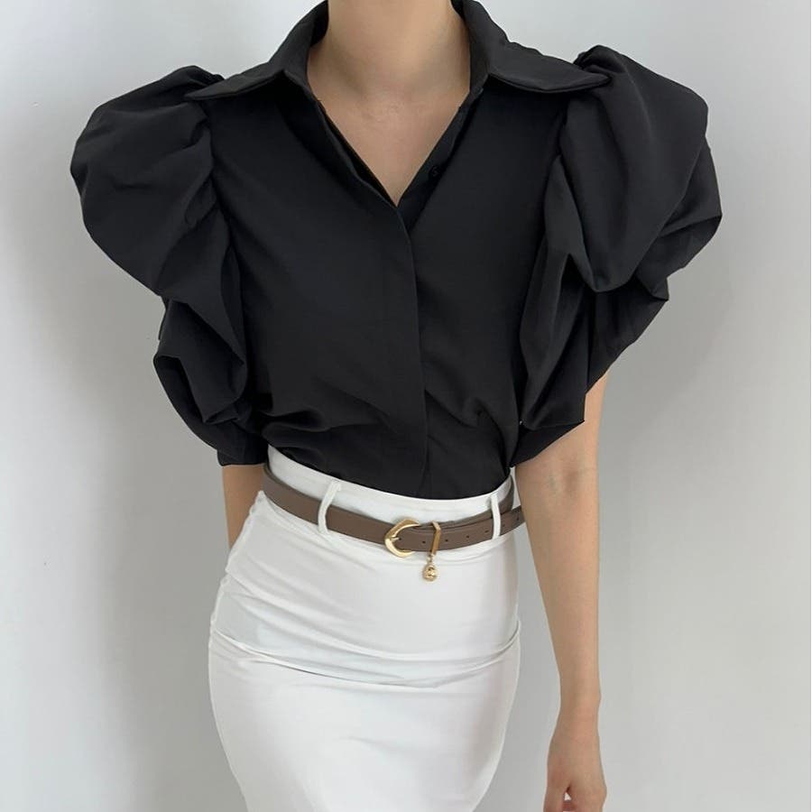 デザイン襟付きシングルブレストシャツ