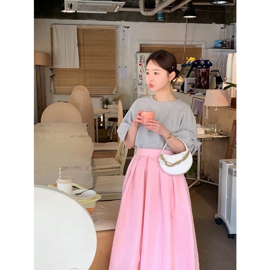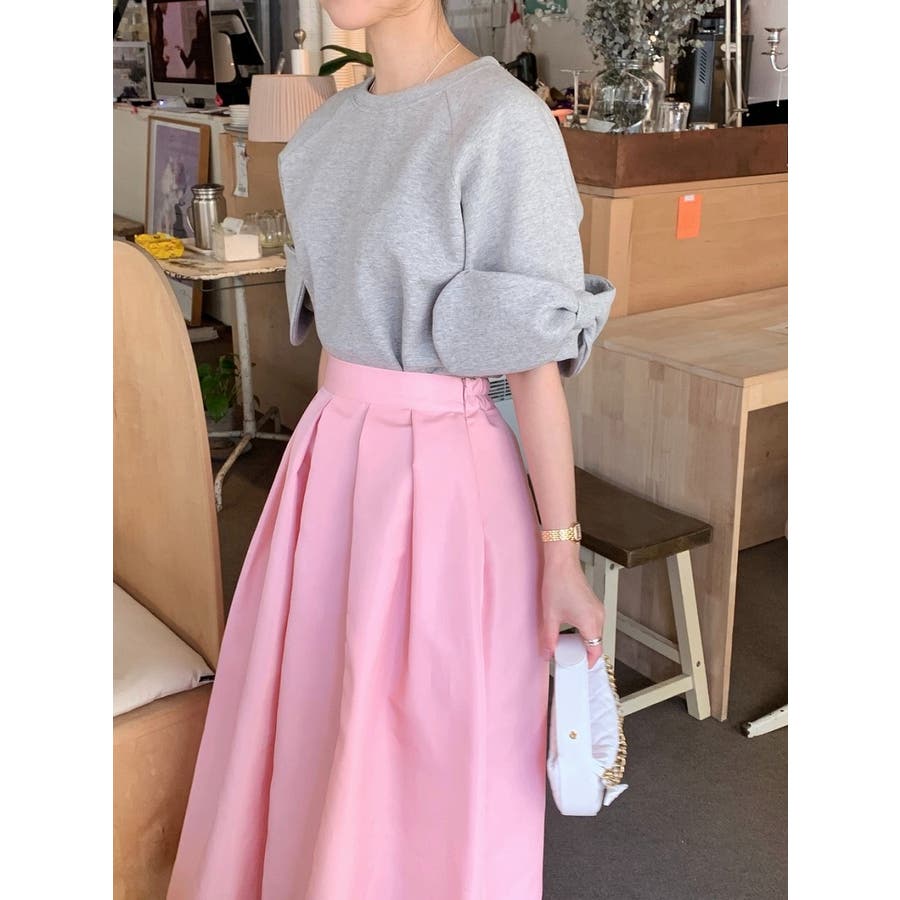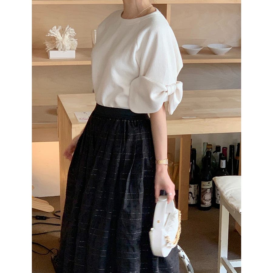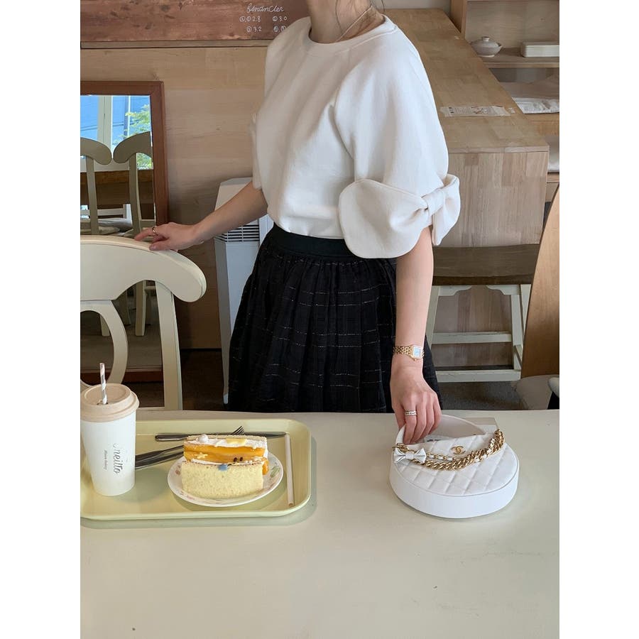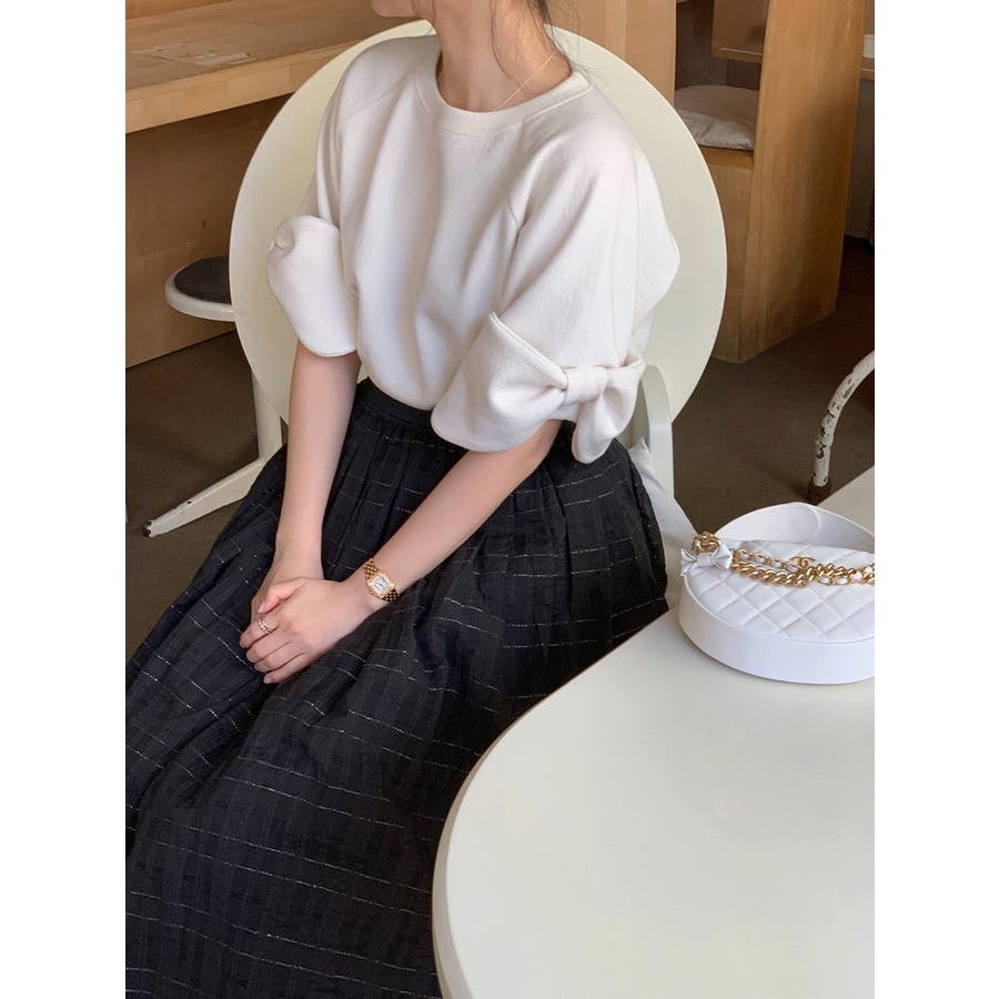 リボンタイ半袖クルーネックスウェット