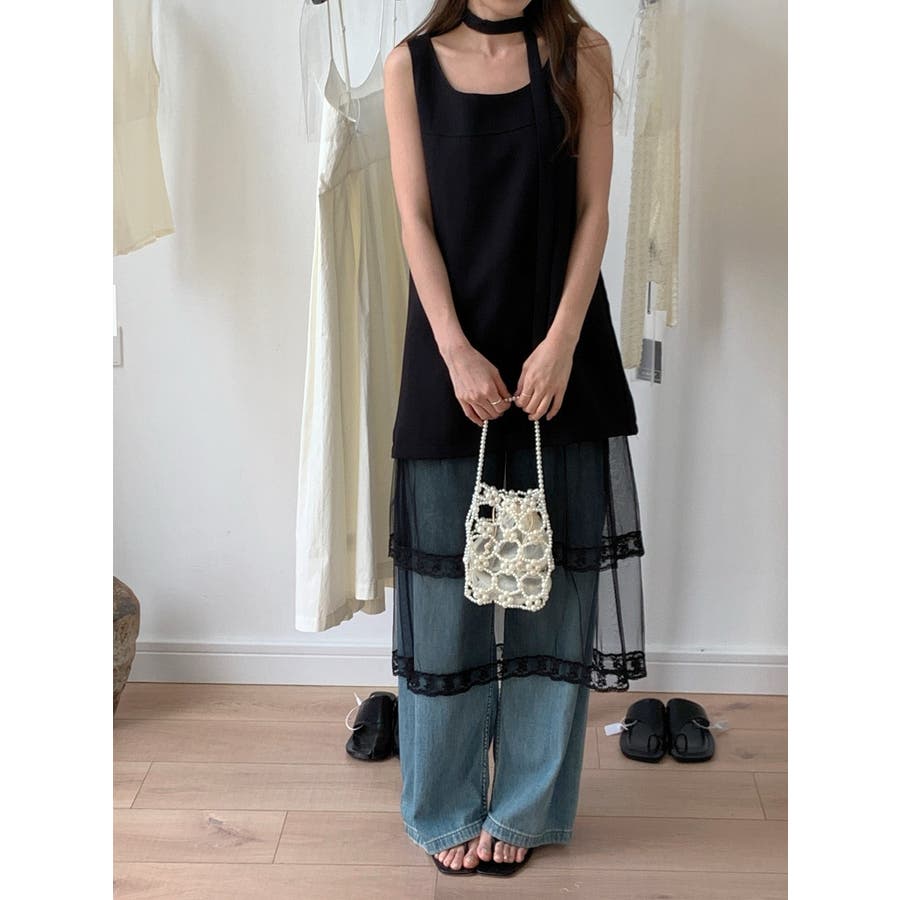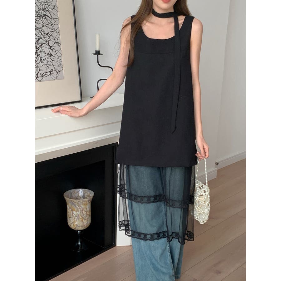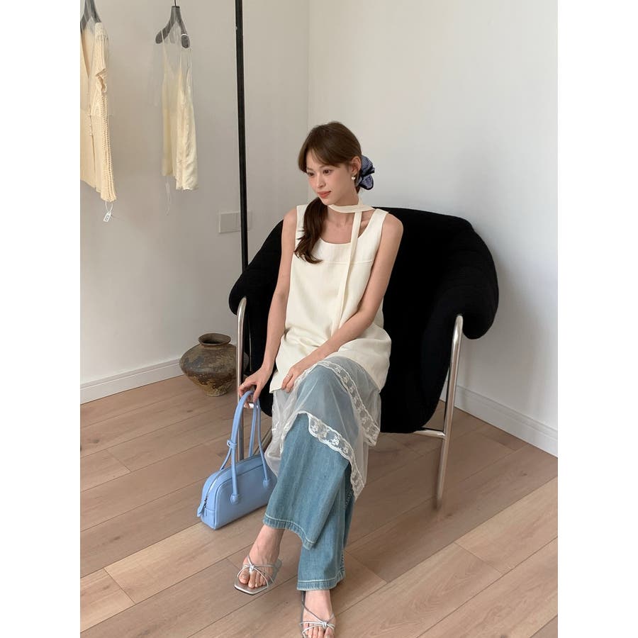 袖なしリボンワンピース