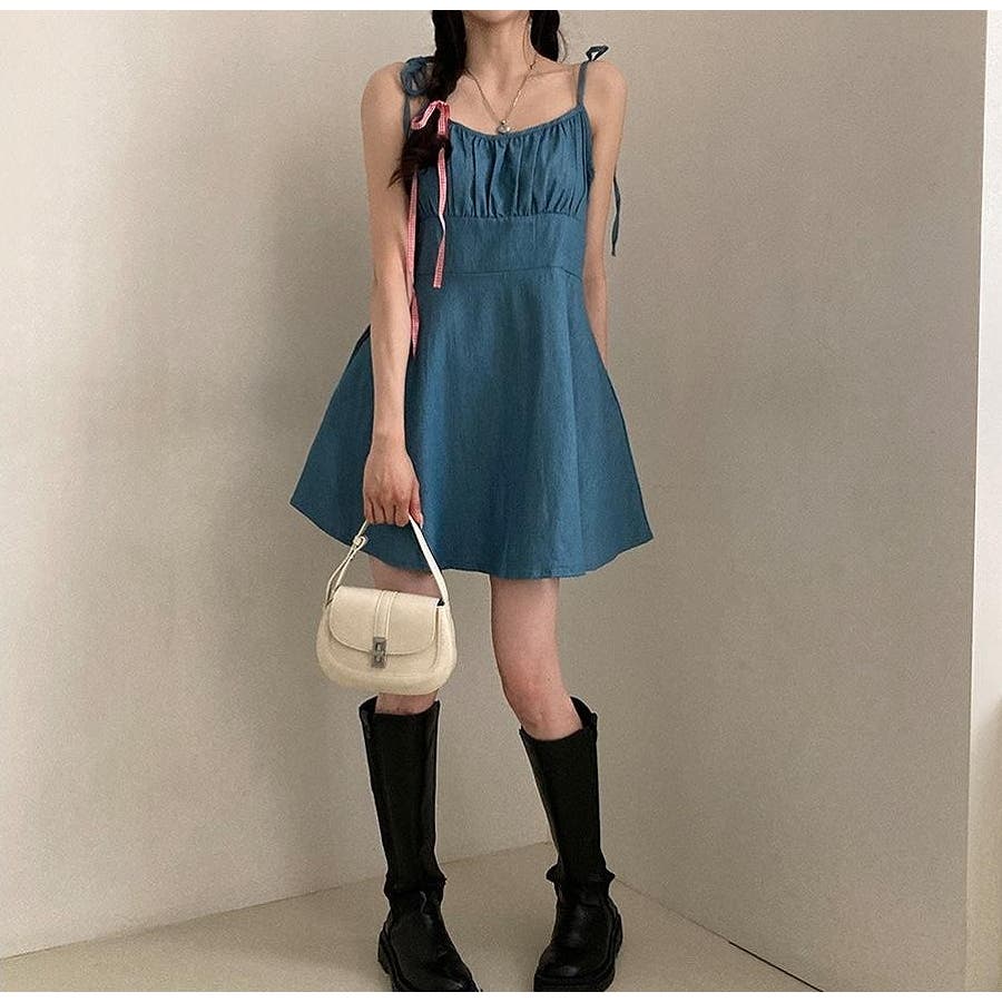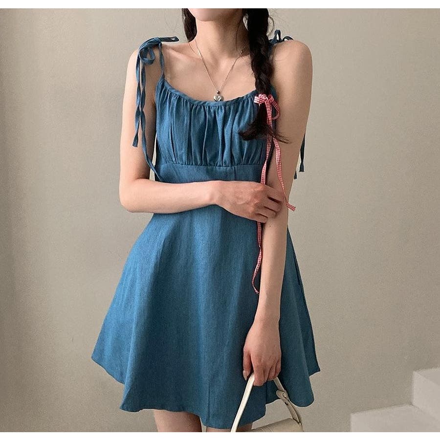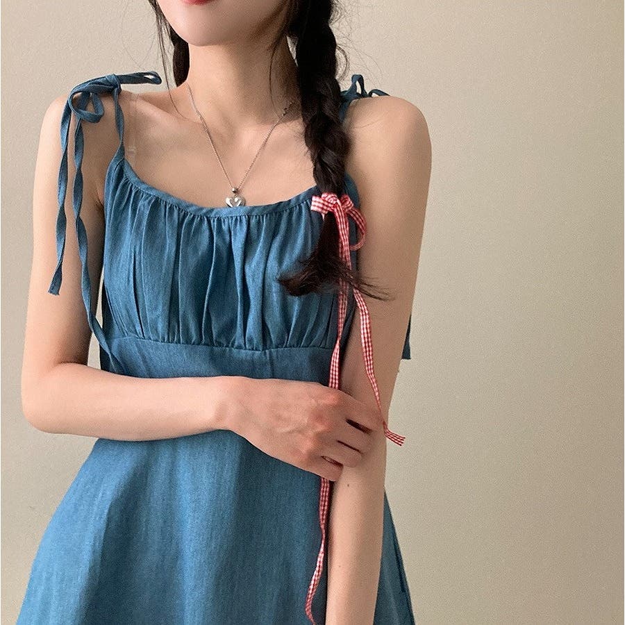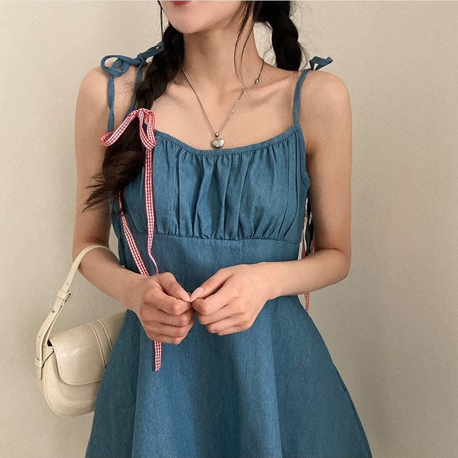 リボンショートデニムワンピース