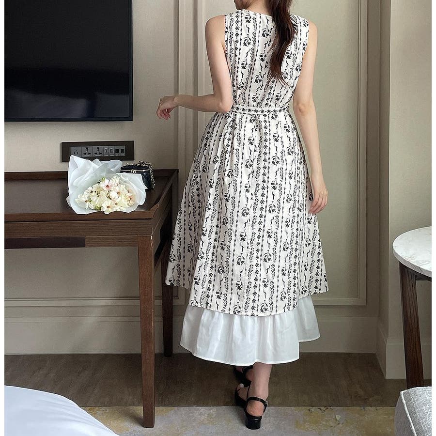 袖なしVネック切り替えワンピース