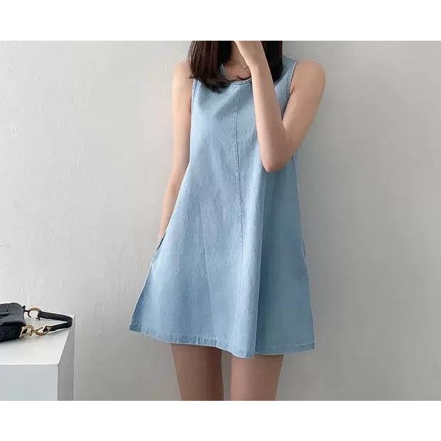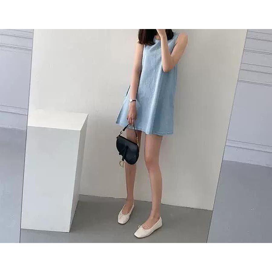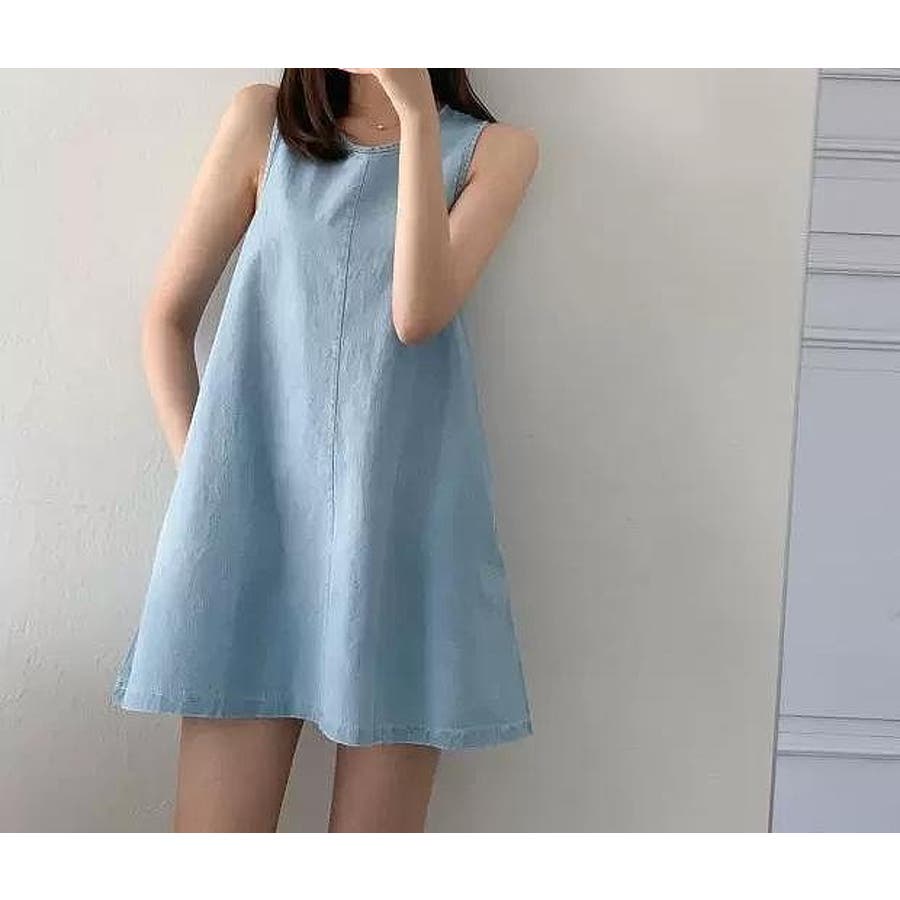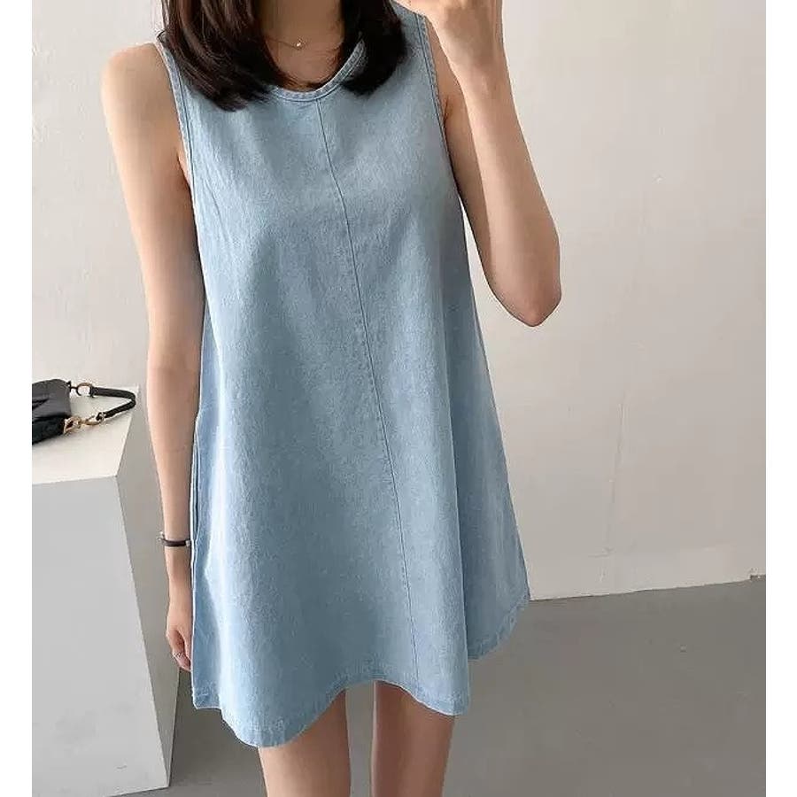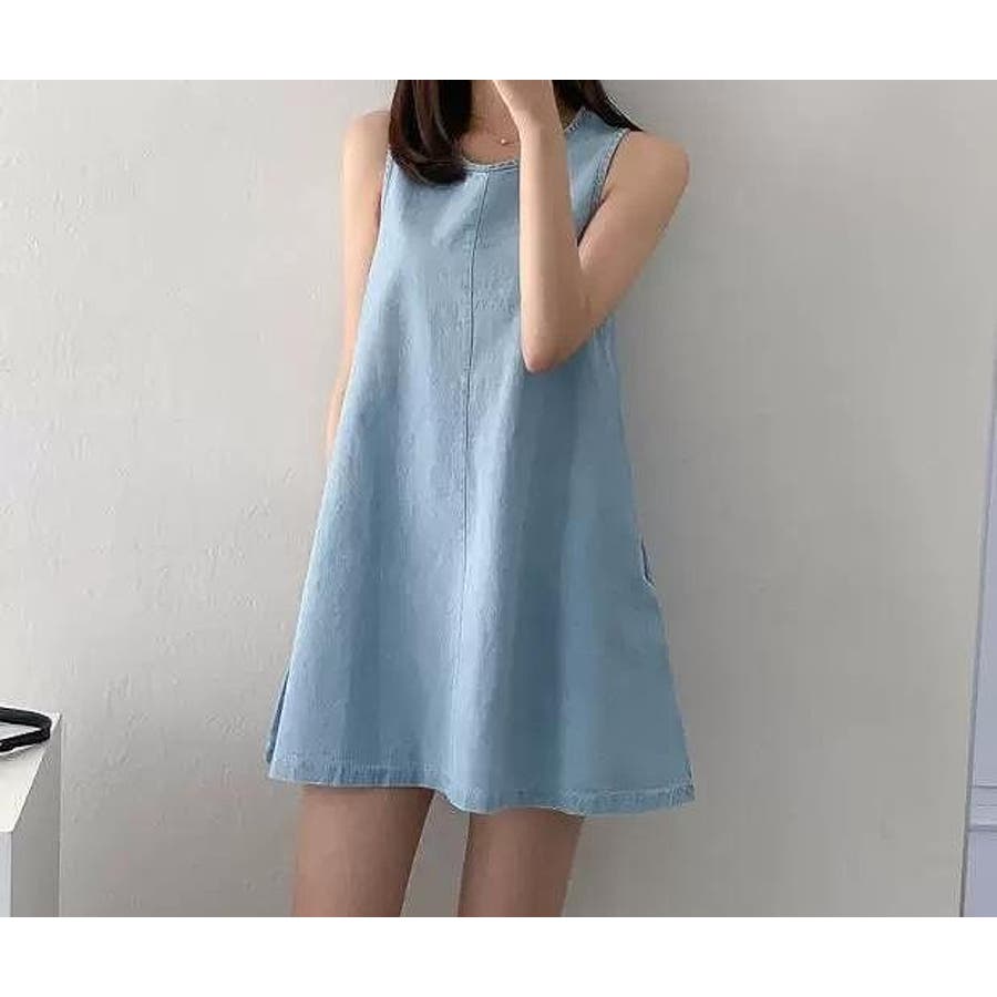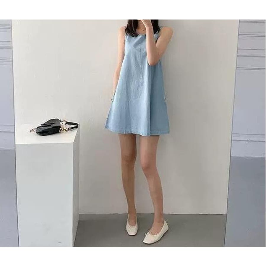 袖なしショートデニムワンピース