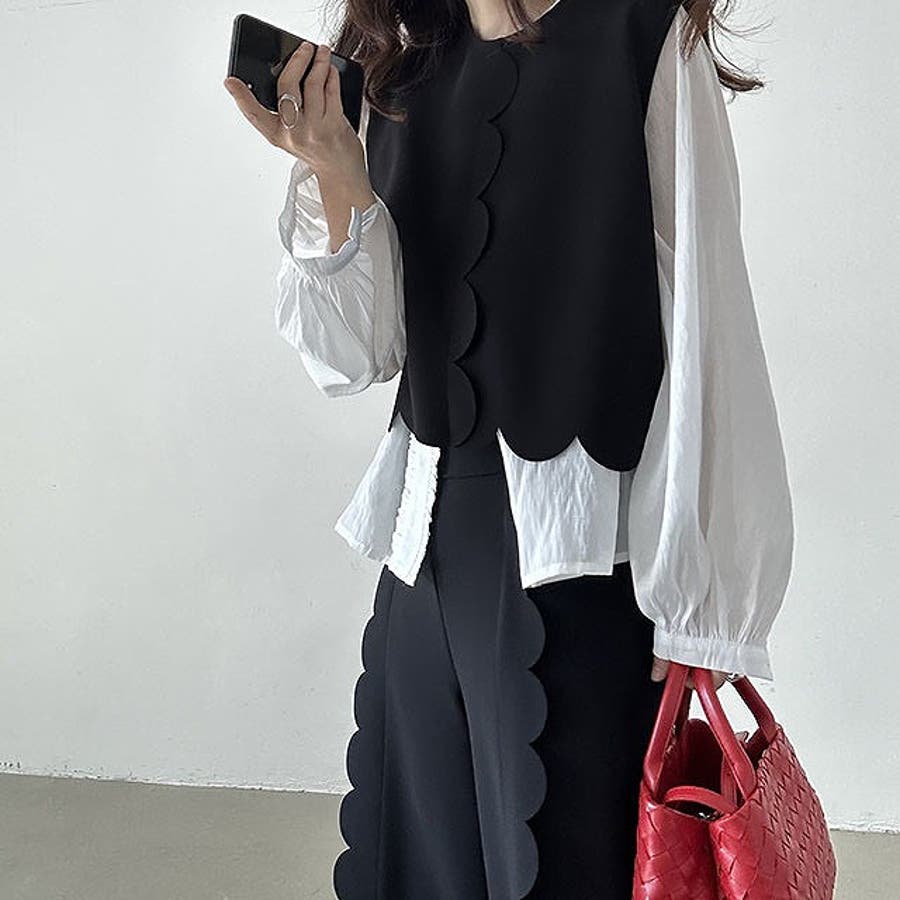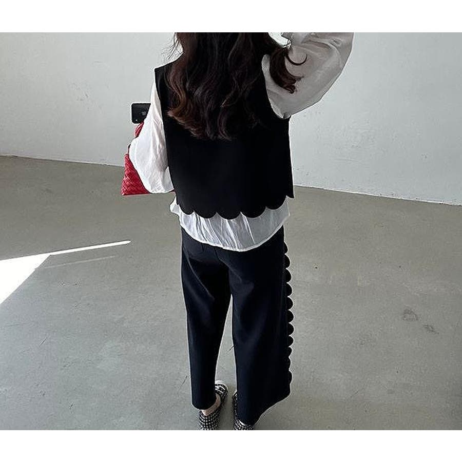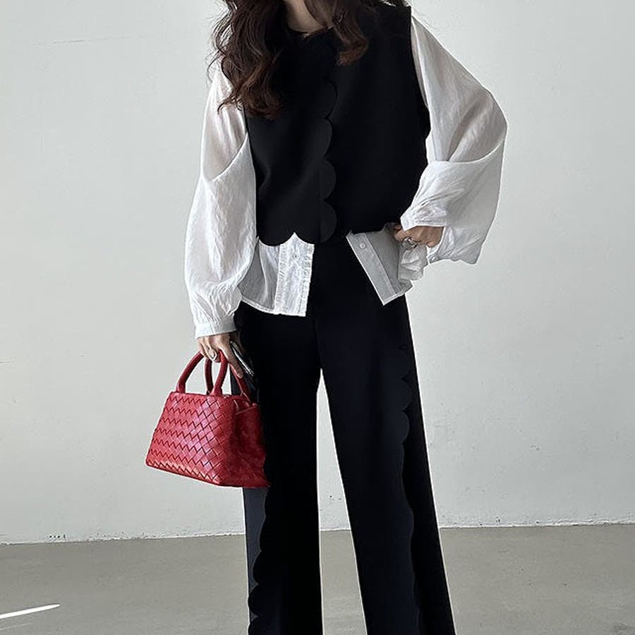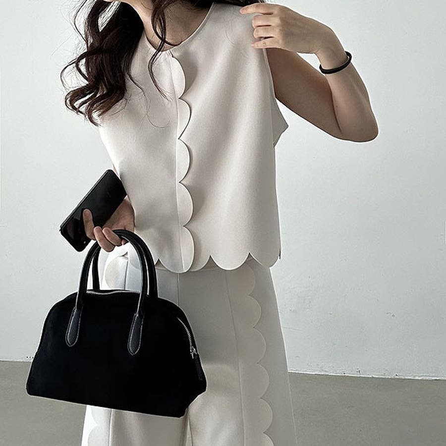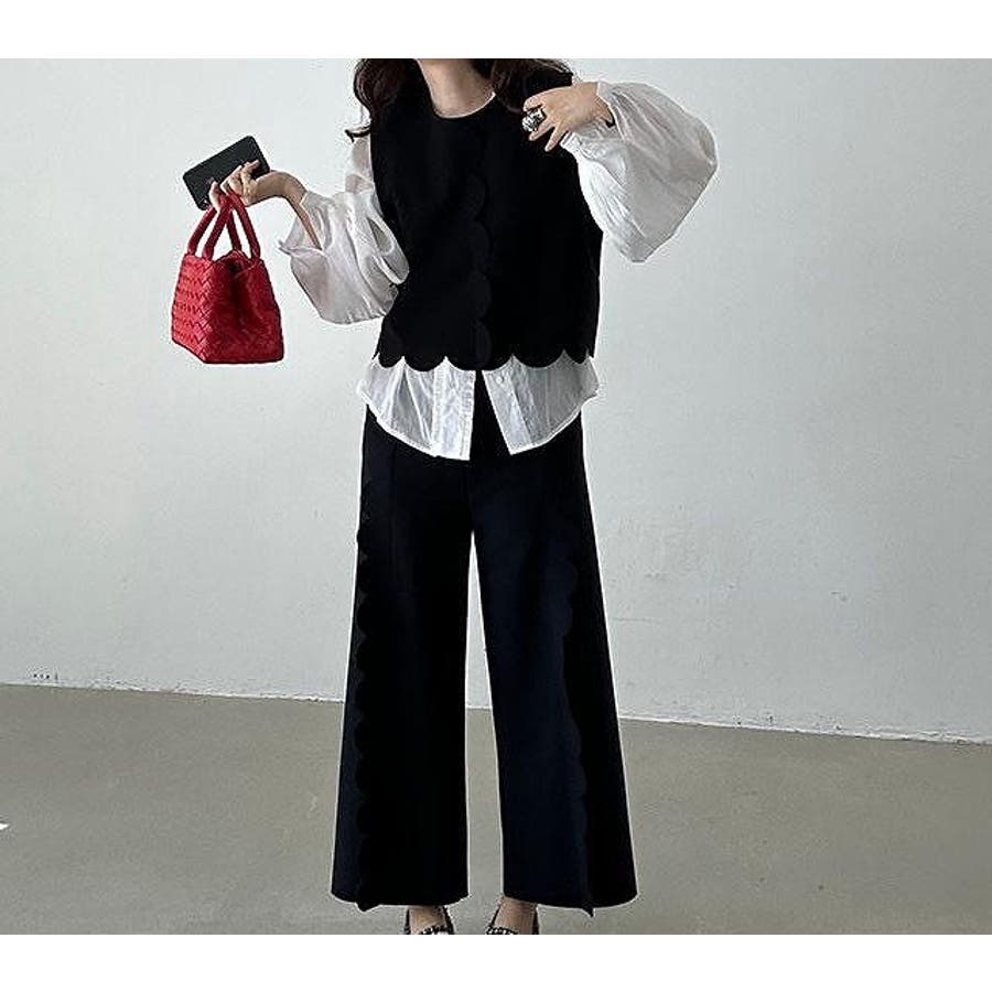 袖なしクルーネックトップスハイウエストパンツセットアップ