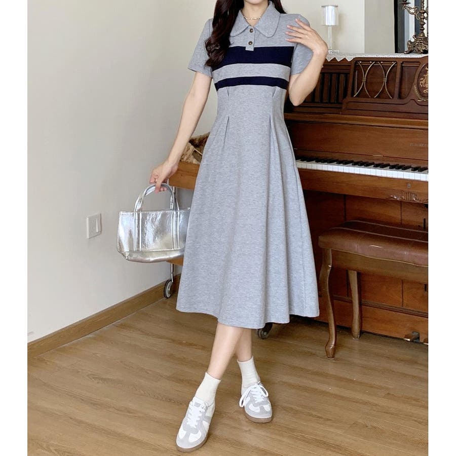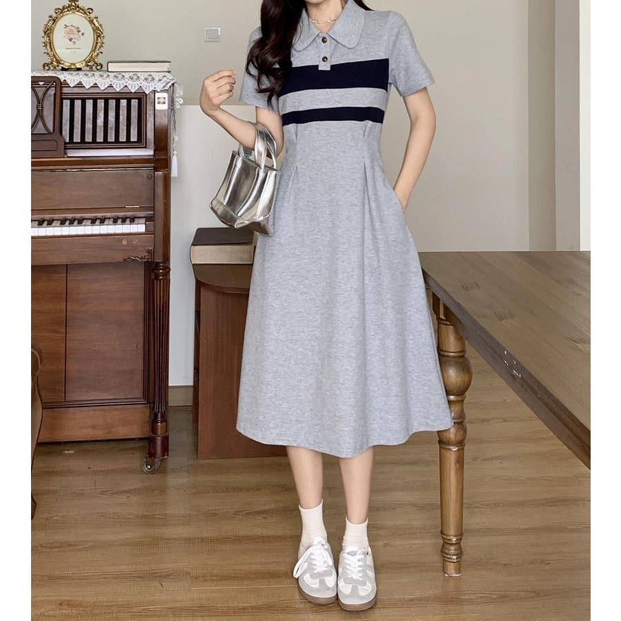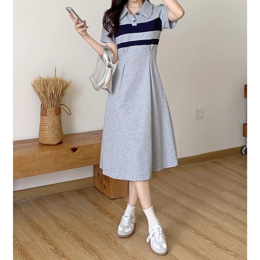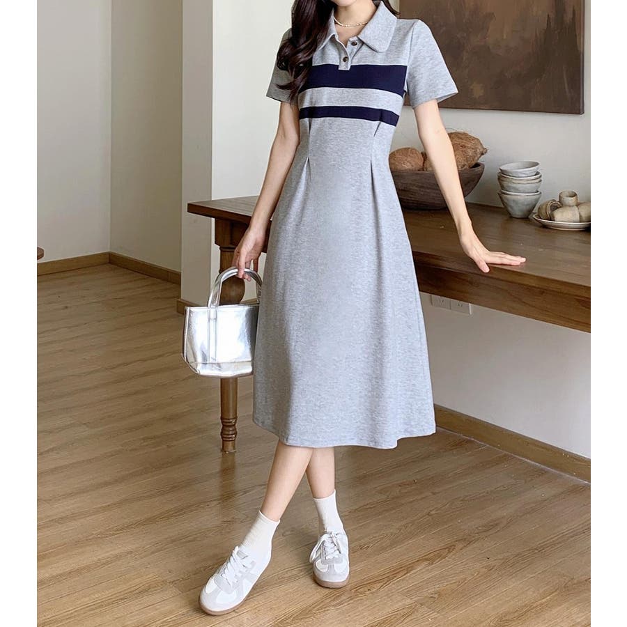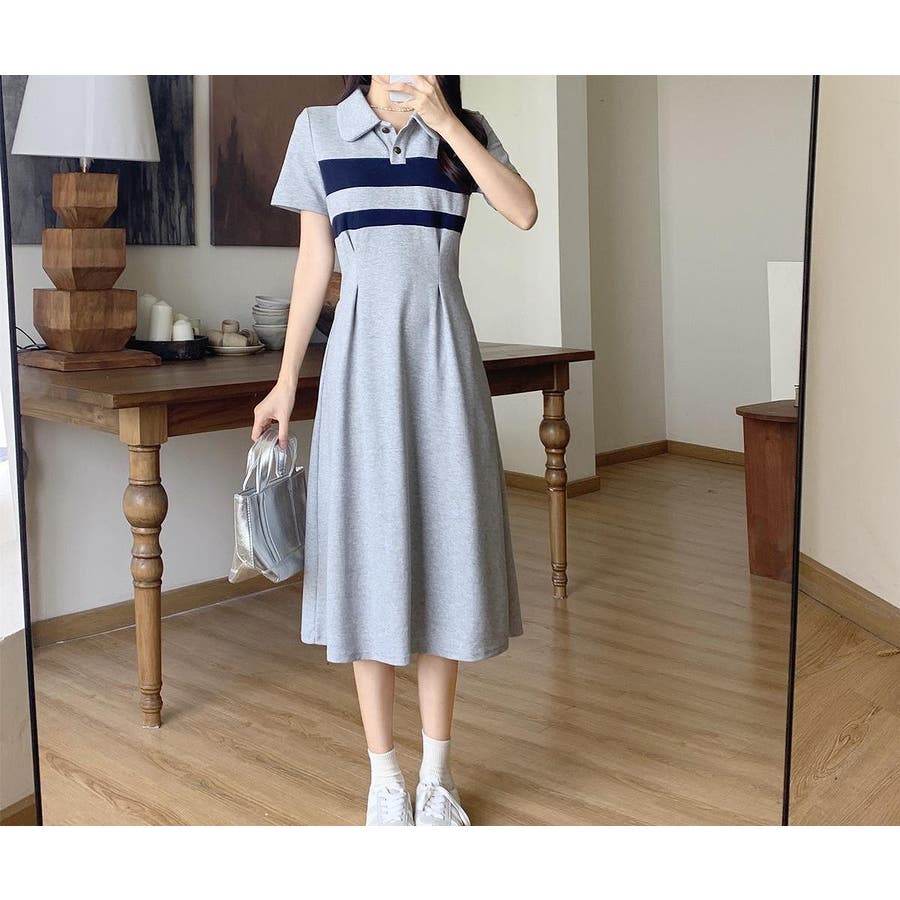 半袖ボタンダウンワンピース