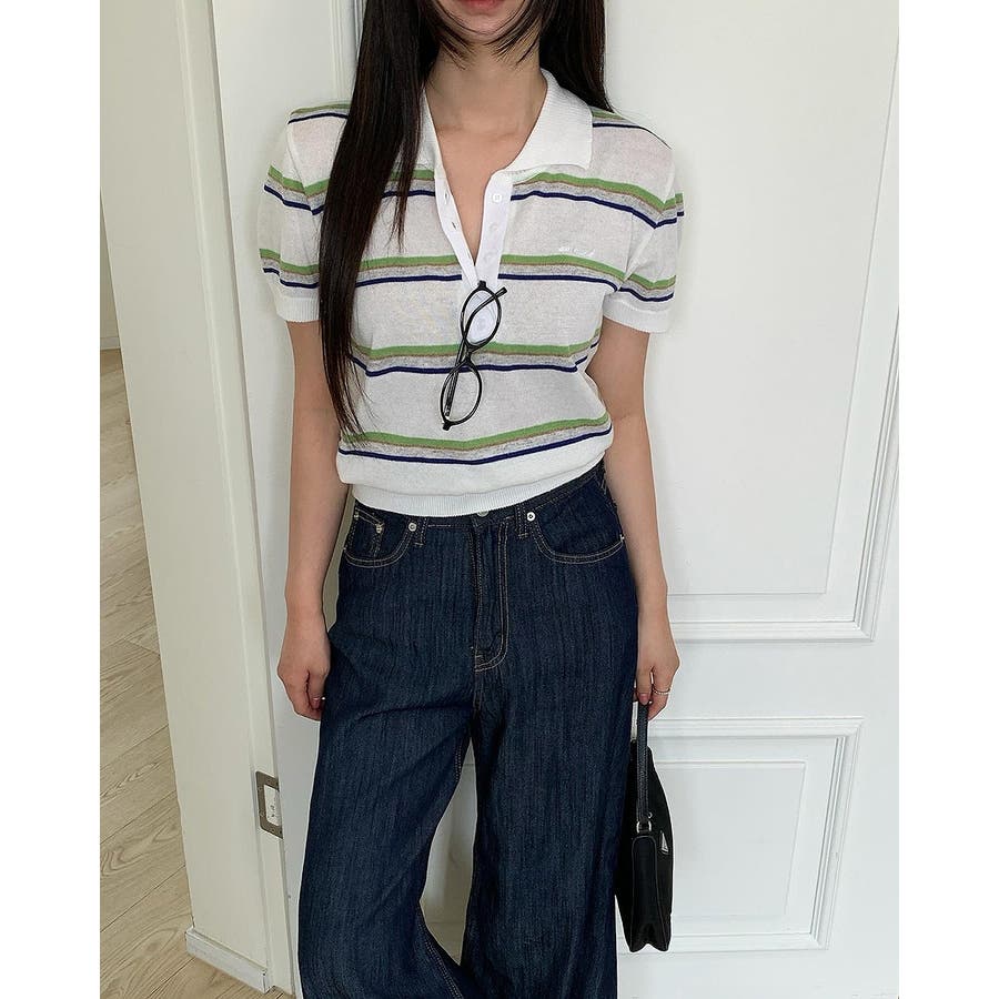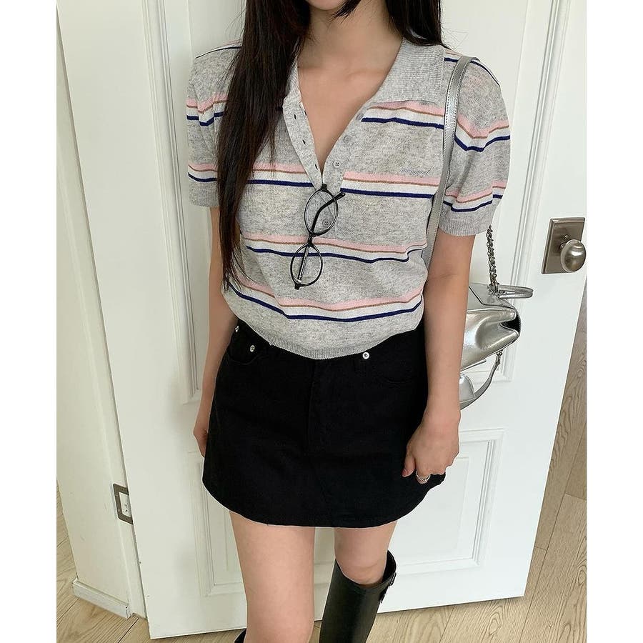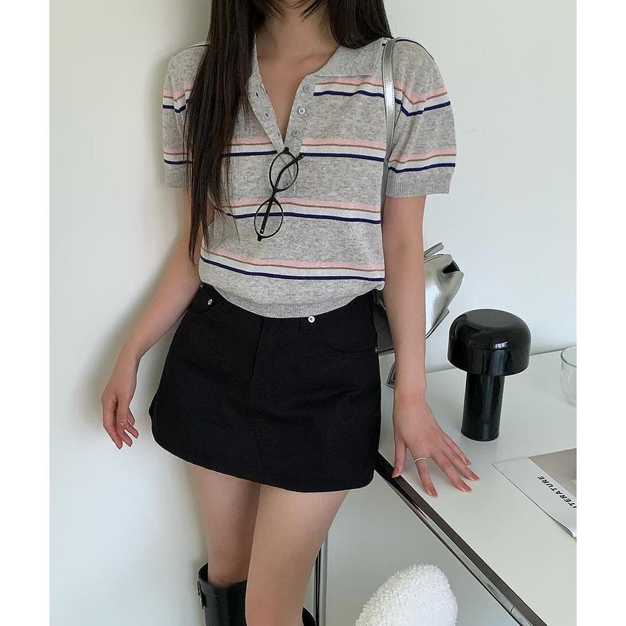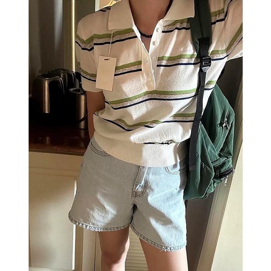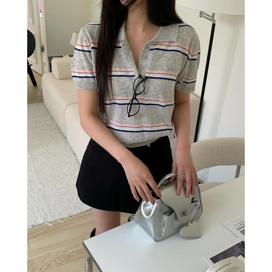 ニット半袖ボタンダウントップス