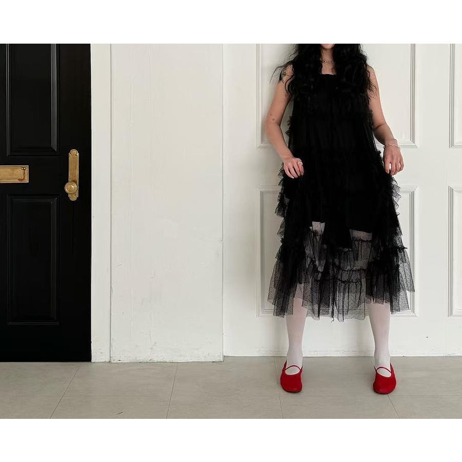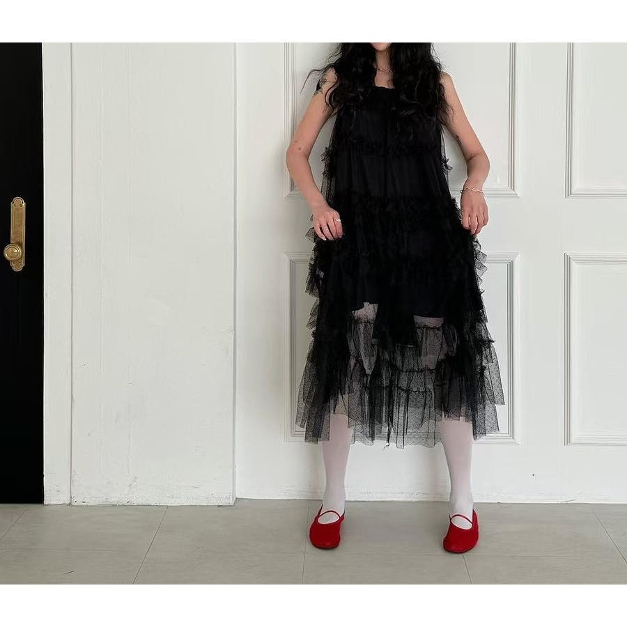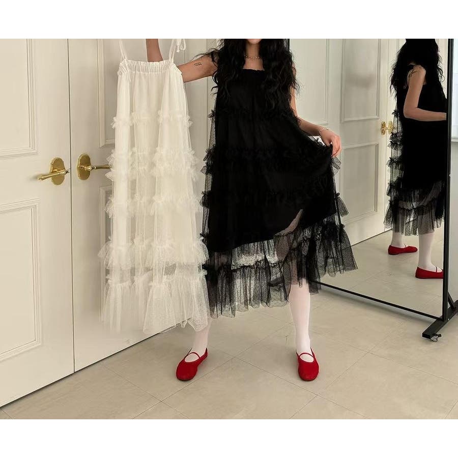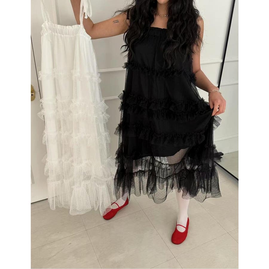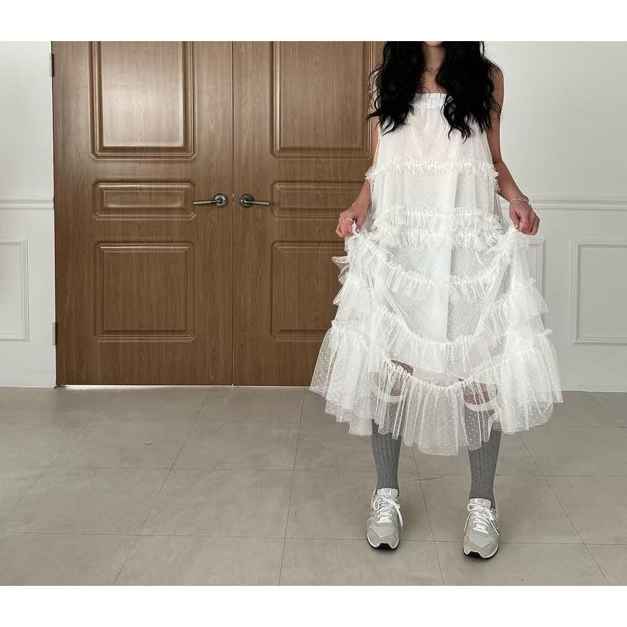 チュールドット柄キャミワンピース