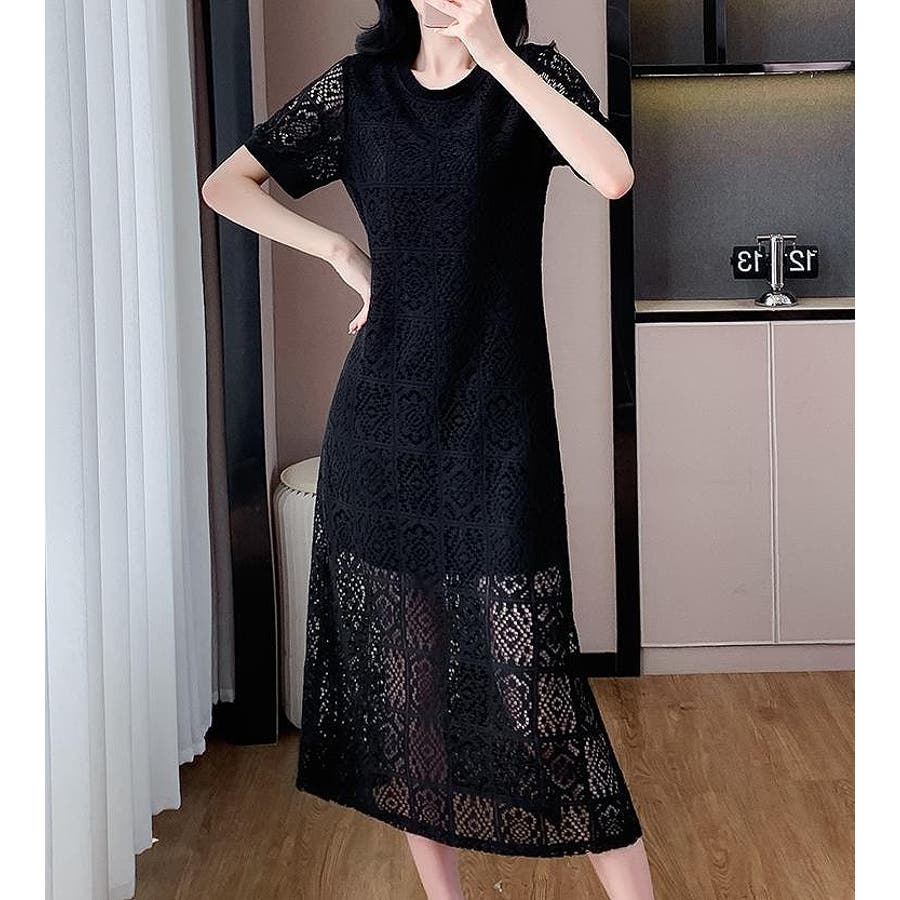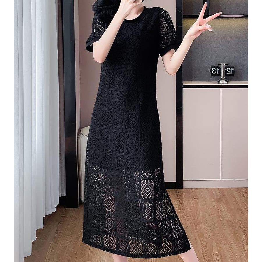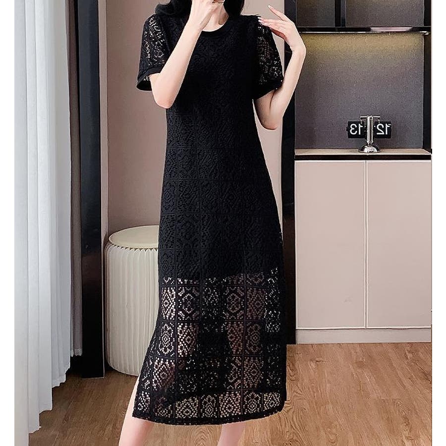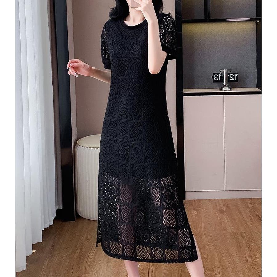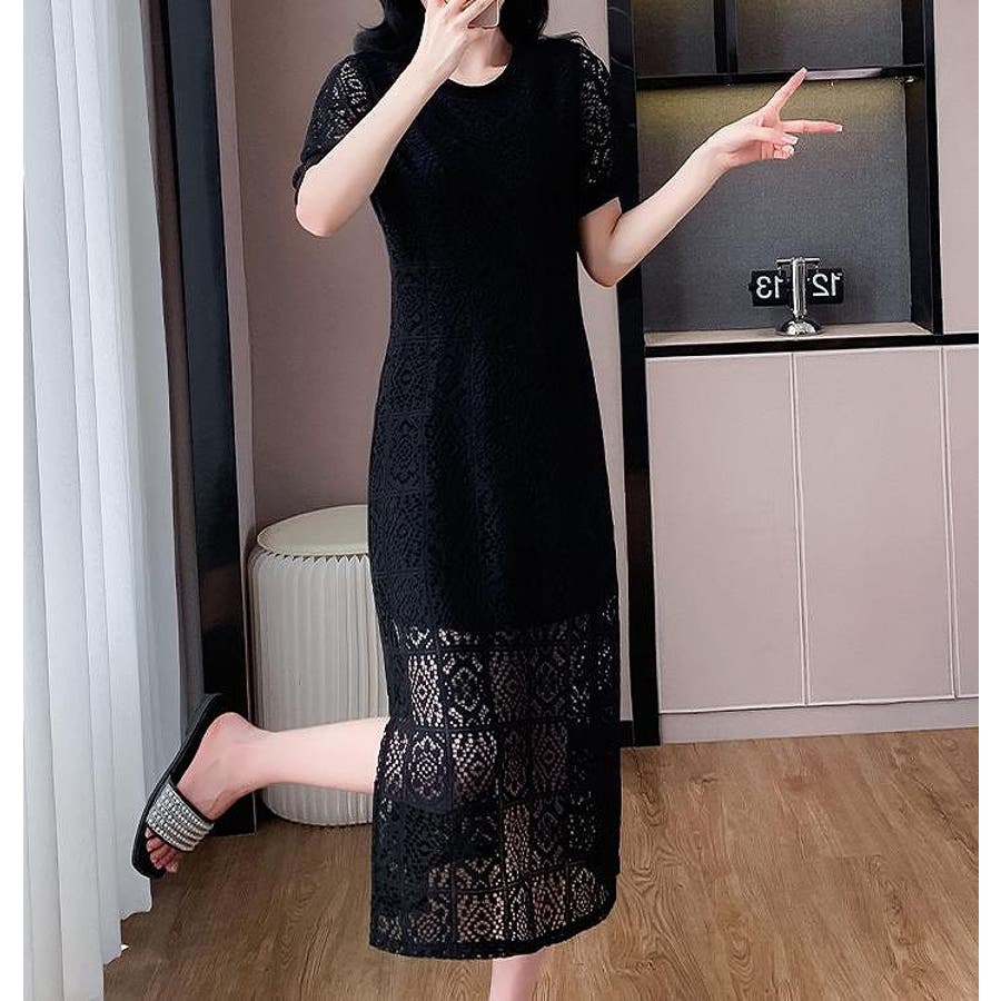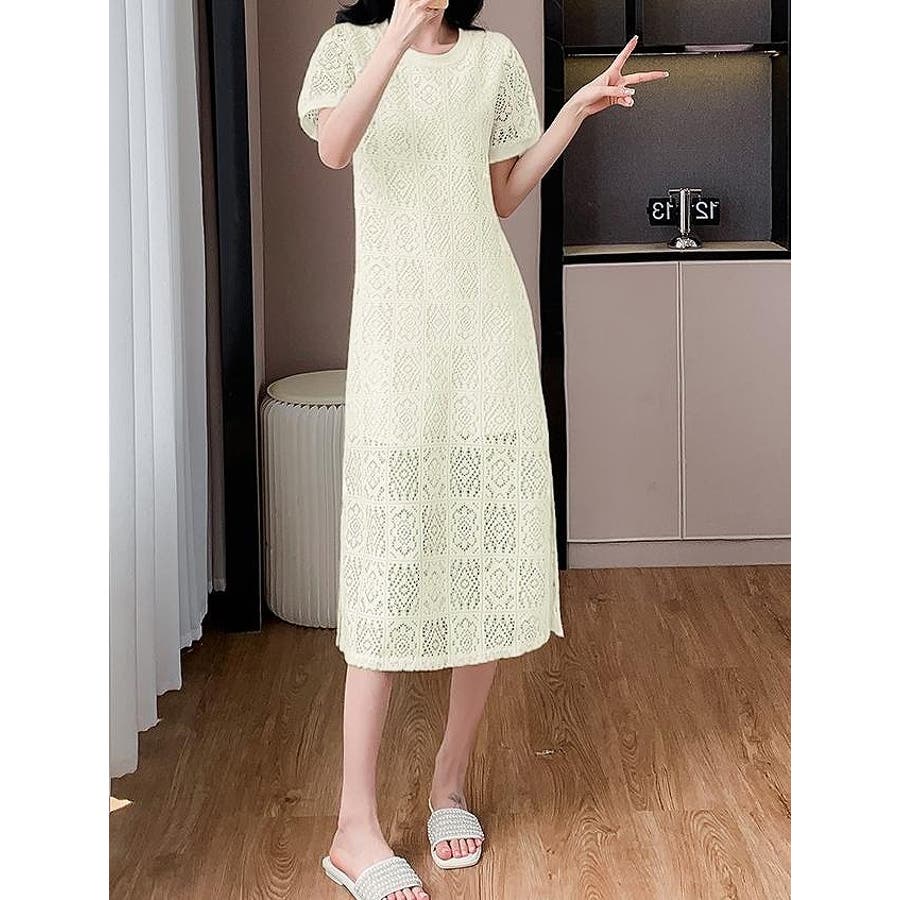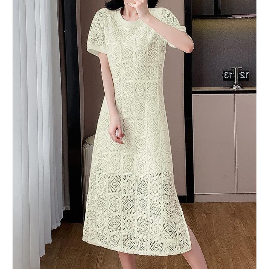 半袖パンチングレースワンピース