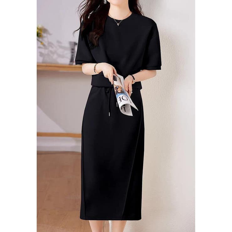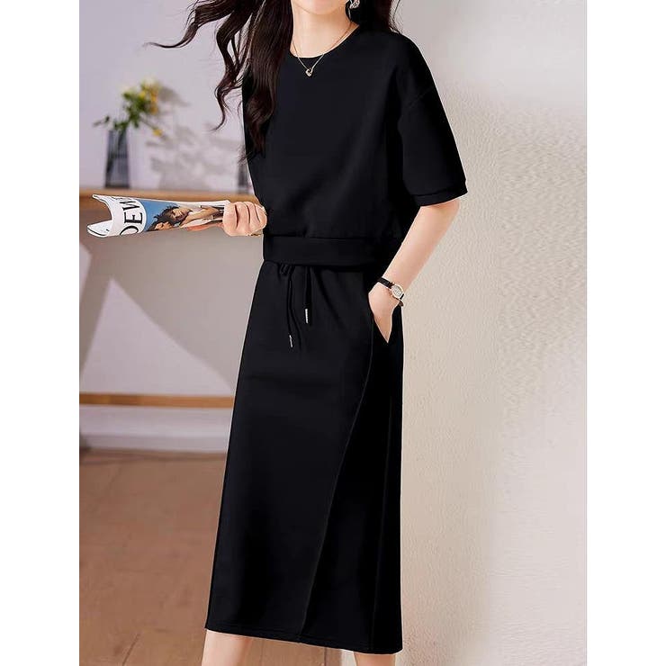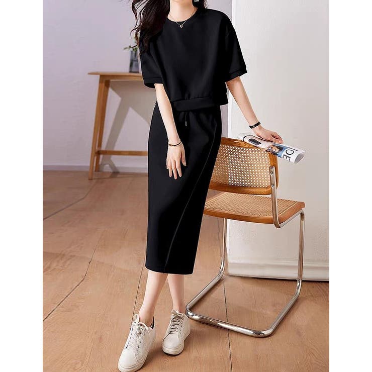 半袖トップスゴム付きスカートセットアップ