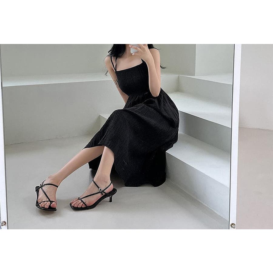 シャーリングティアード首をかけるキャミワンピース首掛けキャミソールワンピース