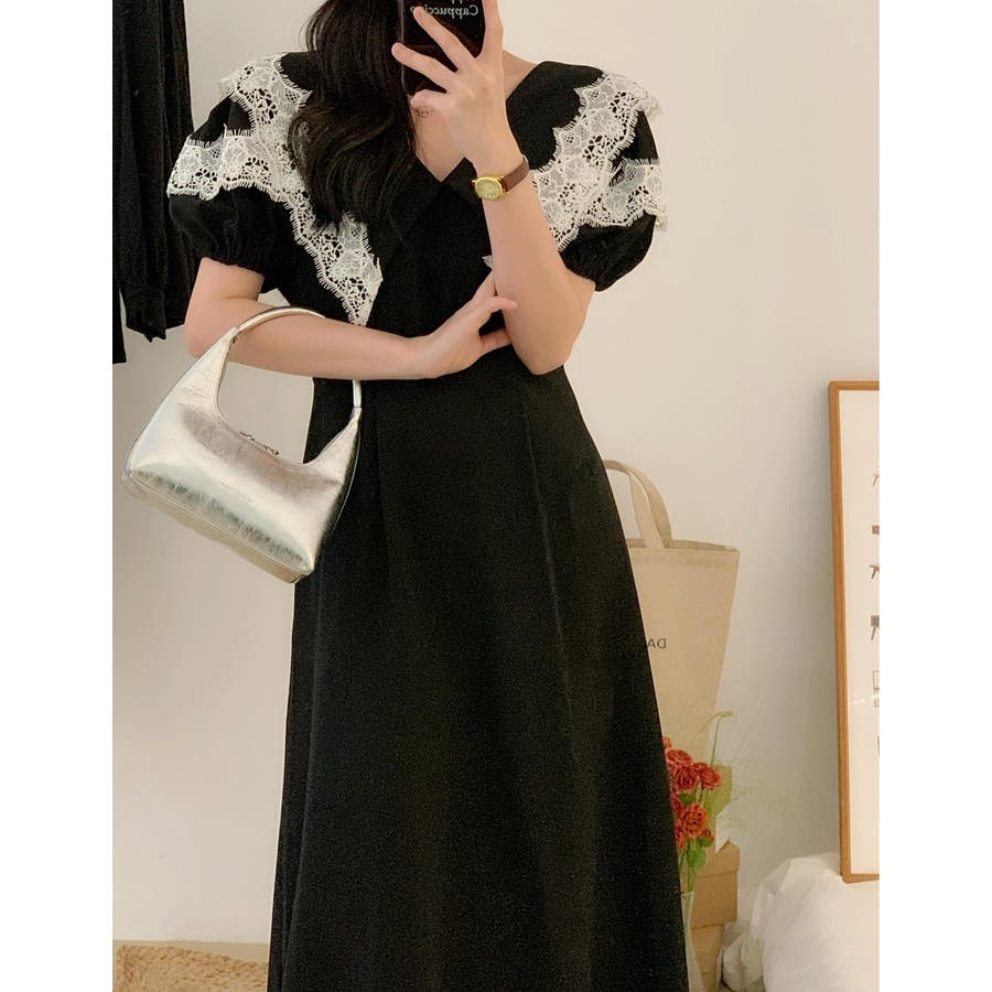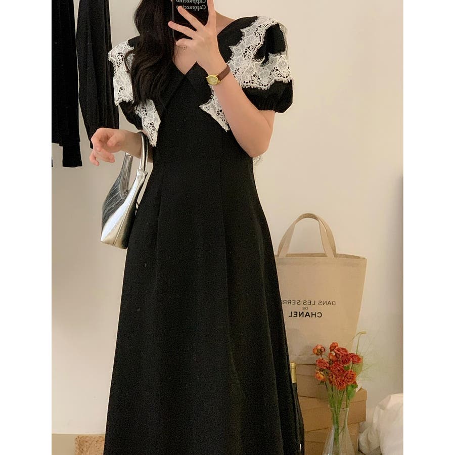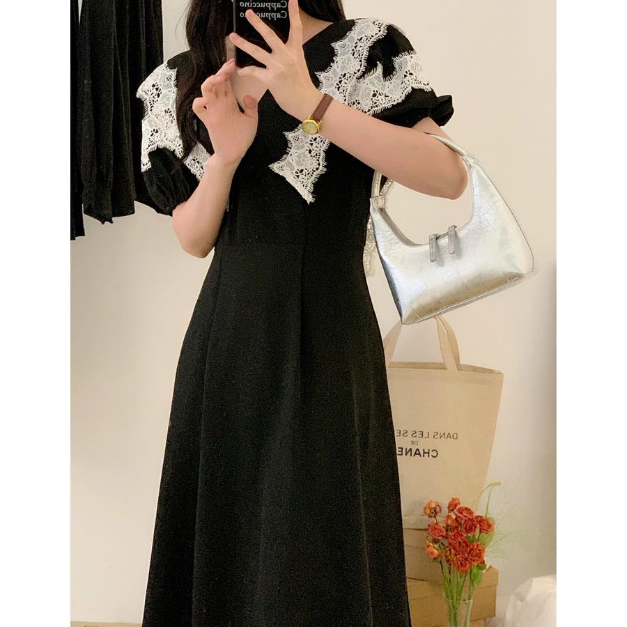 リボンレース半袖ワンピース