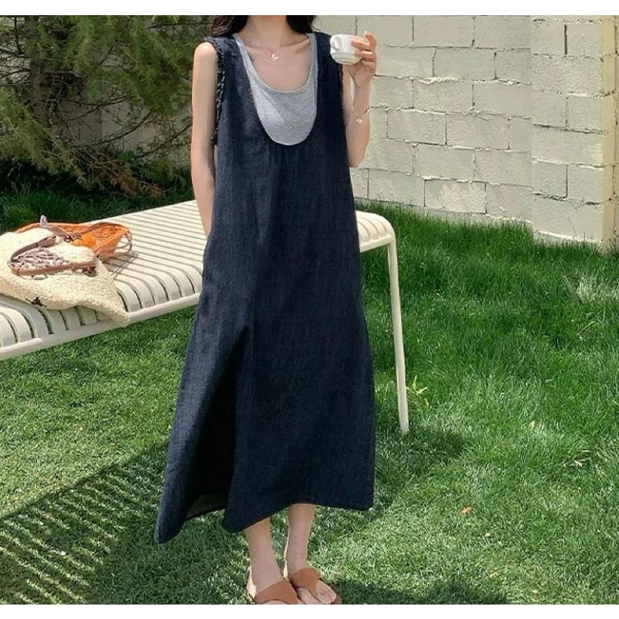 切り替え袖なしデニムワンピース