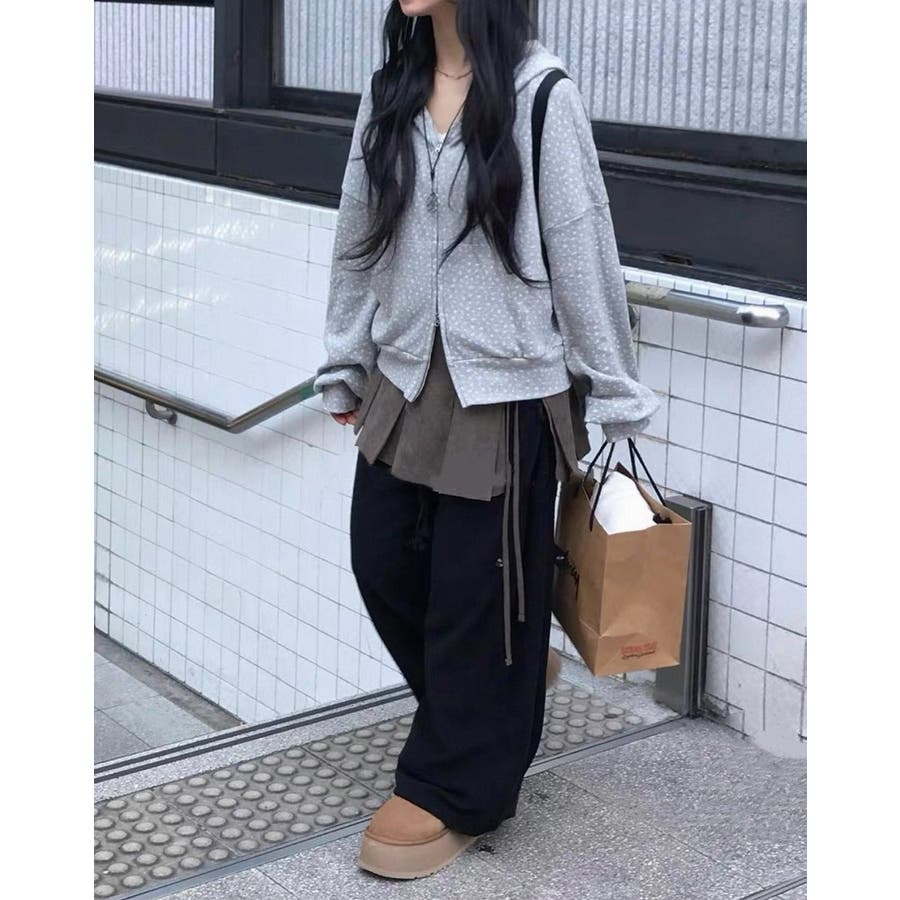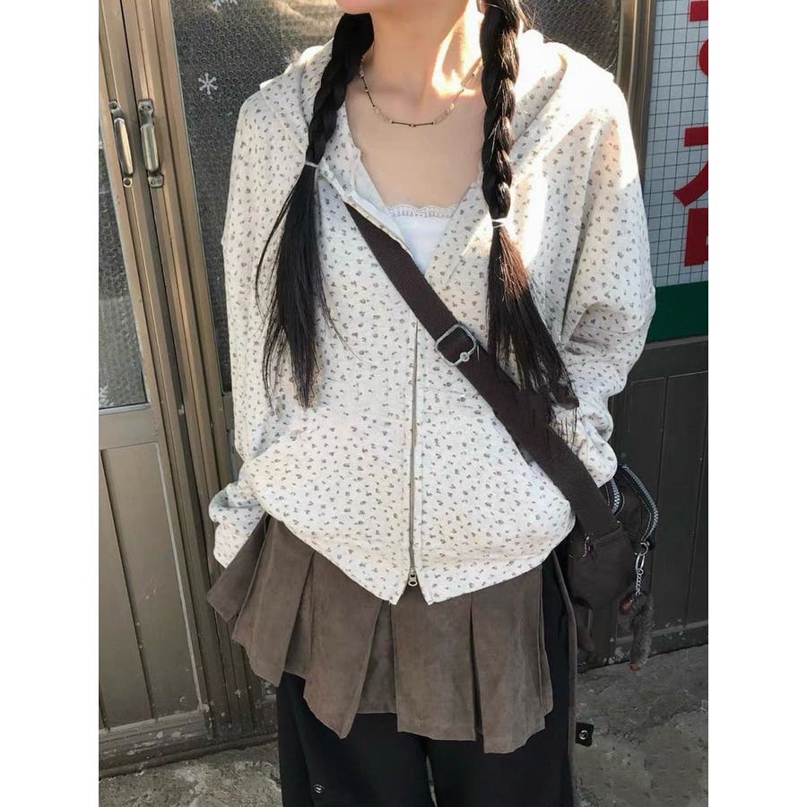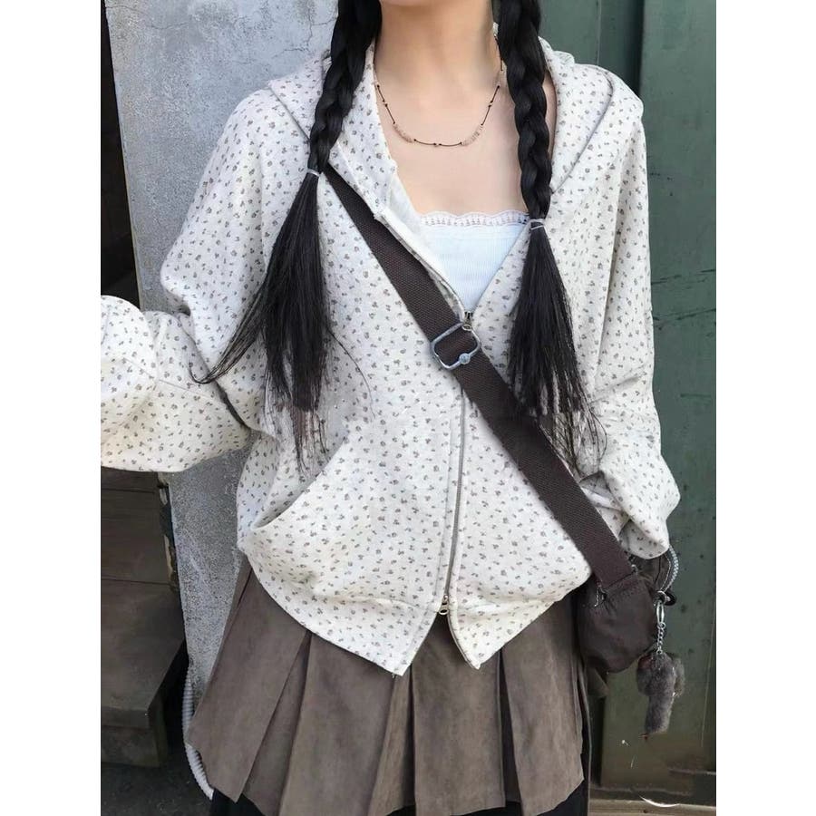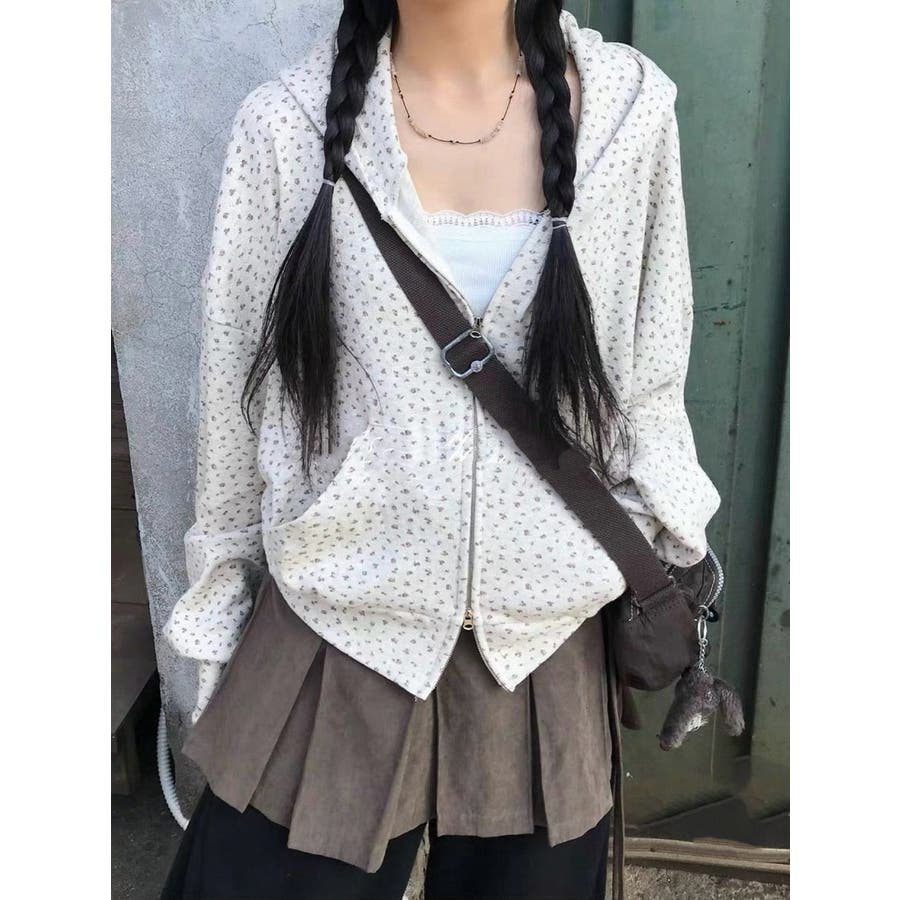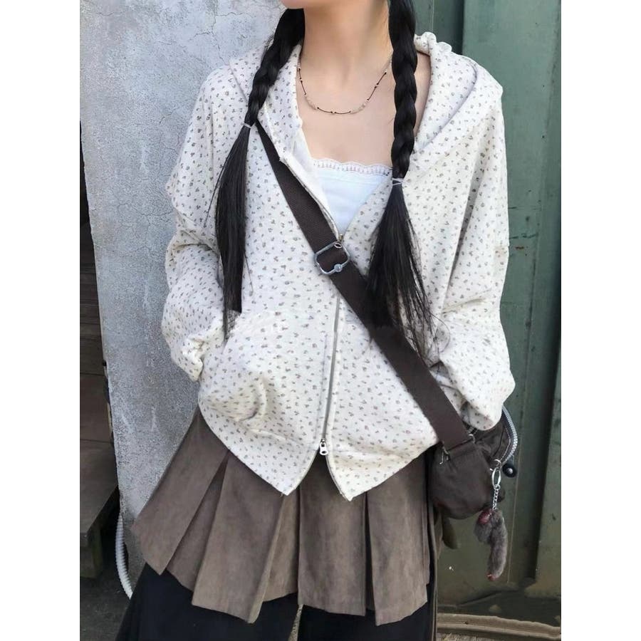 フード付きプリントスウェットダブルジップジャケット