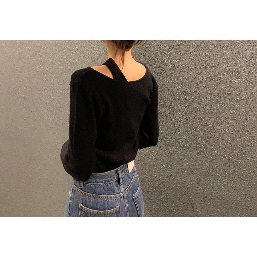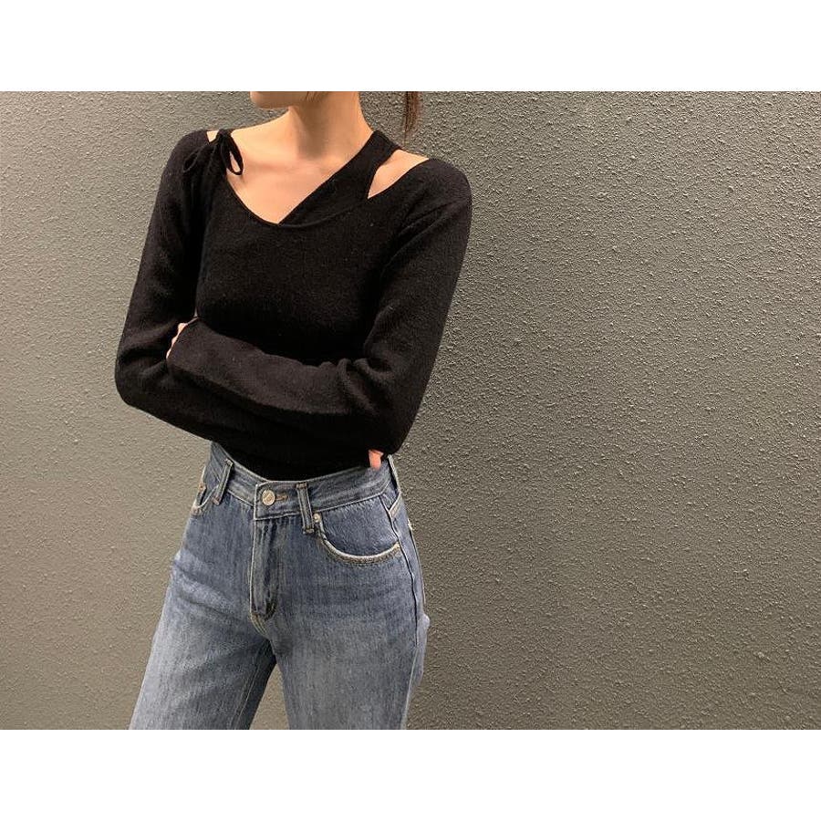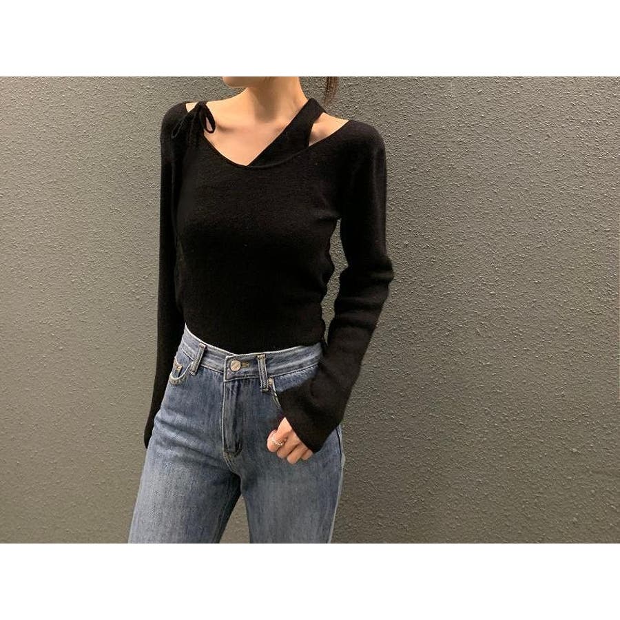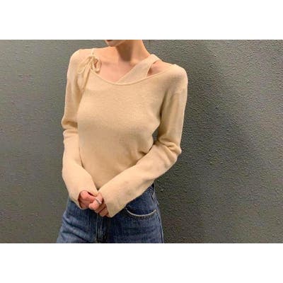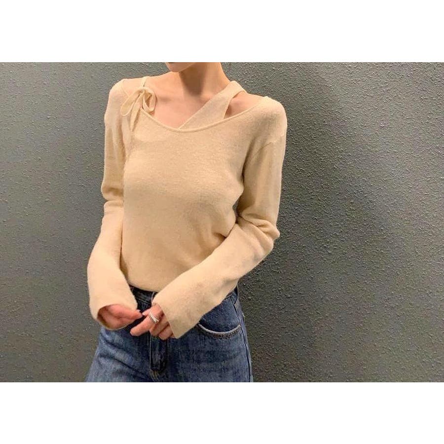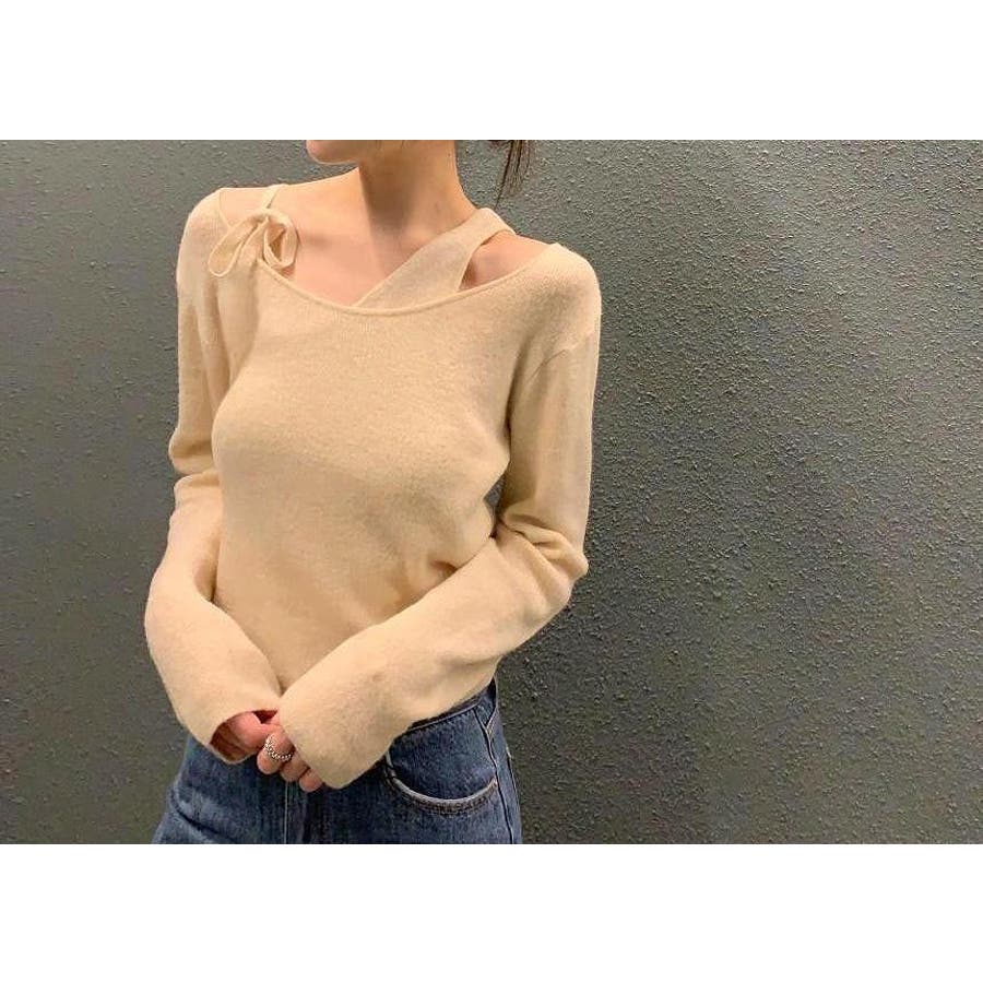 リボンレイヤード風ニットトップス