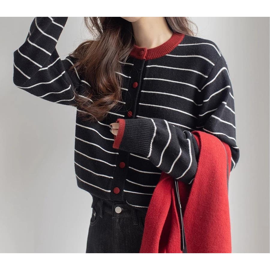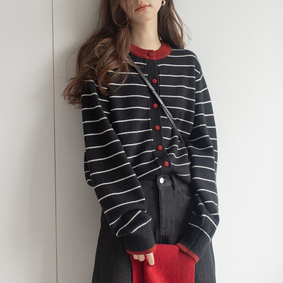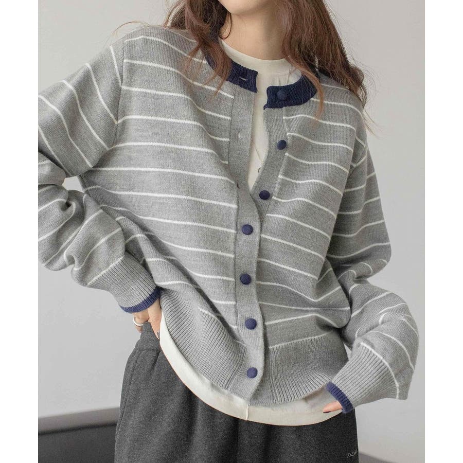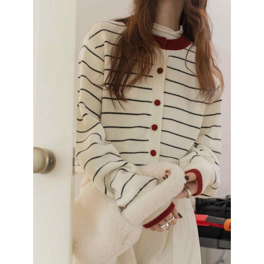 カラーコントラストの襟付きカーディガンジャケット