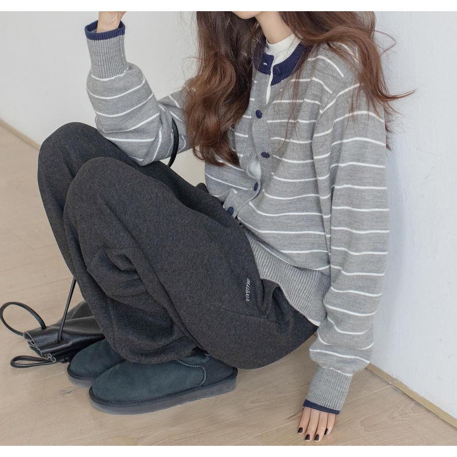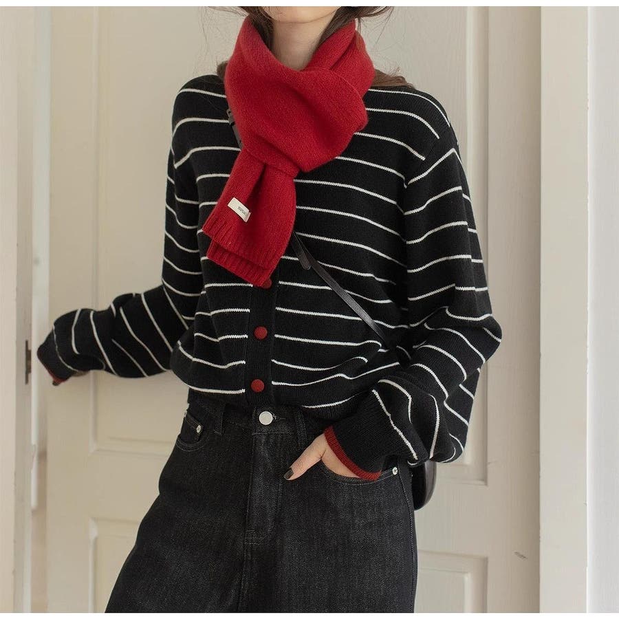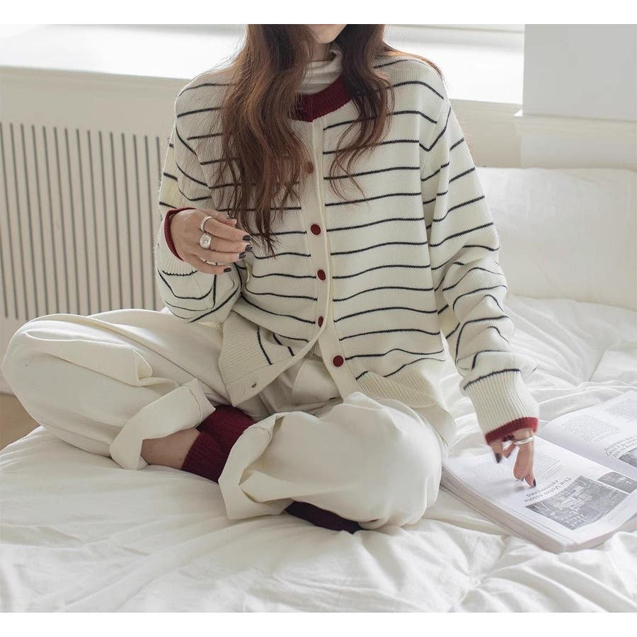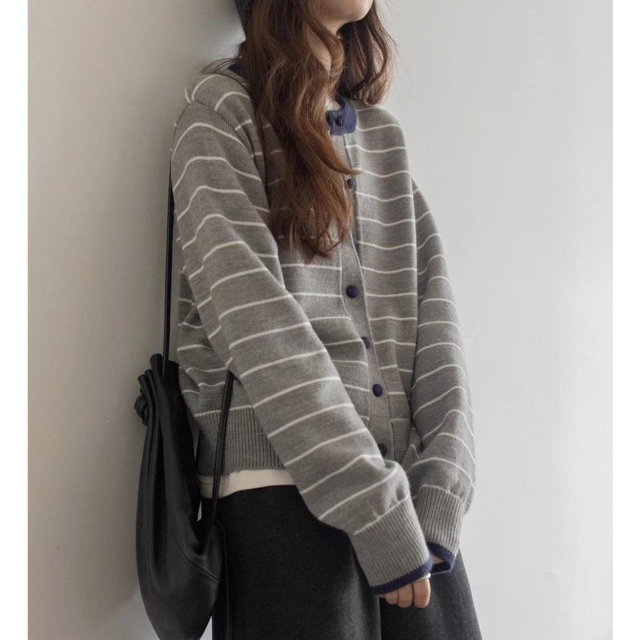カラーコントラストの襟付きカーディガンジャケット
