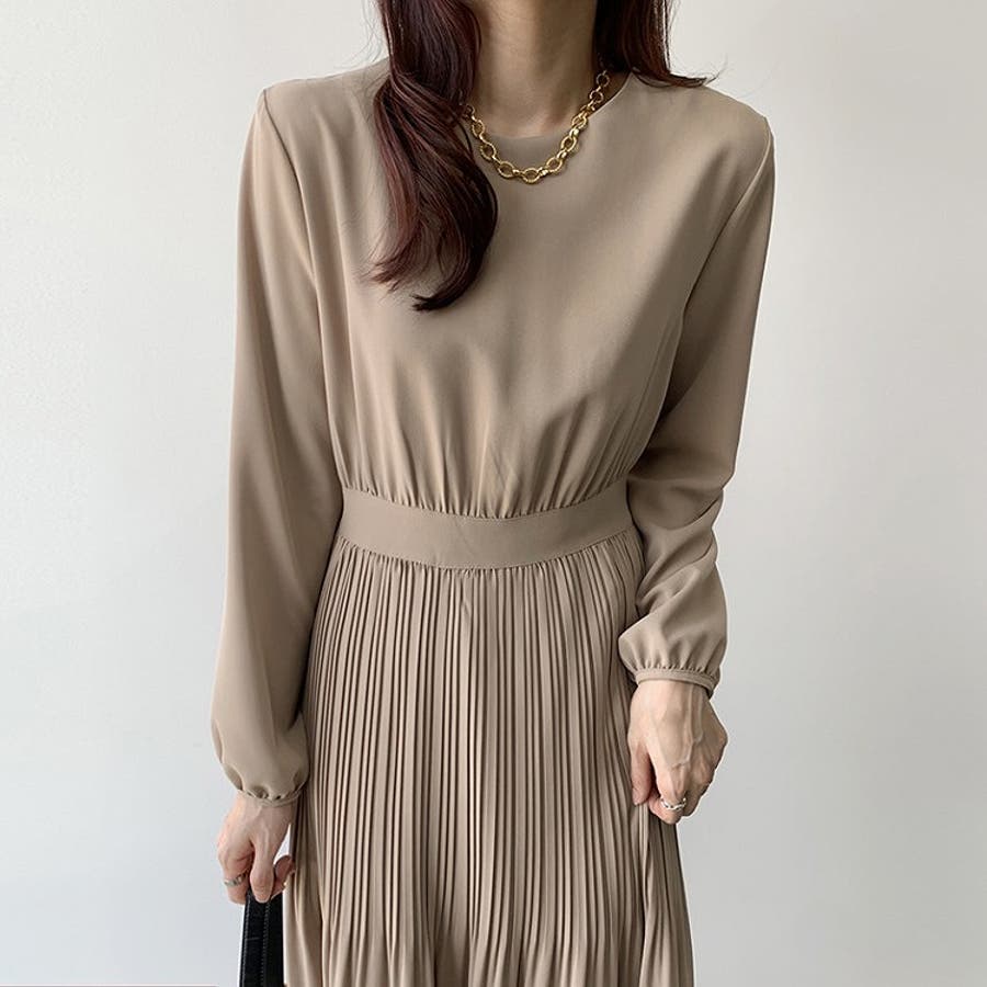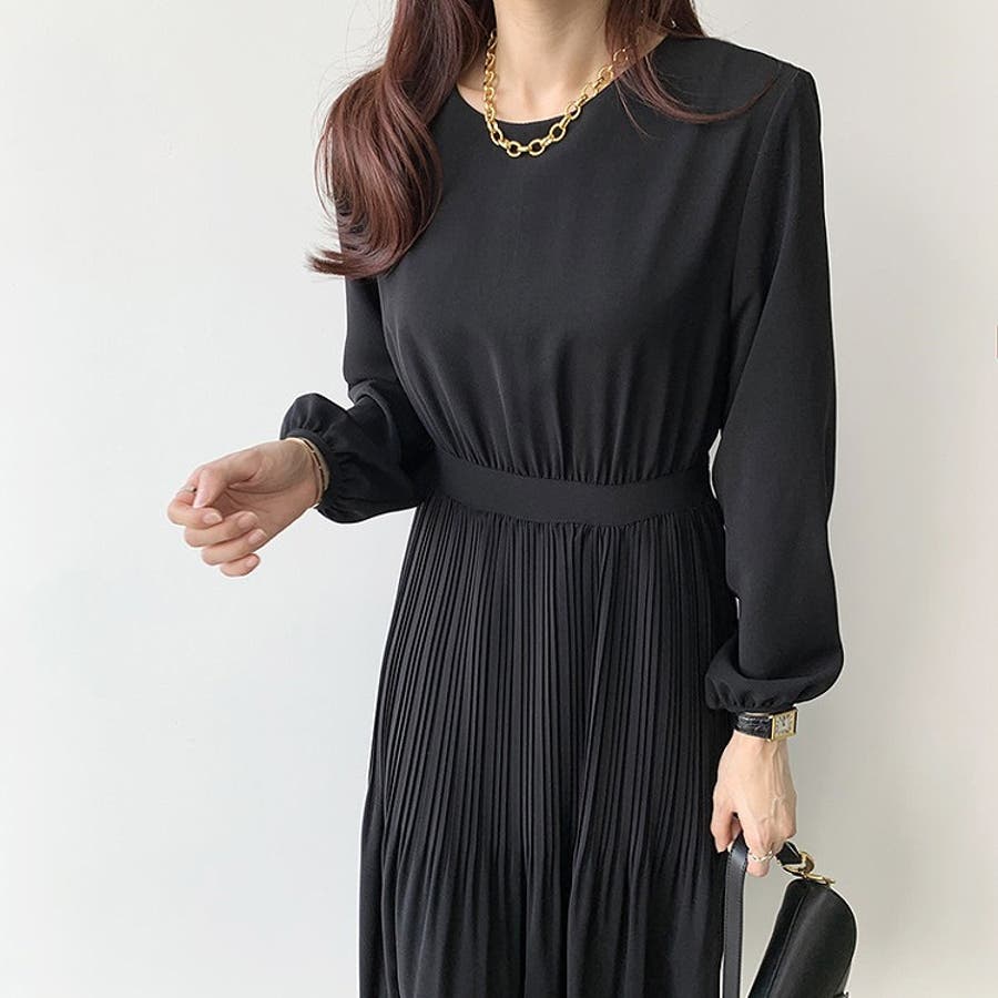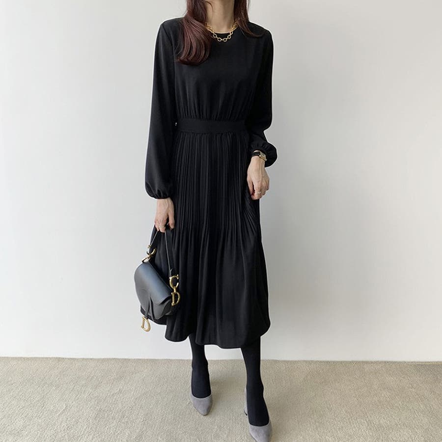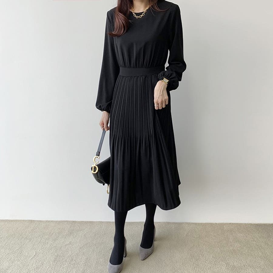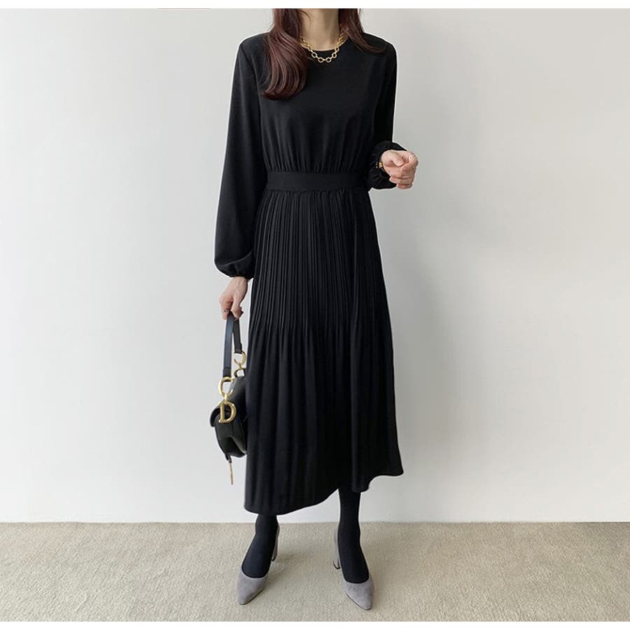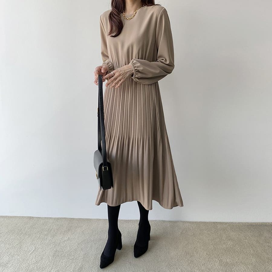 プリーツ長袖ワンピース