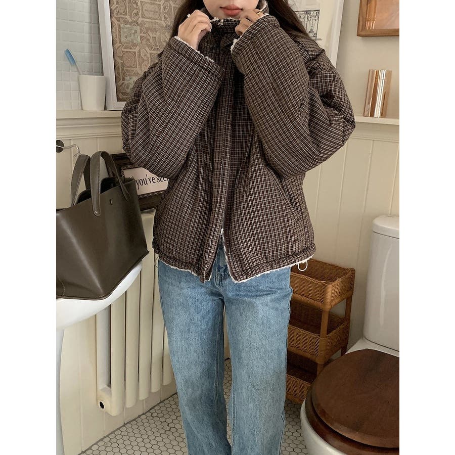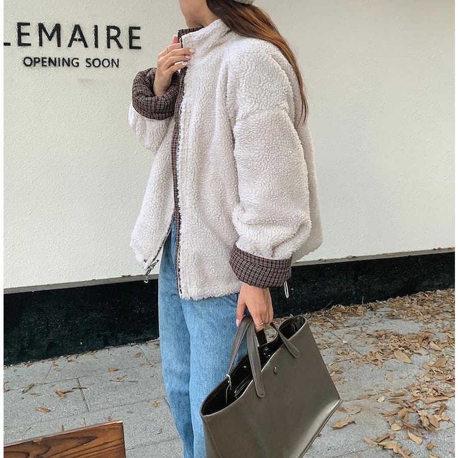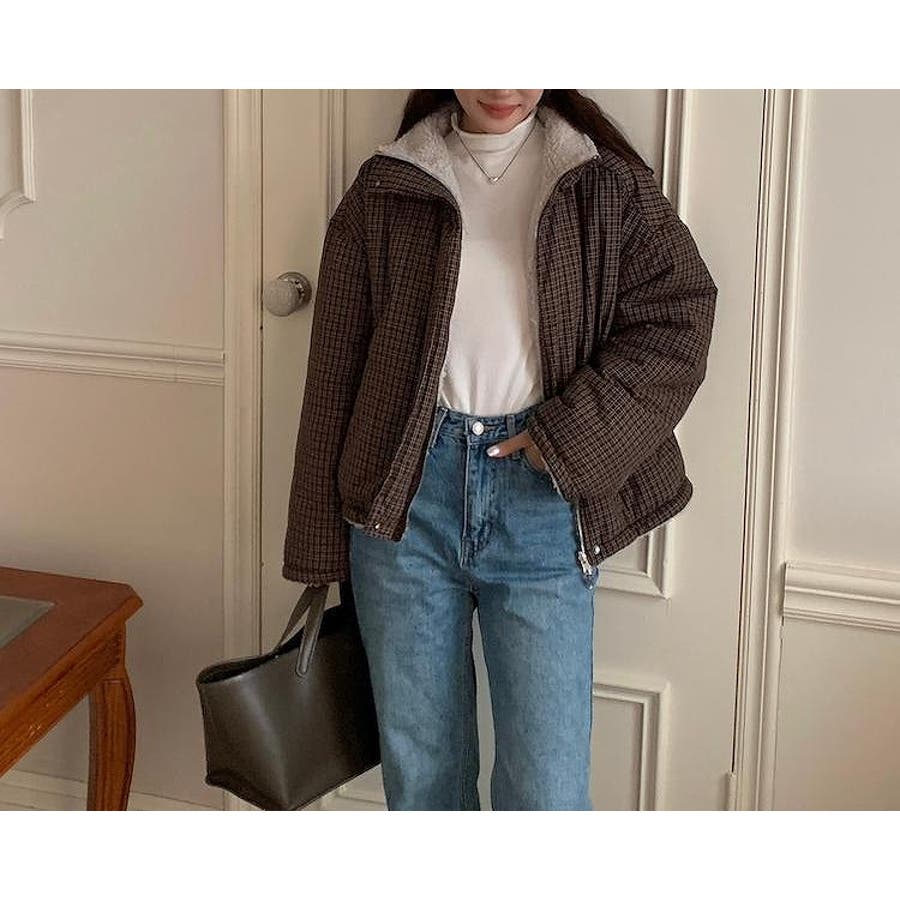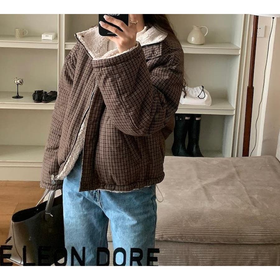 リバーシブルチェック柄羊羔毛ジャケット