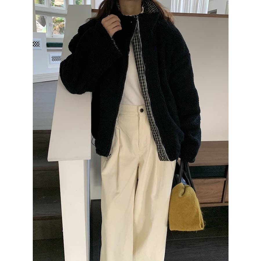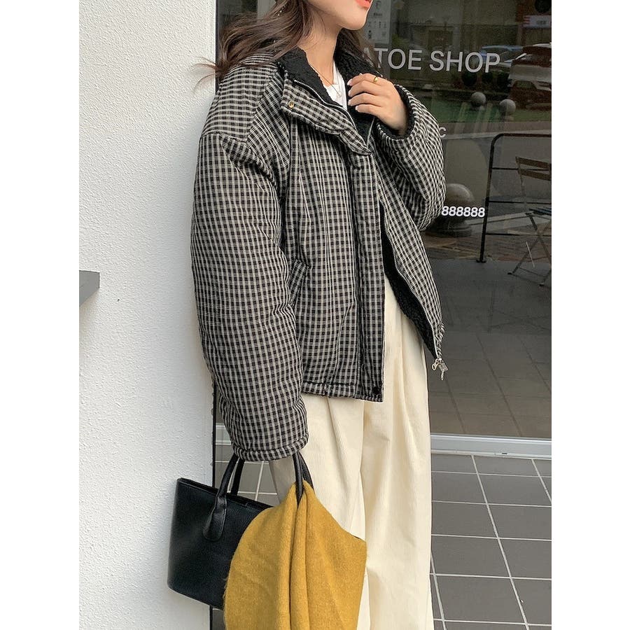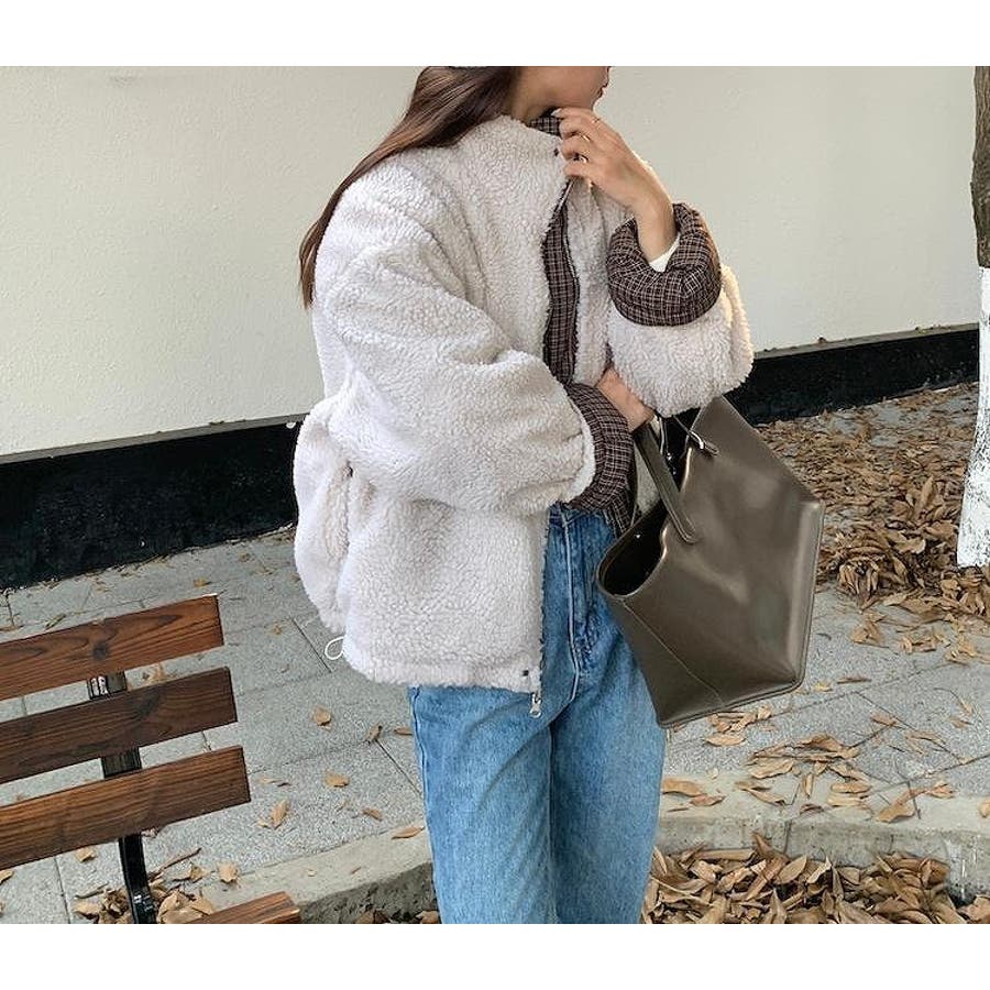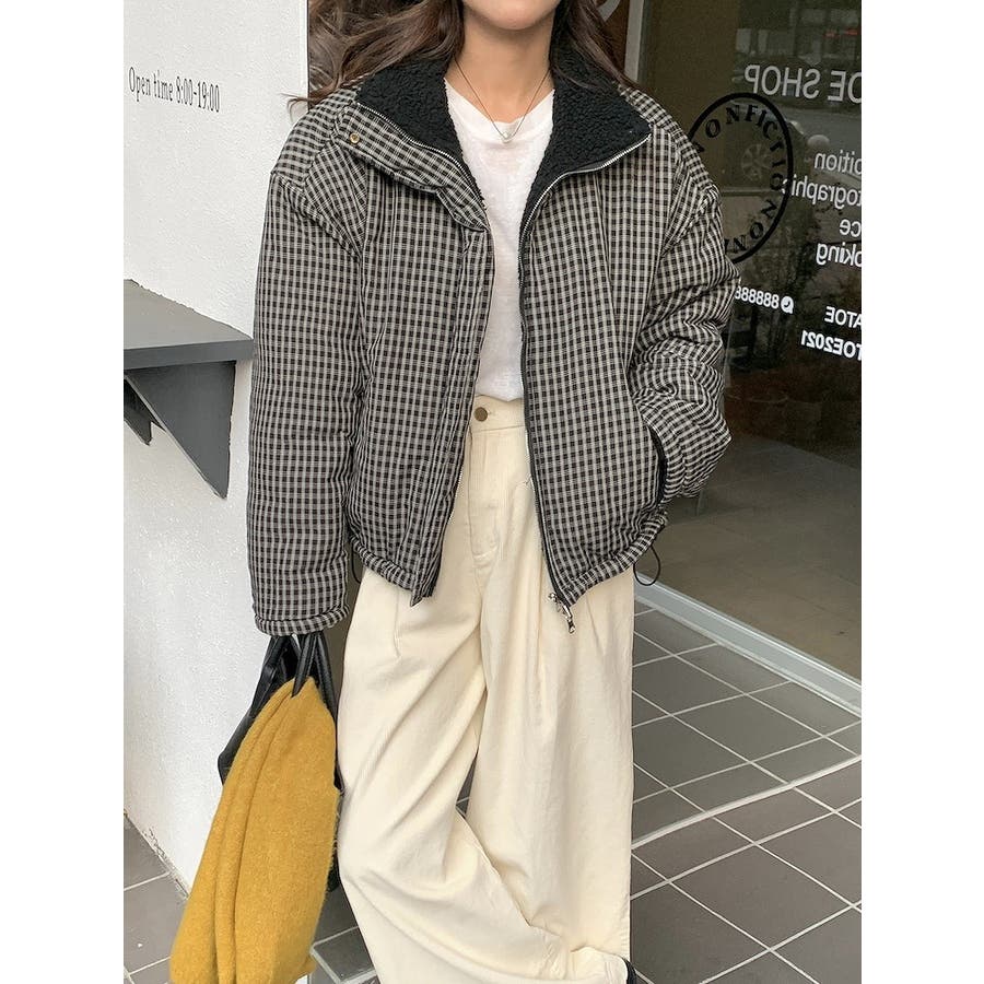 リバーシブルチェック柄羊羔毛ジャケット