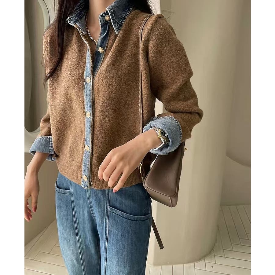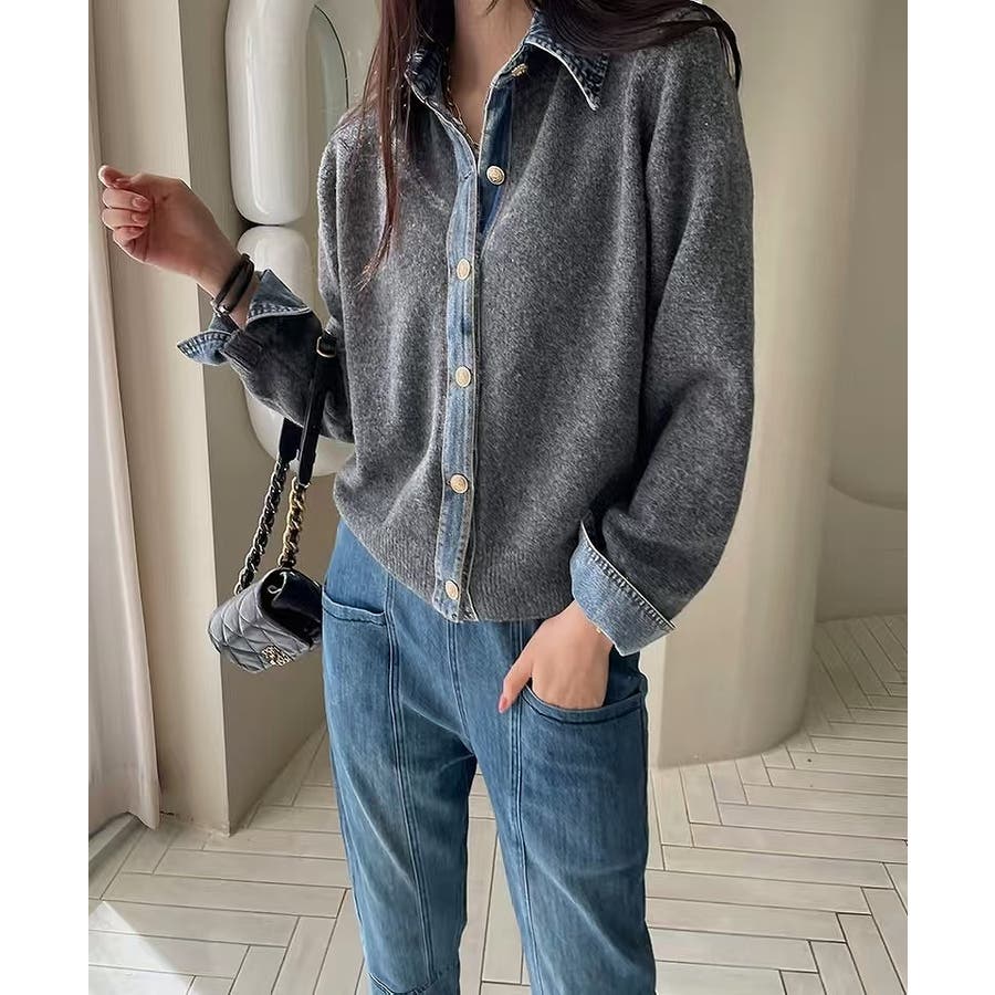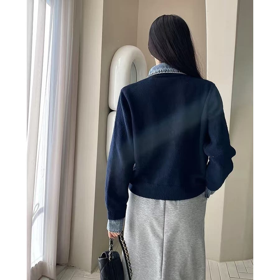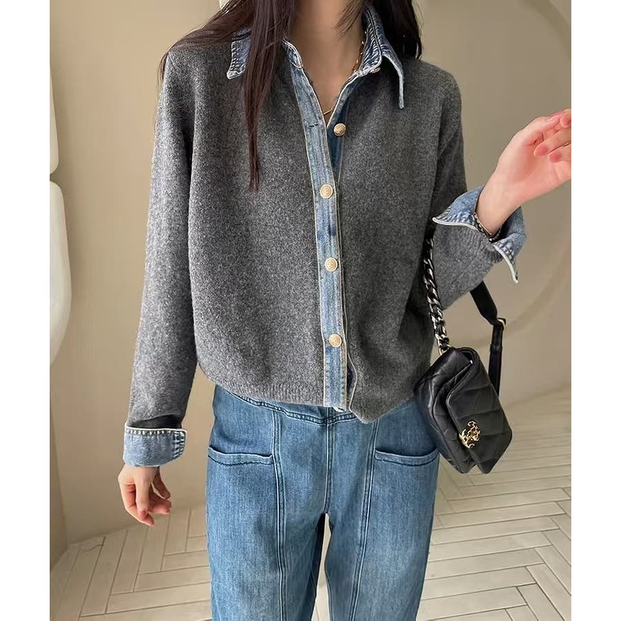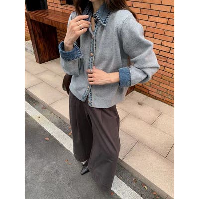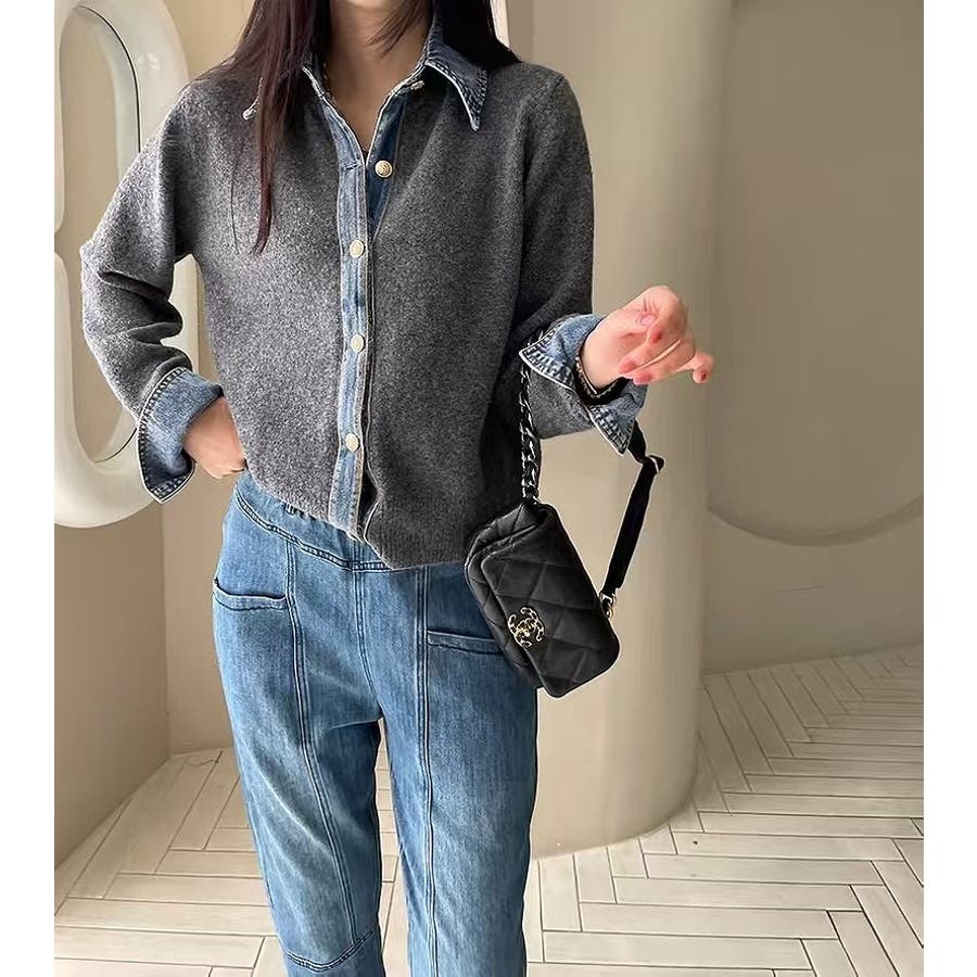 ニット切り替えデニムシングルブレストジャケット