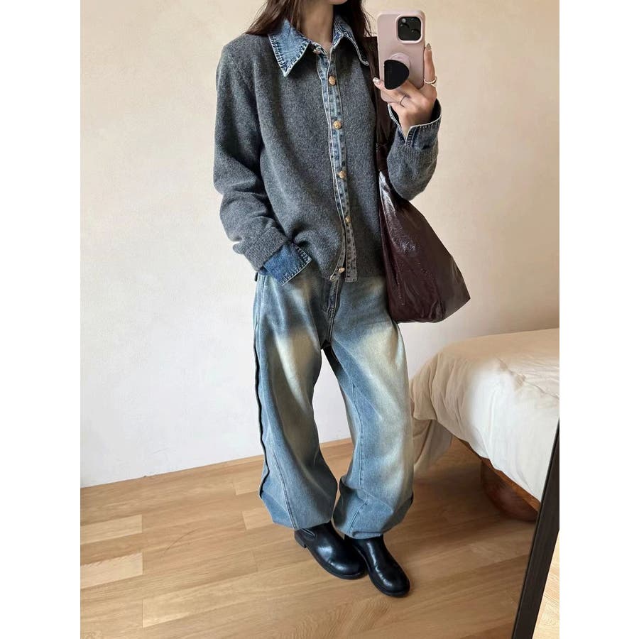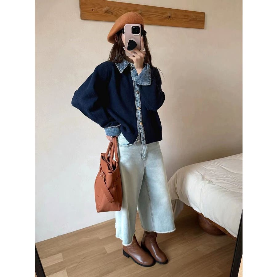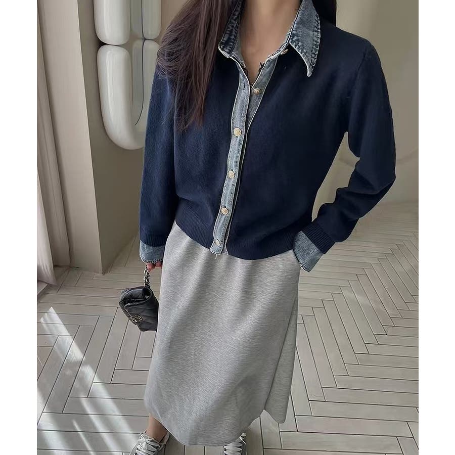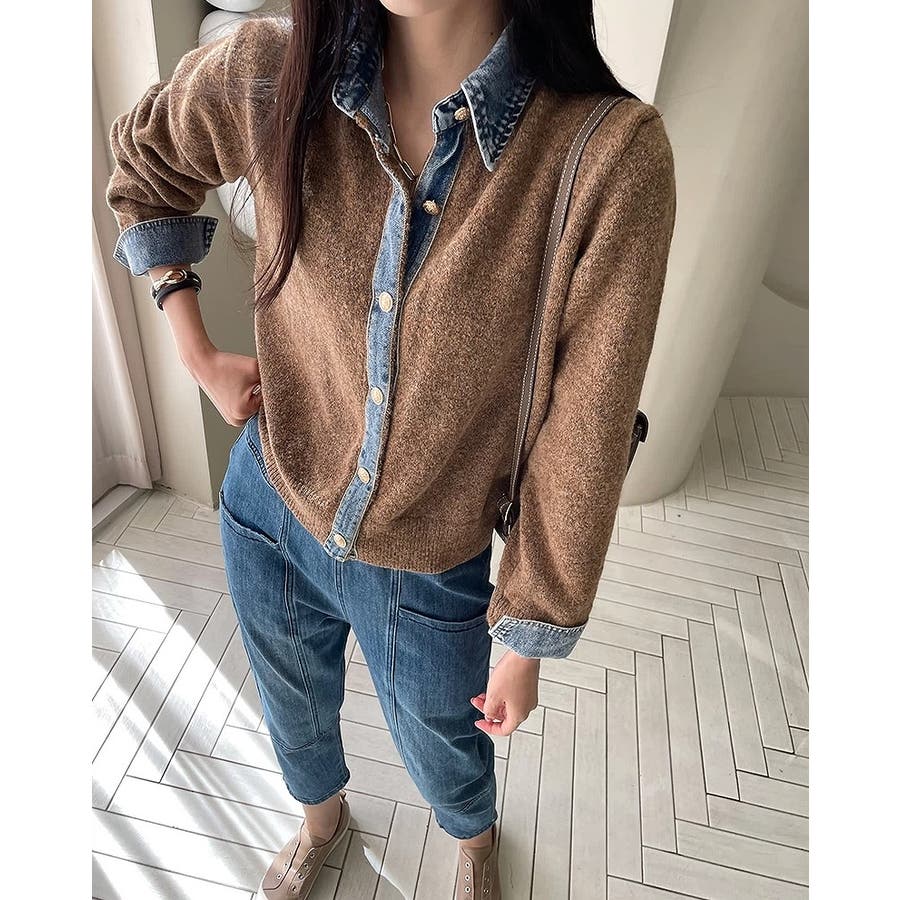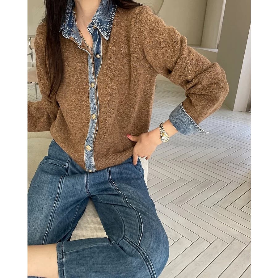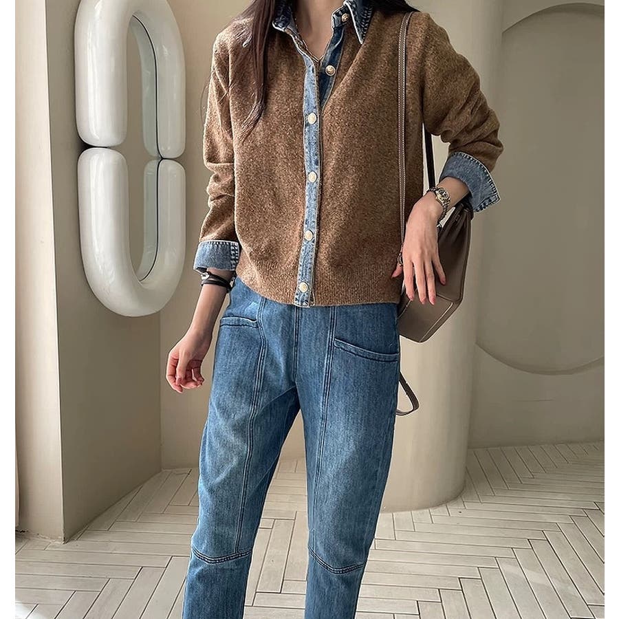 ニット切り替えデニムシングルブレストジャケット