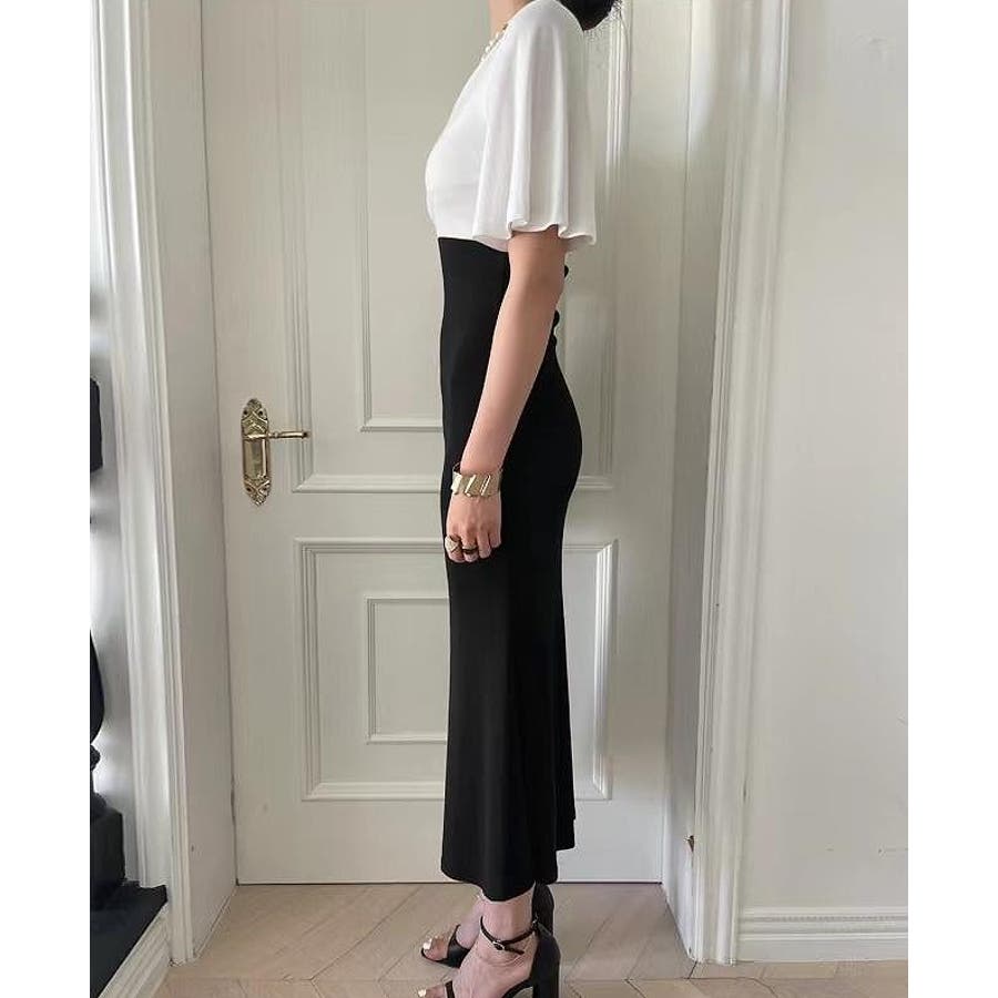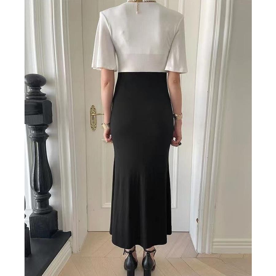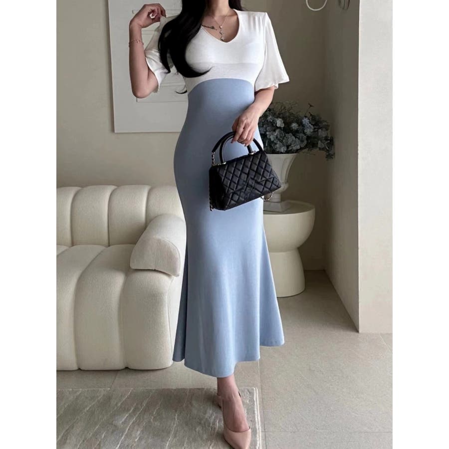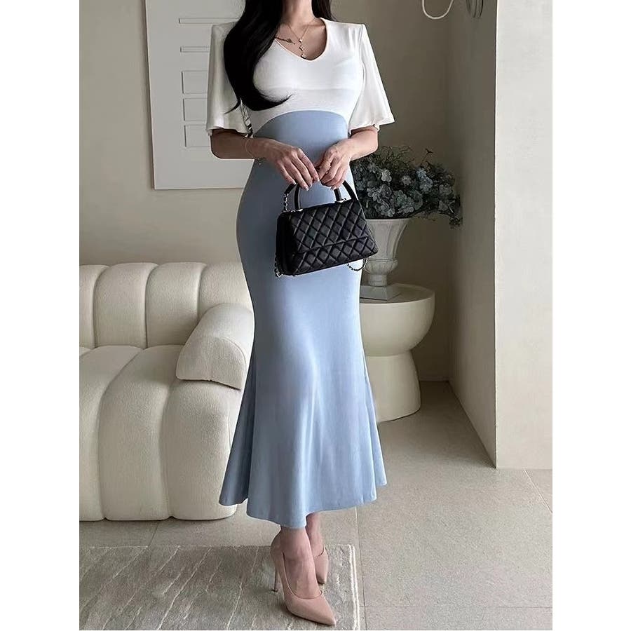切り替え半袖マーメイド フィッシュテールスワンピース