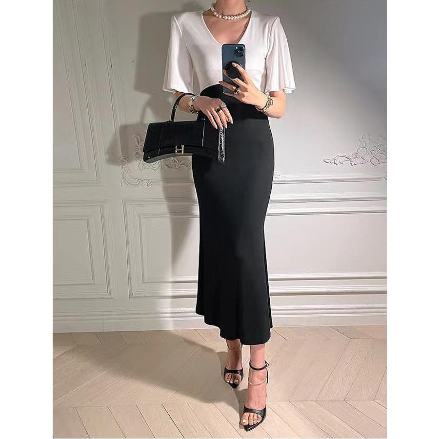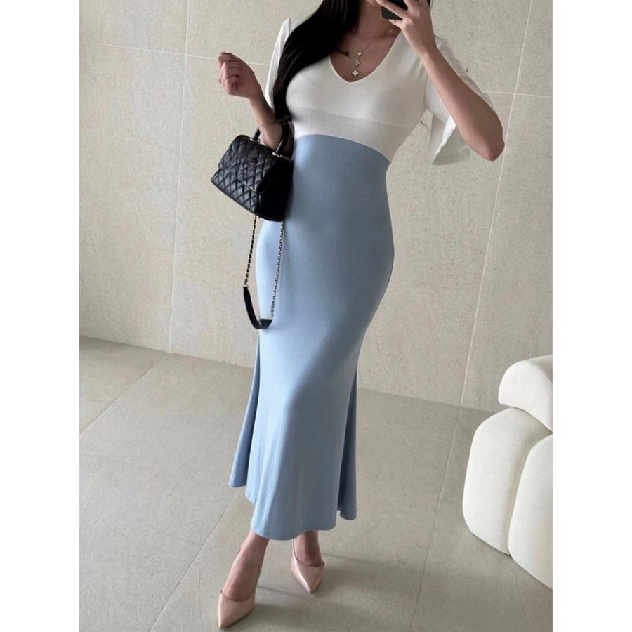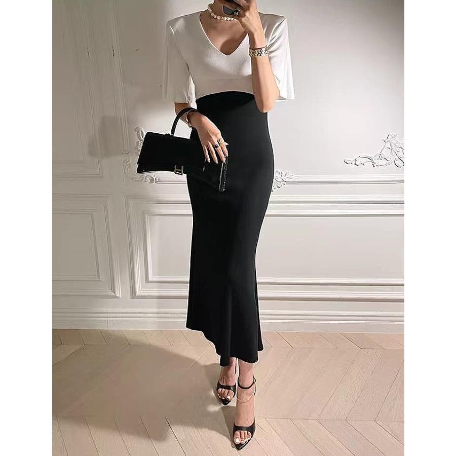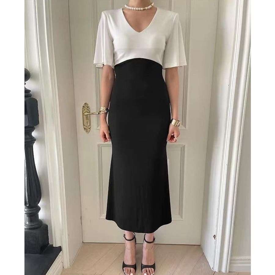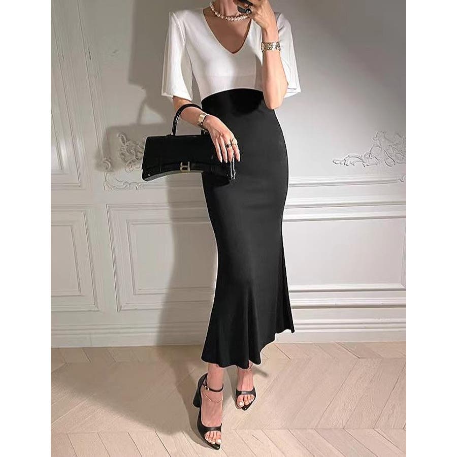 切り替え半袖マーメイド フィッシュテールスワンピース
