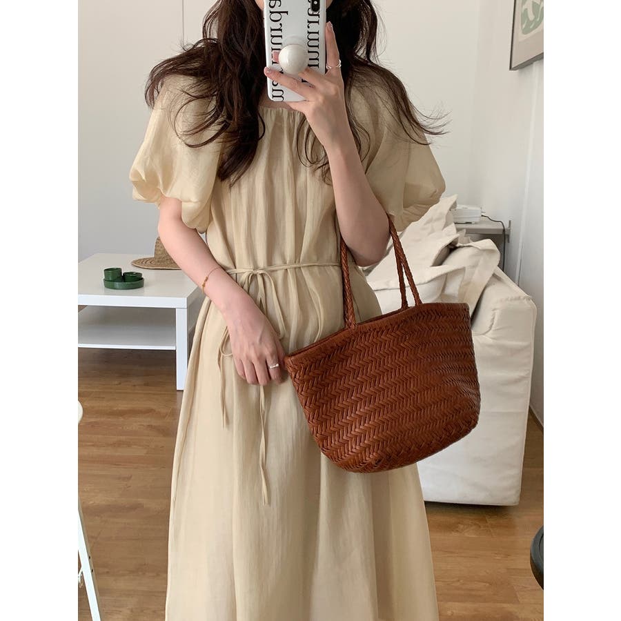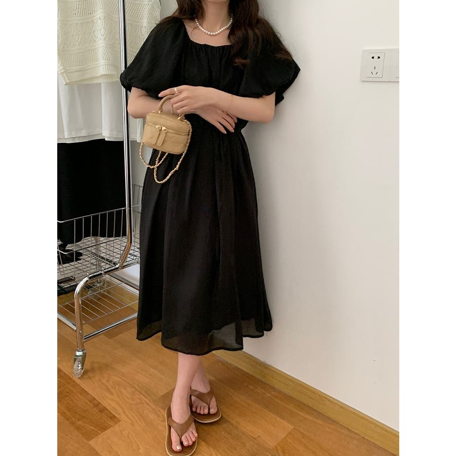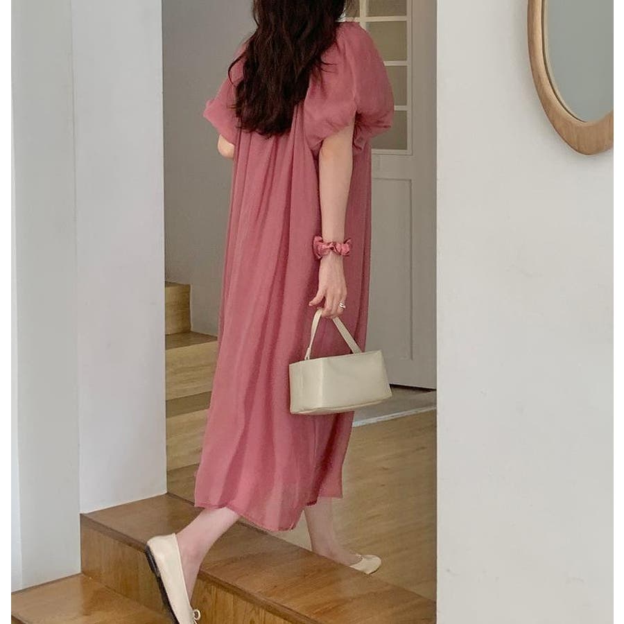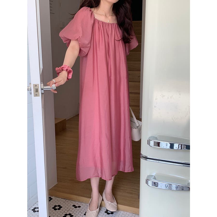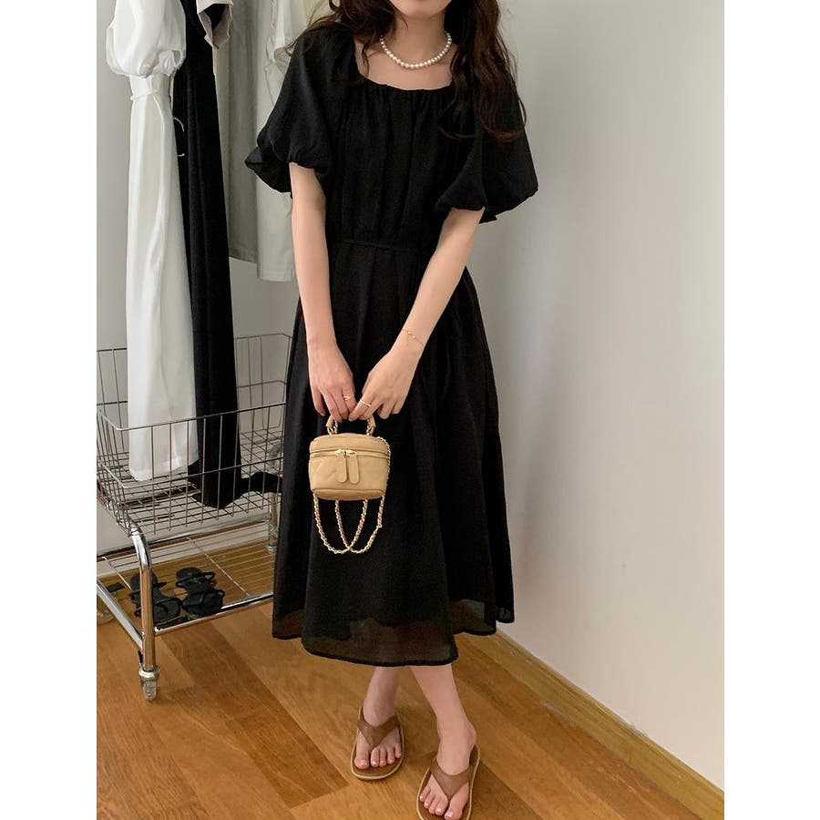 リボンパフスリーブボートネックワンピース