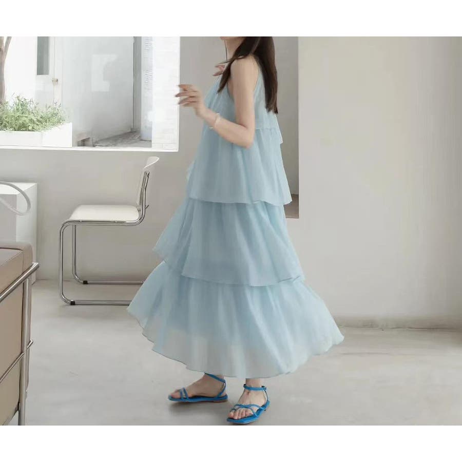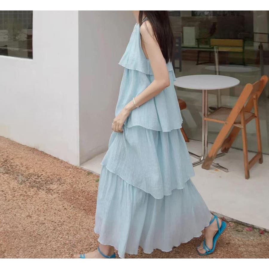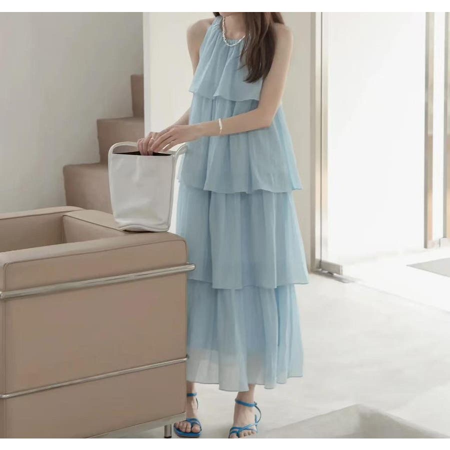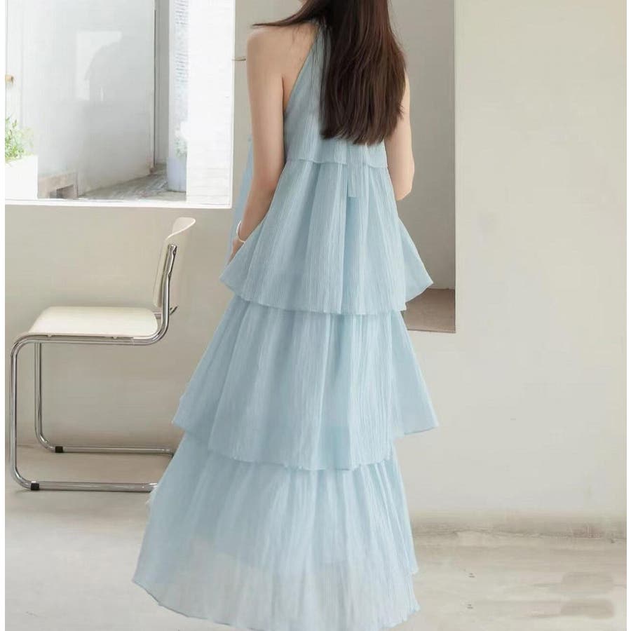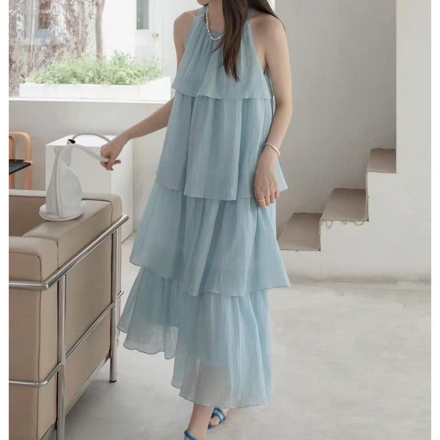 ティアード首をかけるワンピース