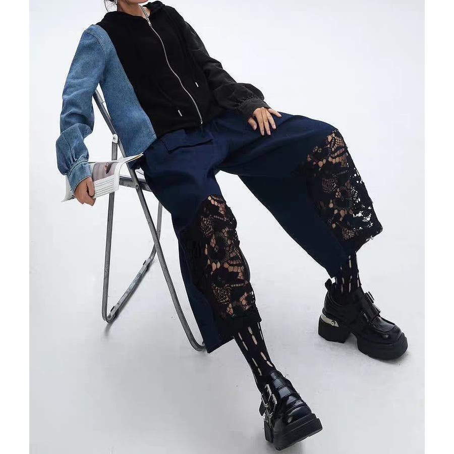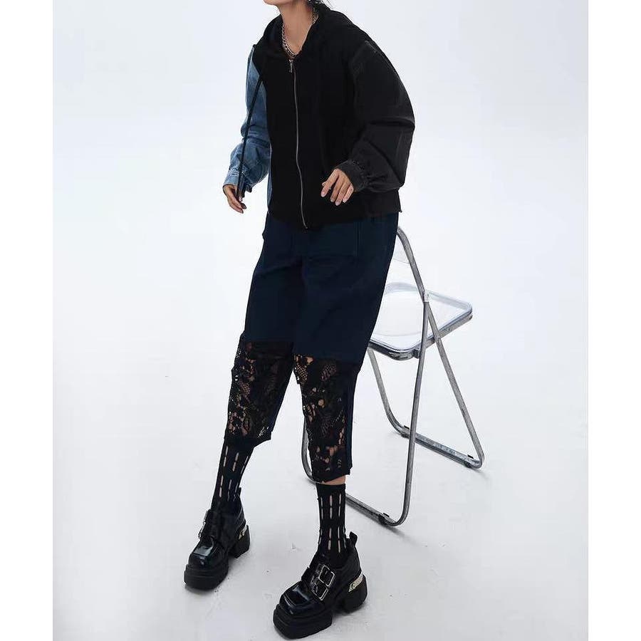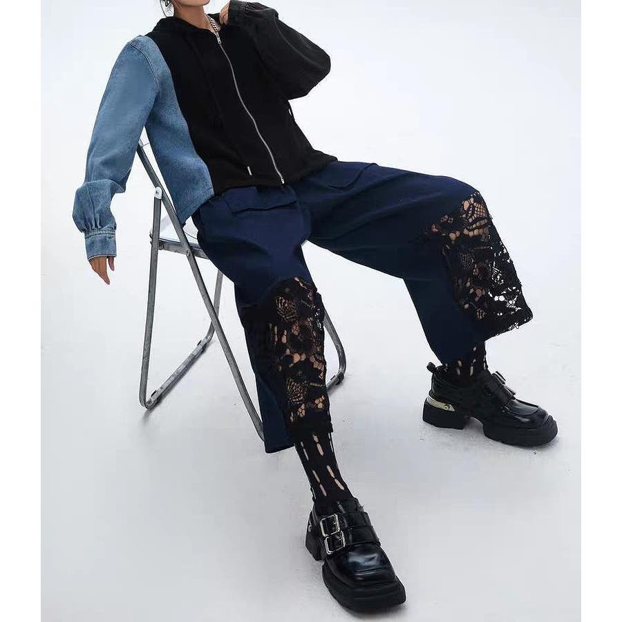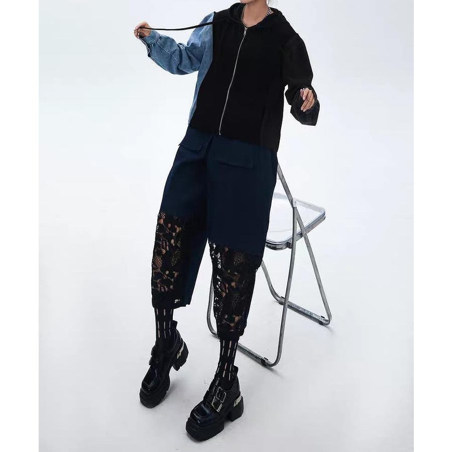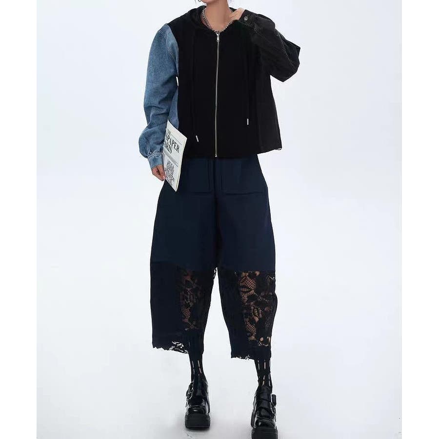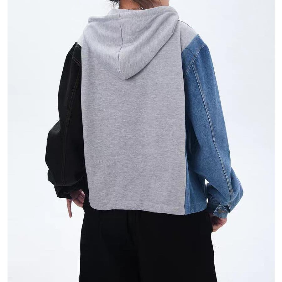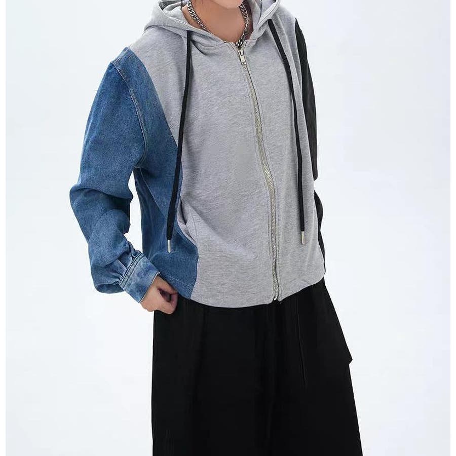 デニム切り替えスウェットフード付きジャケット