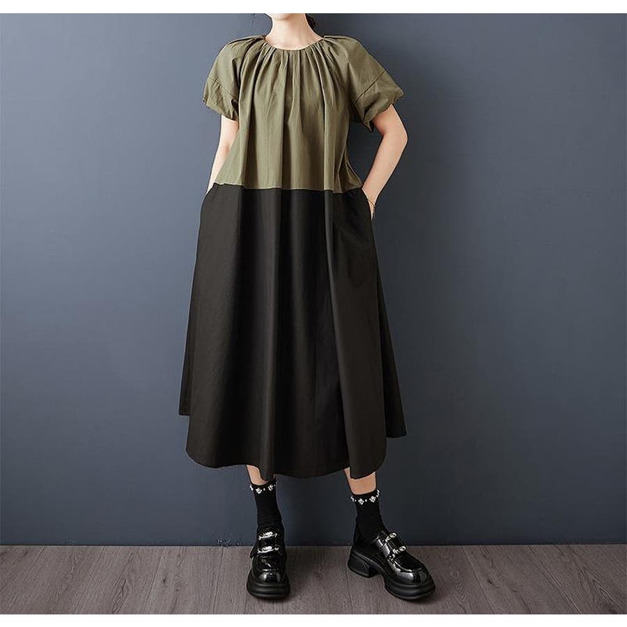 ランタンスリーブ切り替えワンピース