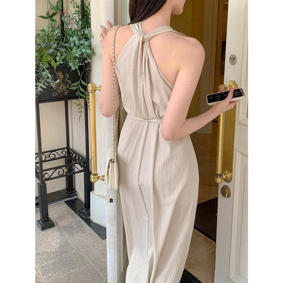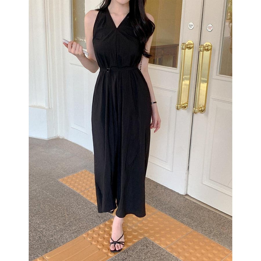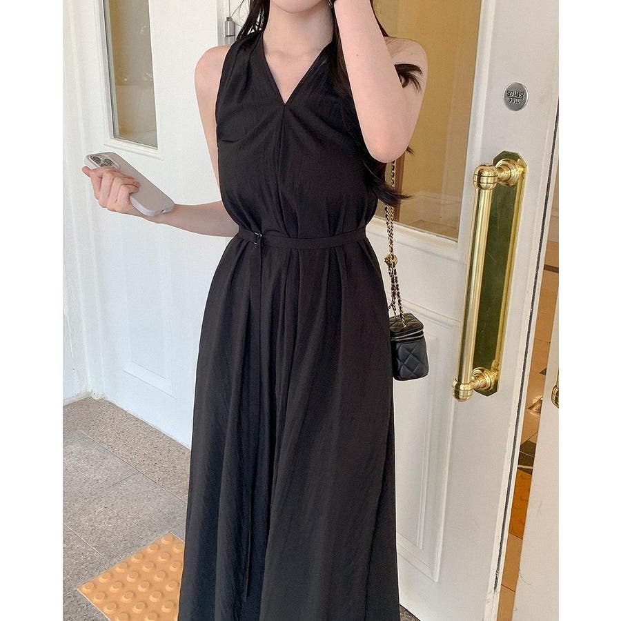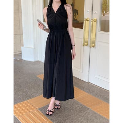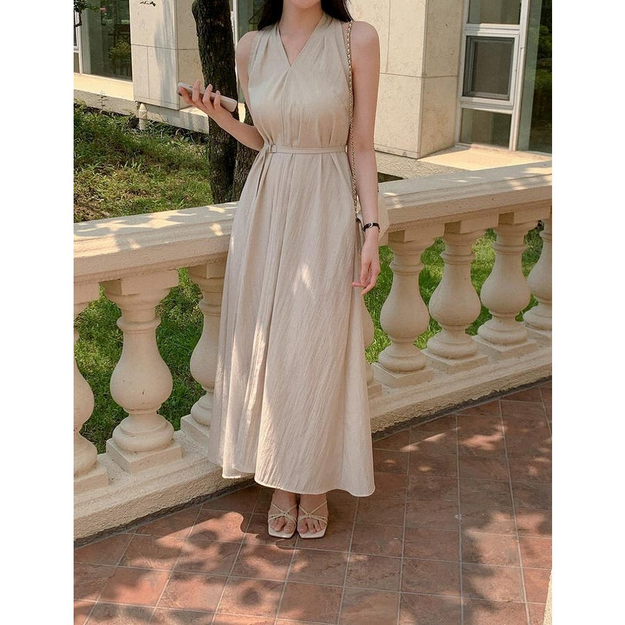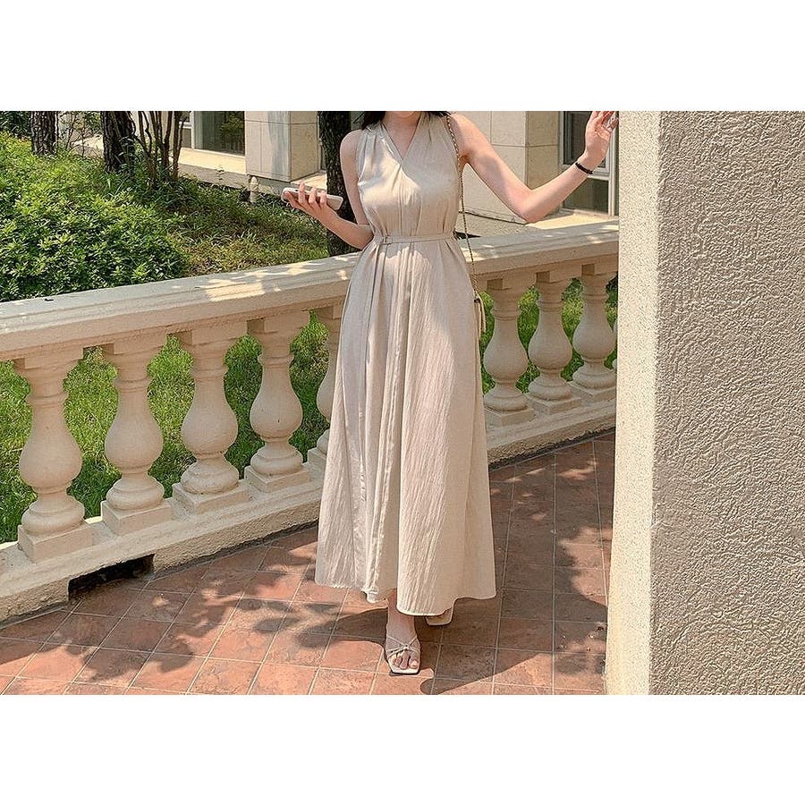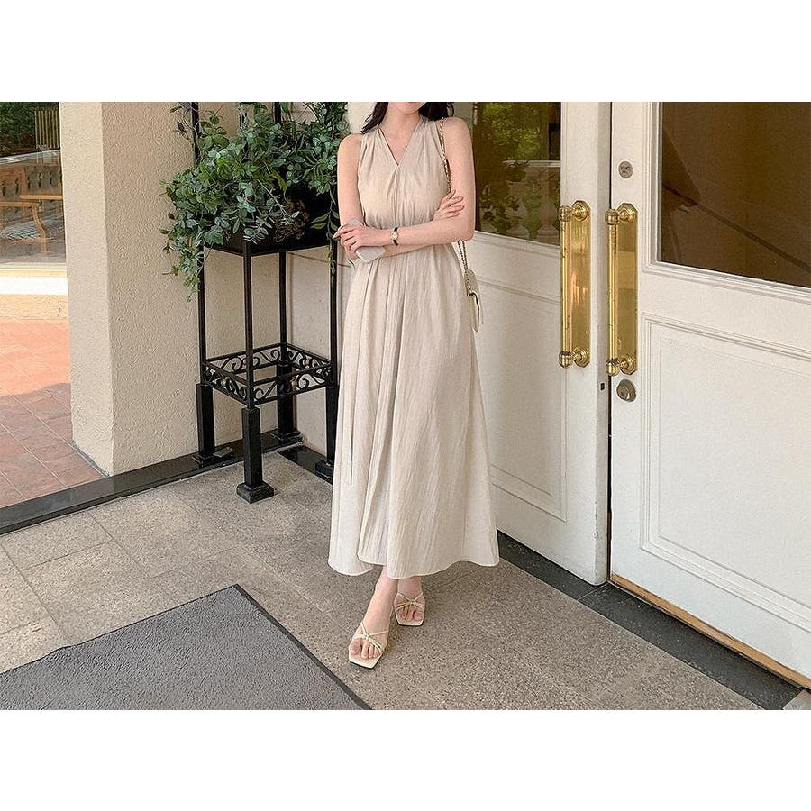 袖なしバッククロスVネックワンピース