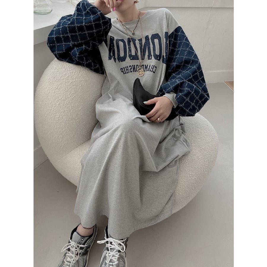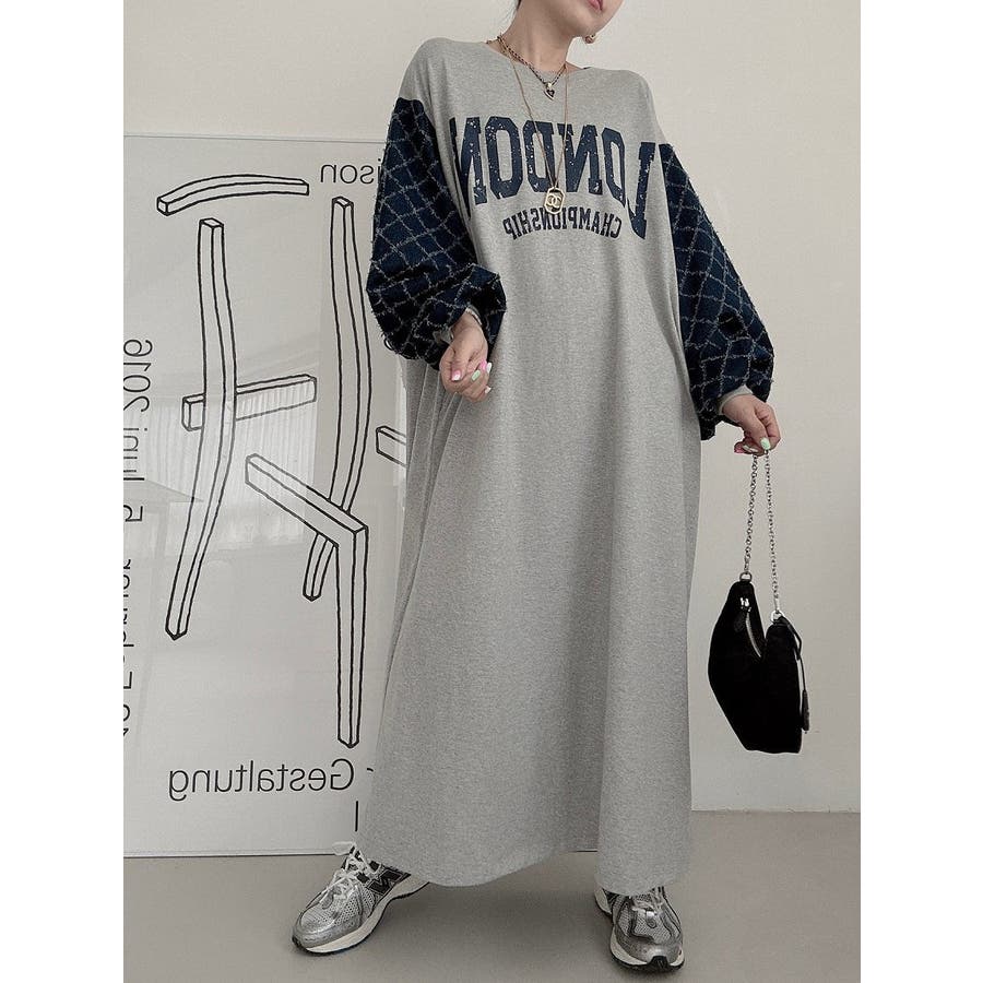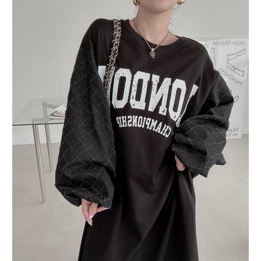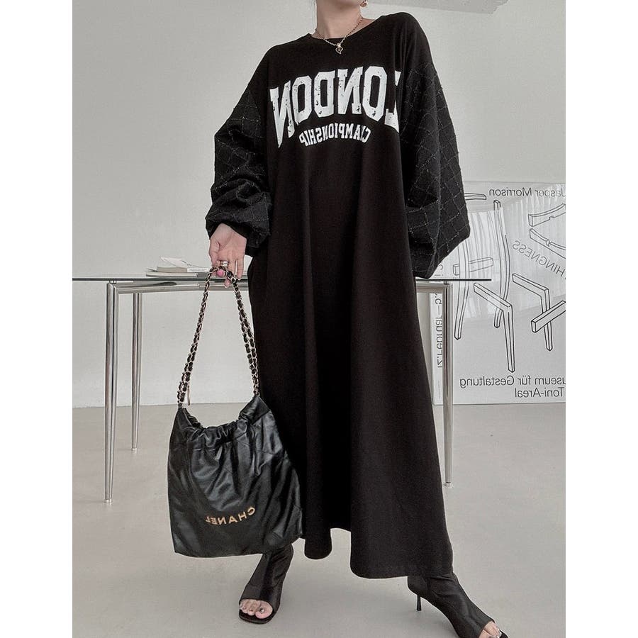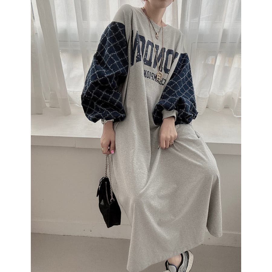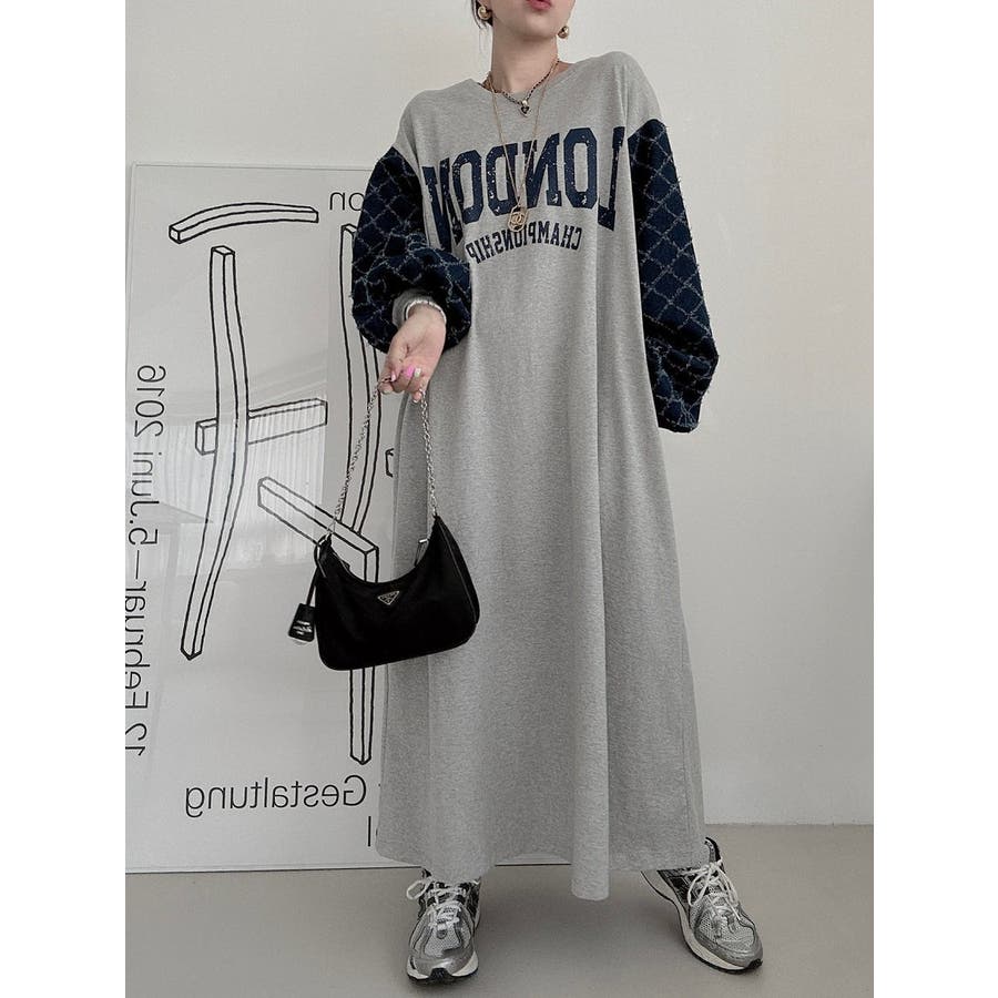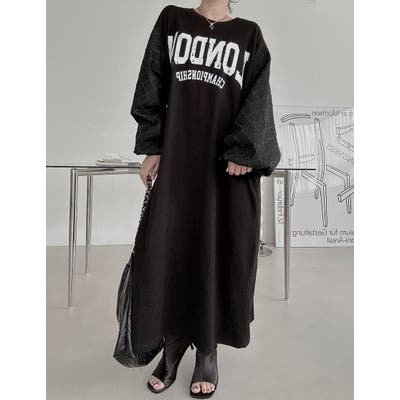 ランタンスリーブオーバーサイズロゴスウェットワンピース
