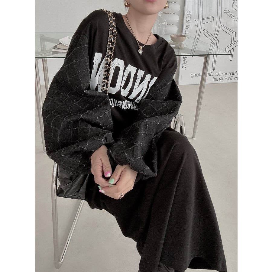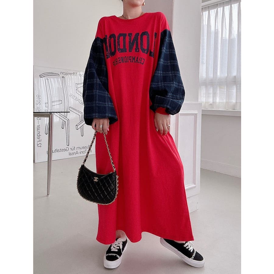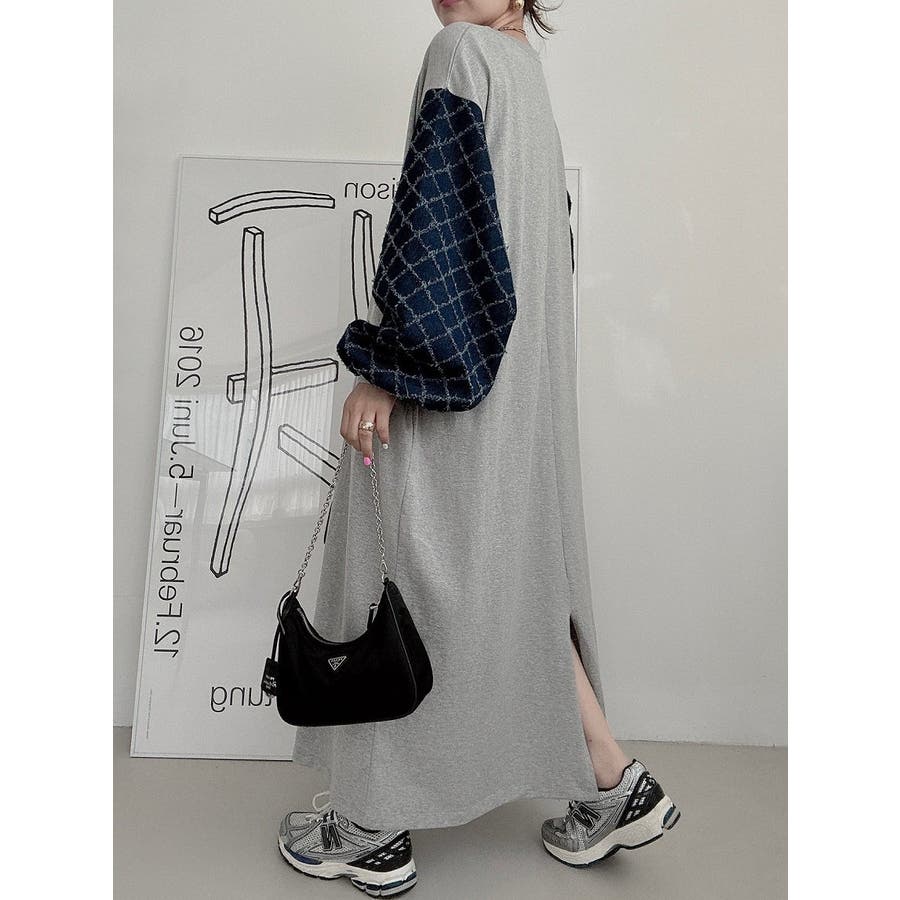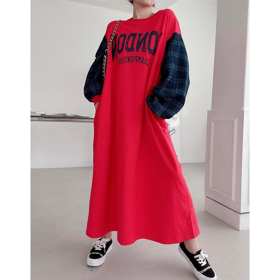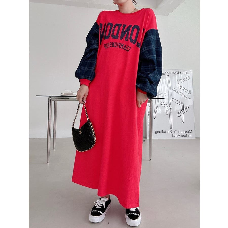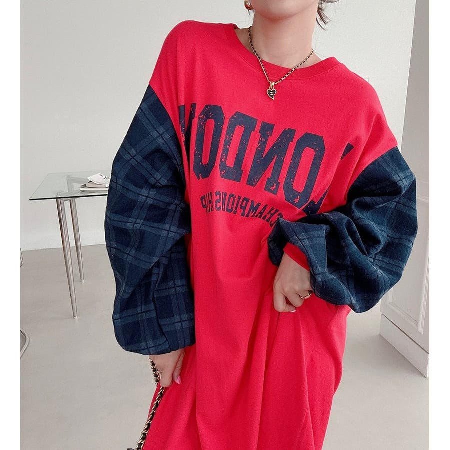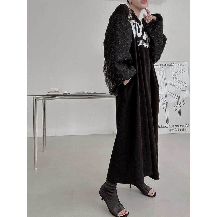 ランタンスリーブオーバーサイズロゴスウェットワンピース