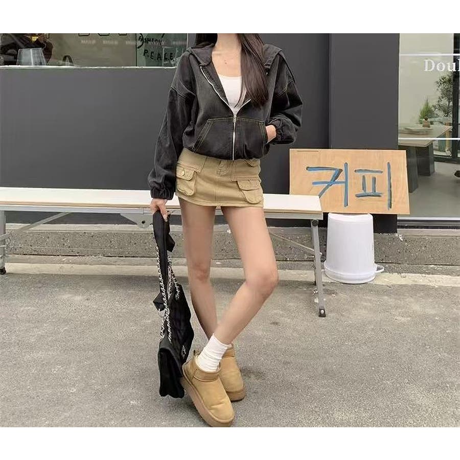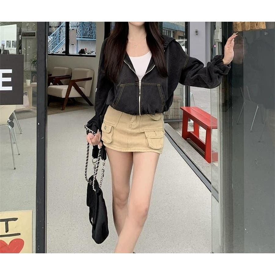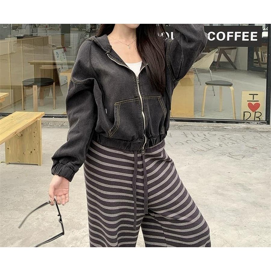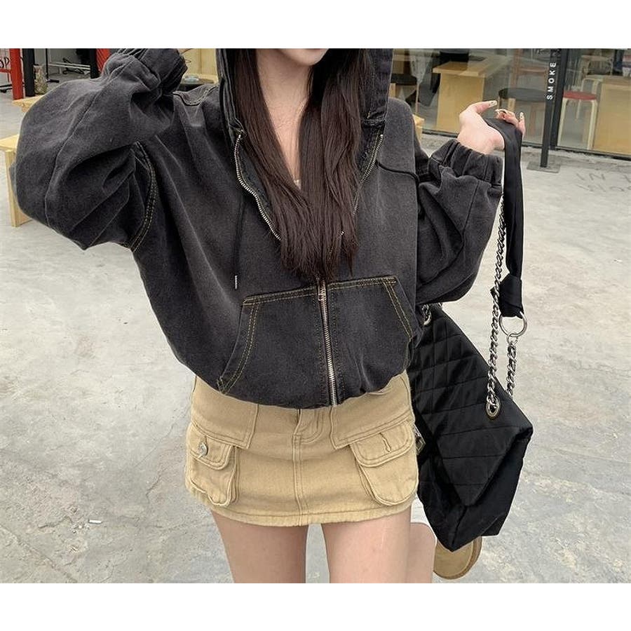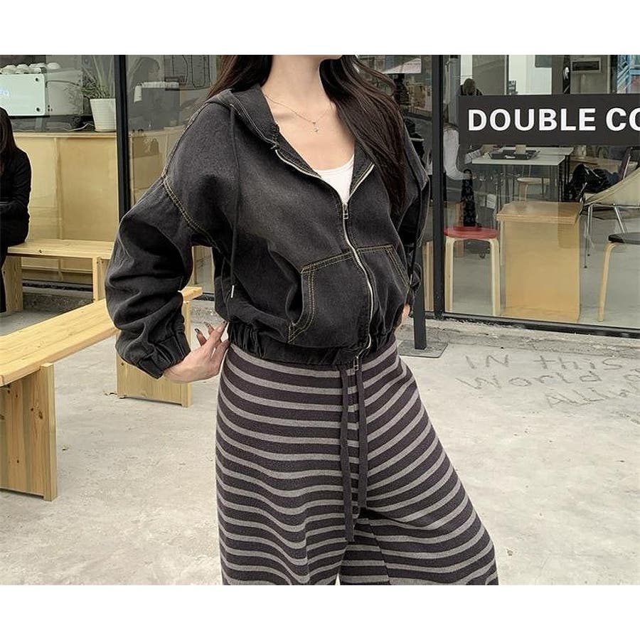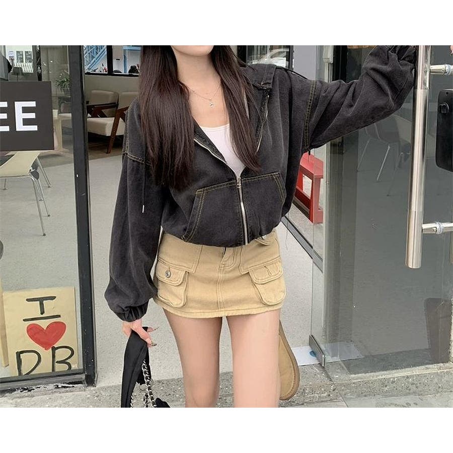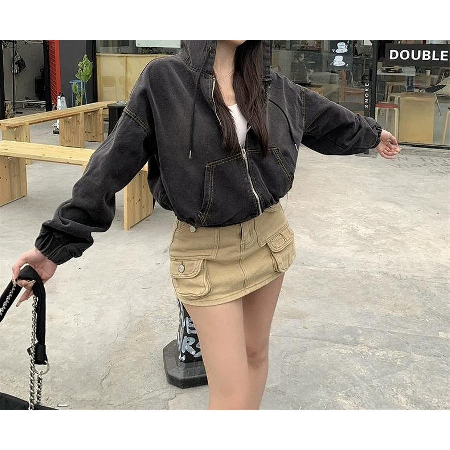 フード付きジップ付きショートデニムジャケット