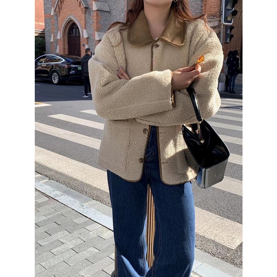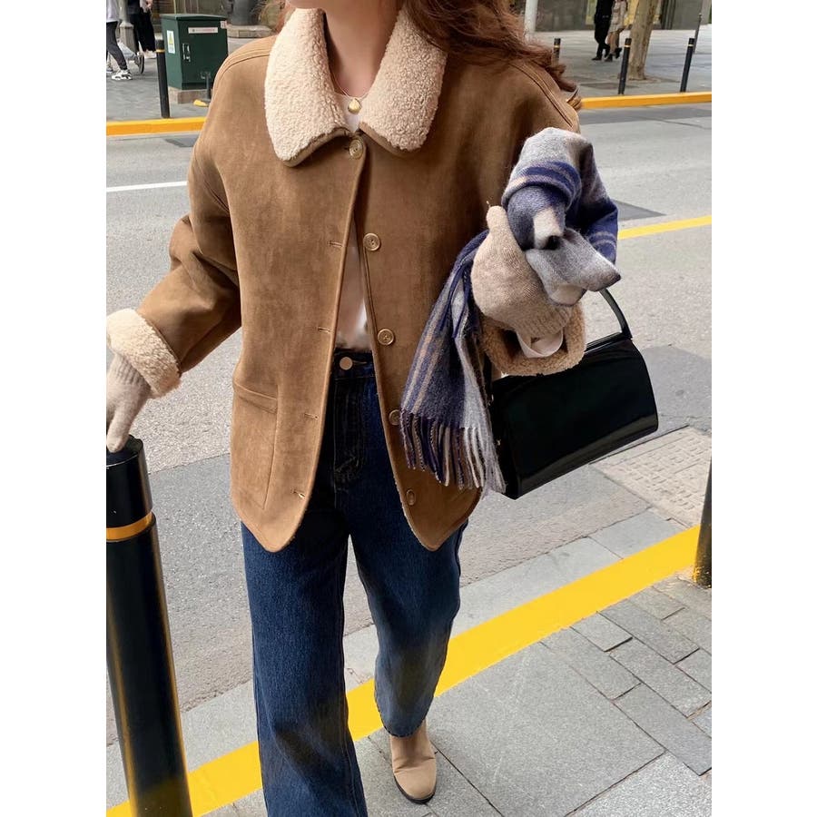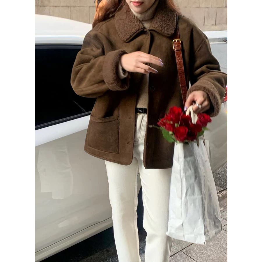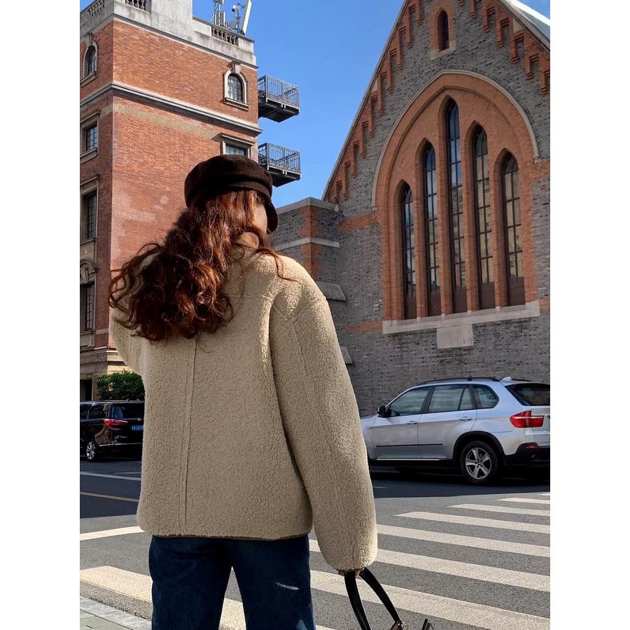 リバーシブル羊羔毛鹿の毛皮の綿毛ジャケット