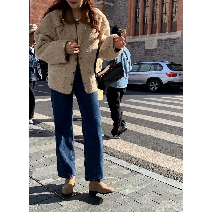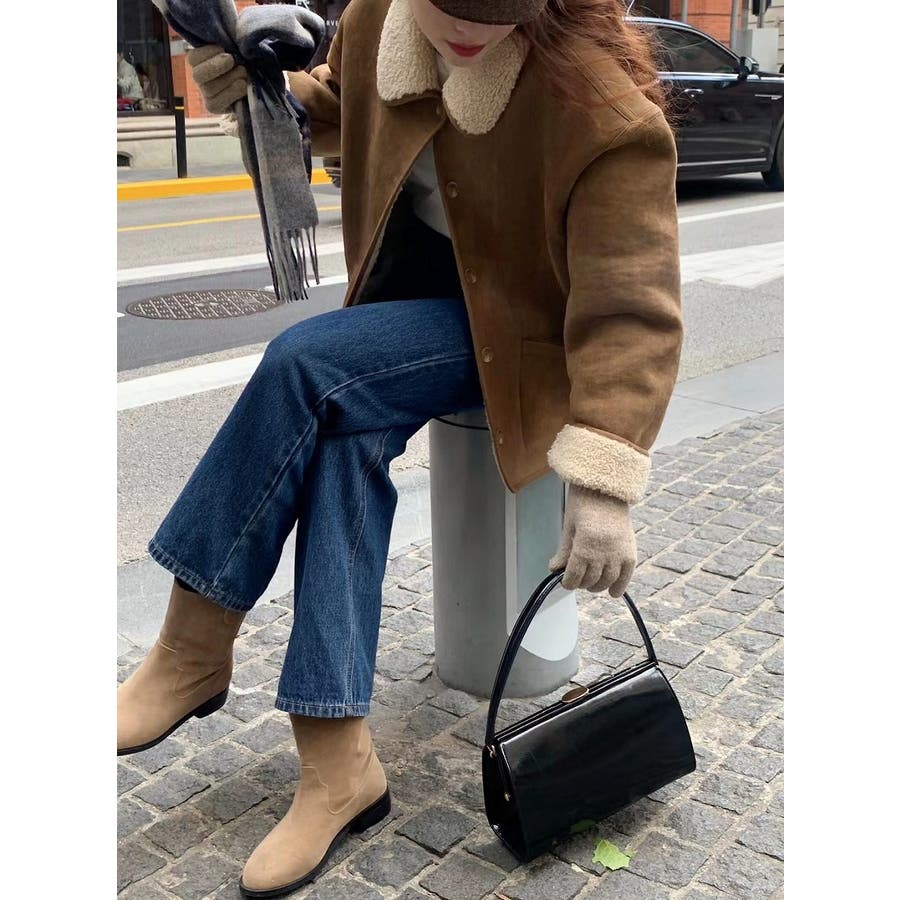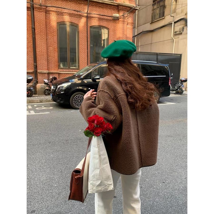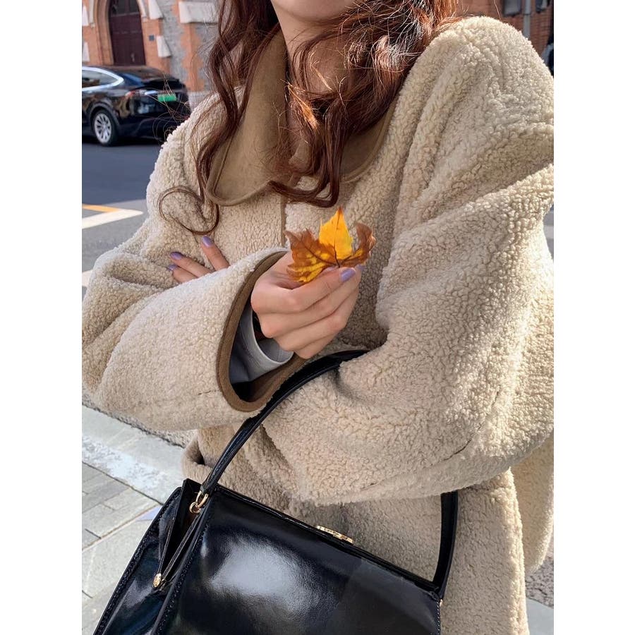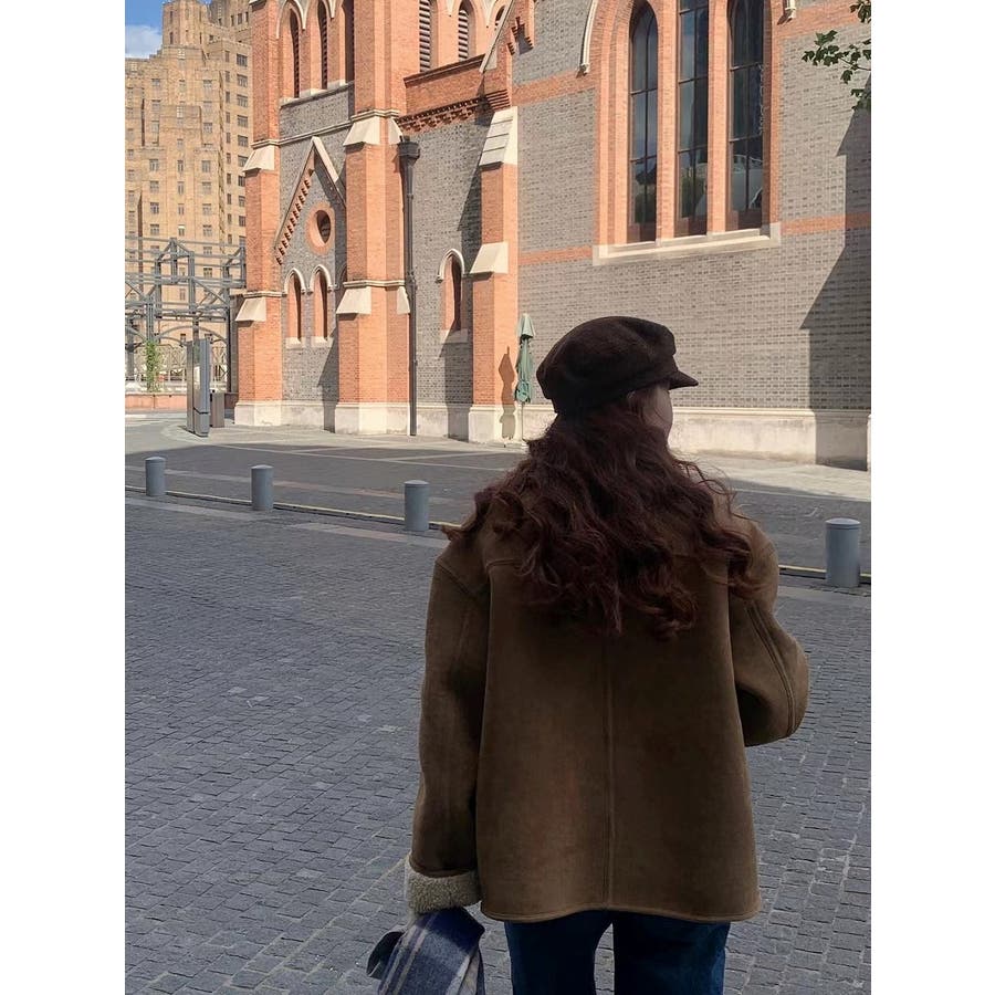 リバーシブル羊羔毛鹿の毛皮の綿毛ジャケット