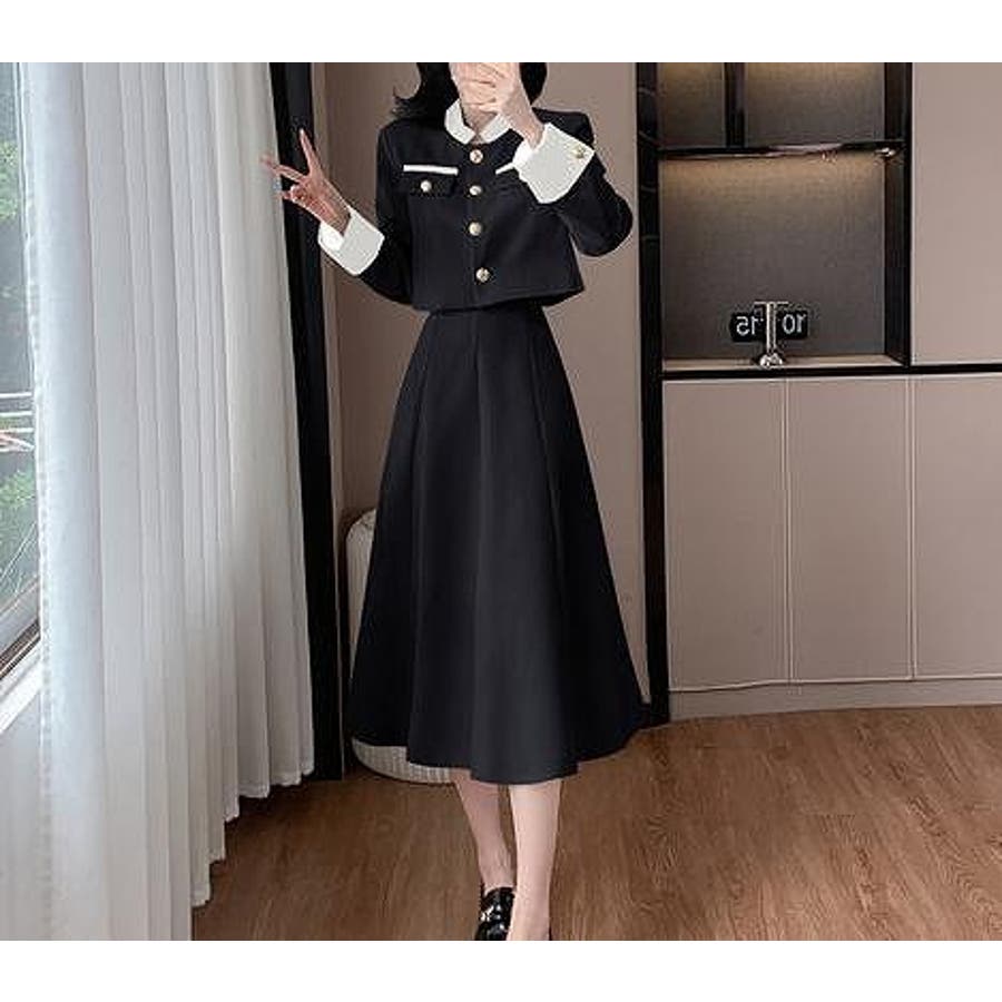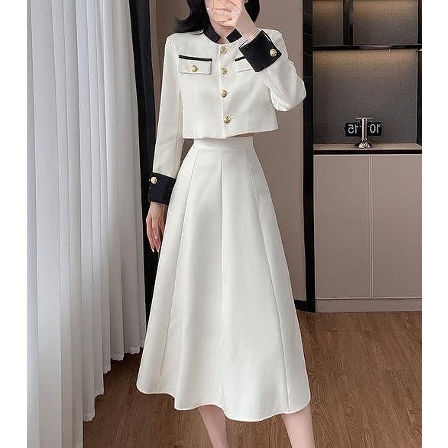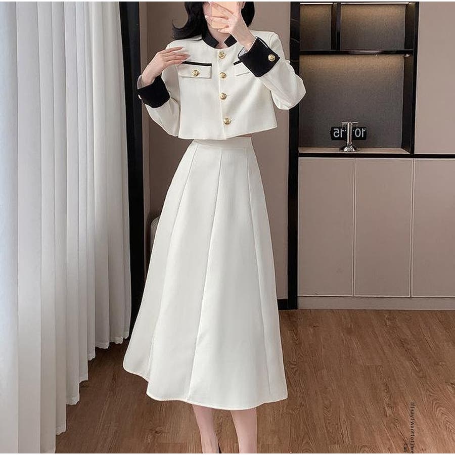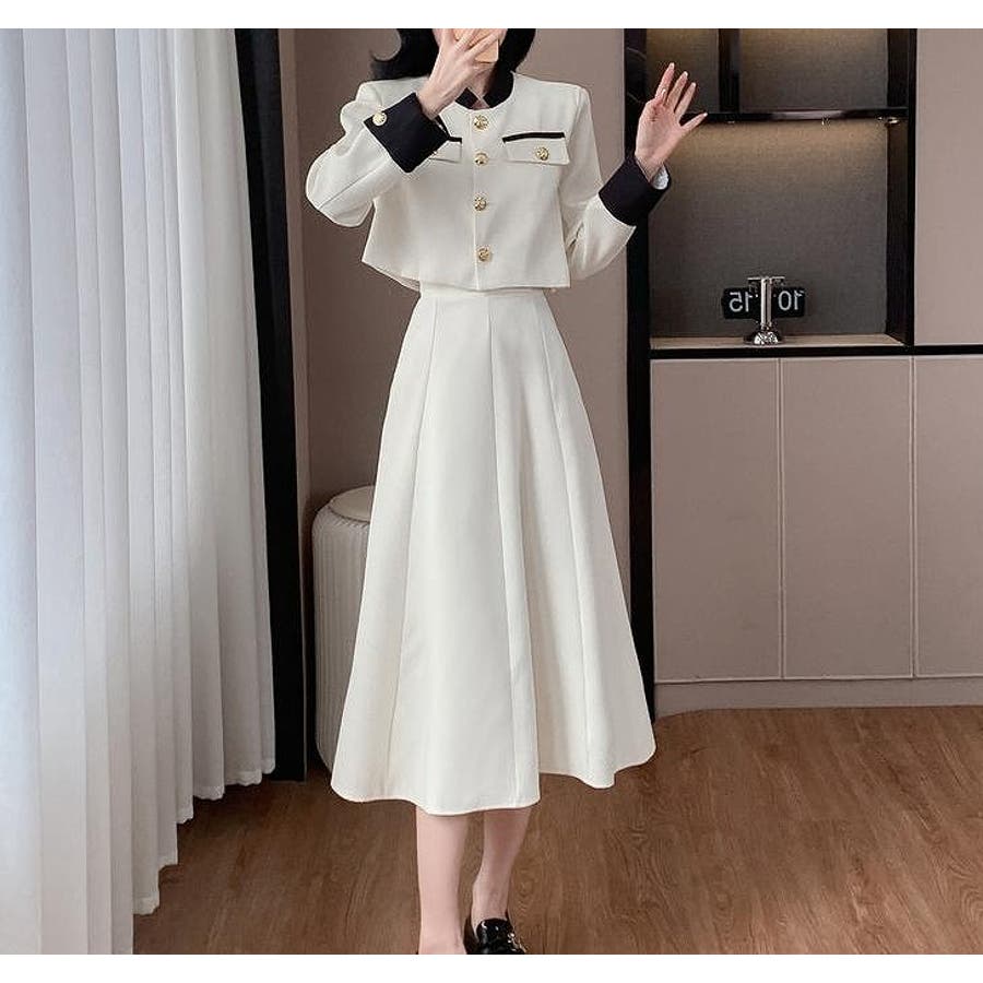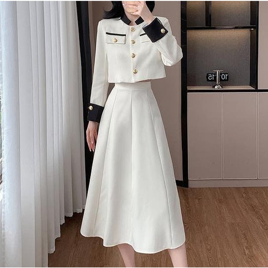 配色ショートジャケットスカートセットアップ