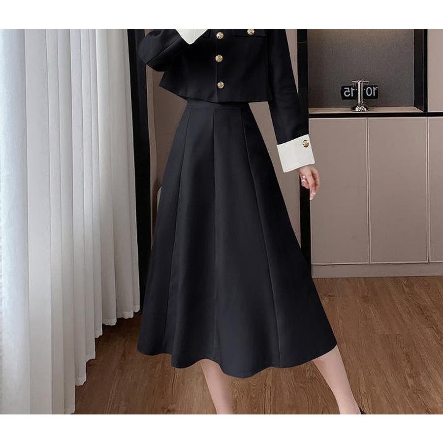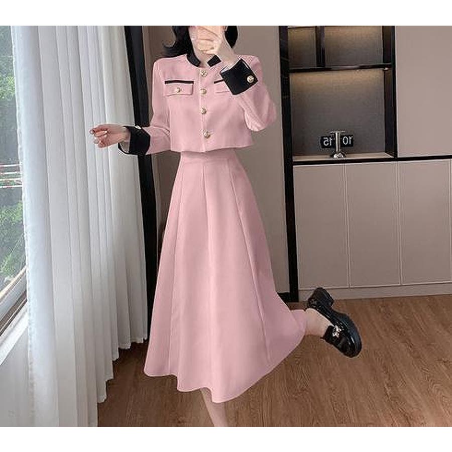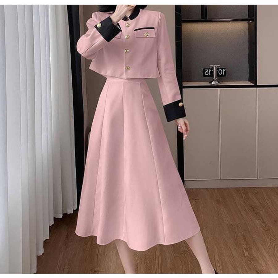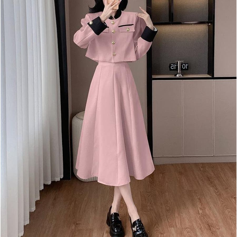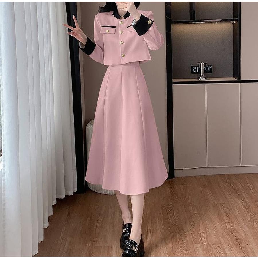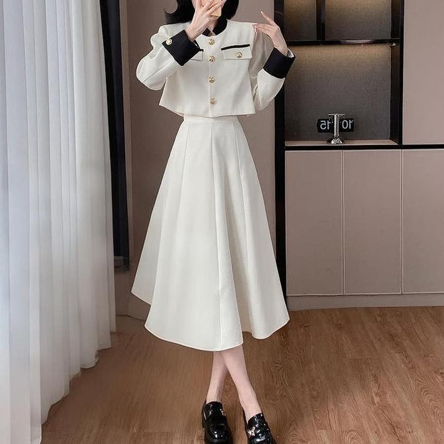 配色ショートジャケットスカートセットアップ