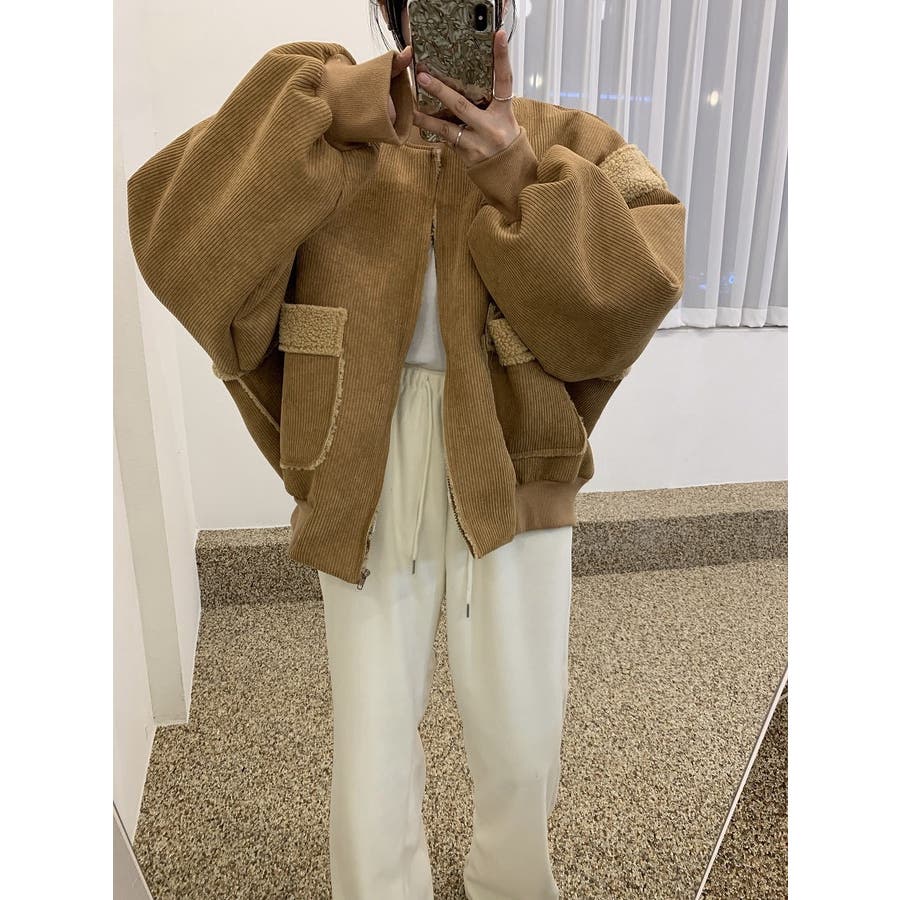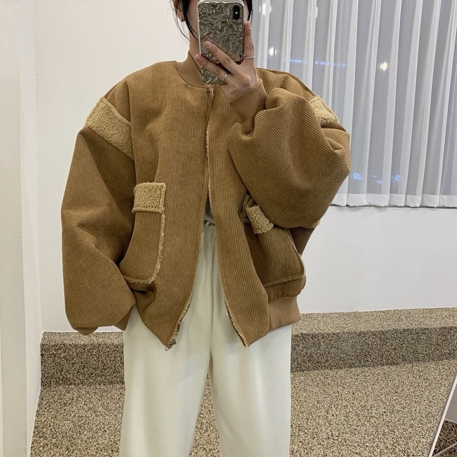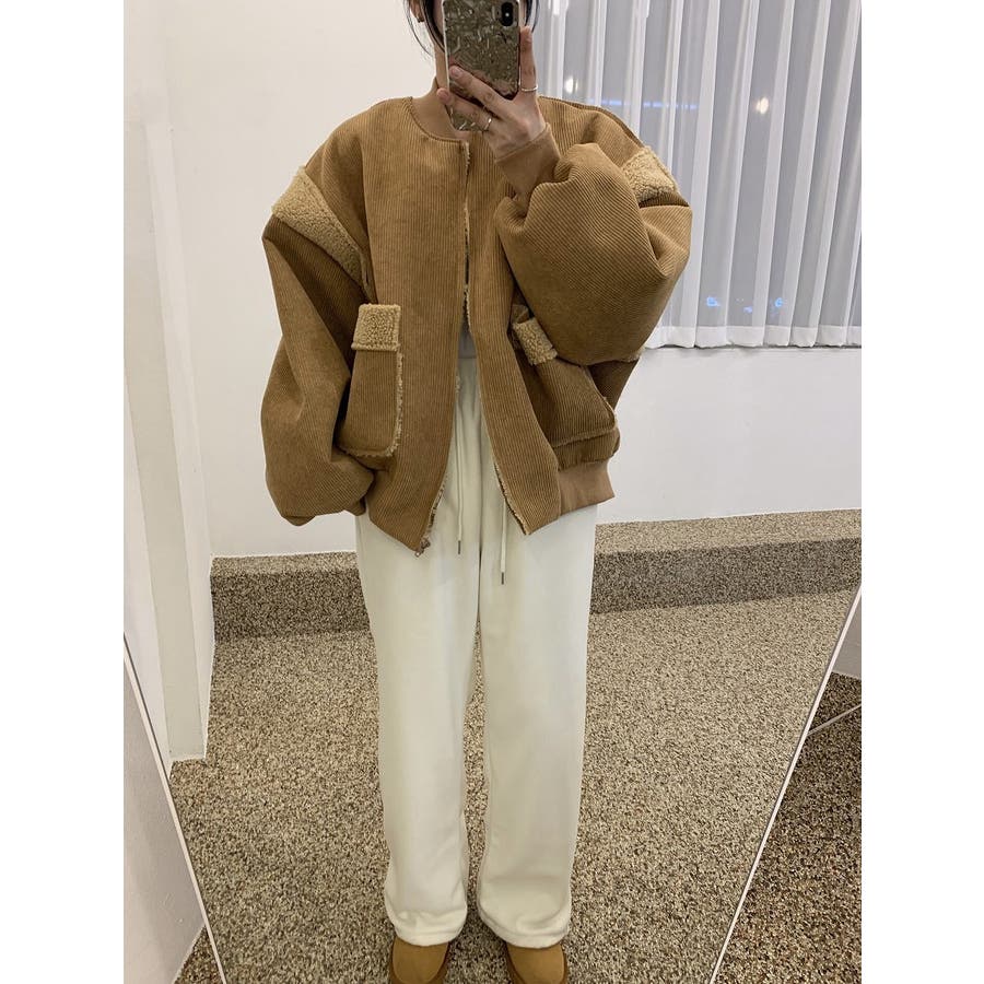 バック刺繍切り替えボアジャケット