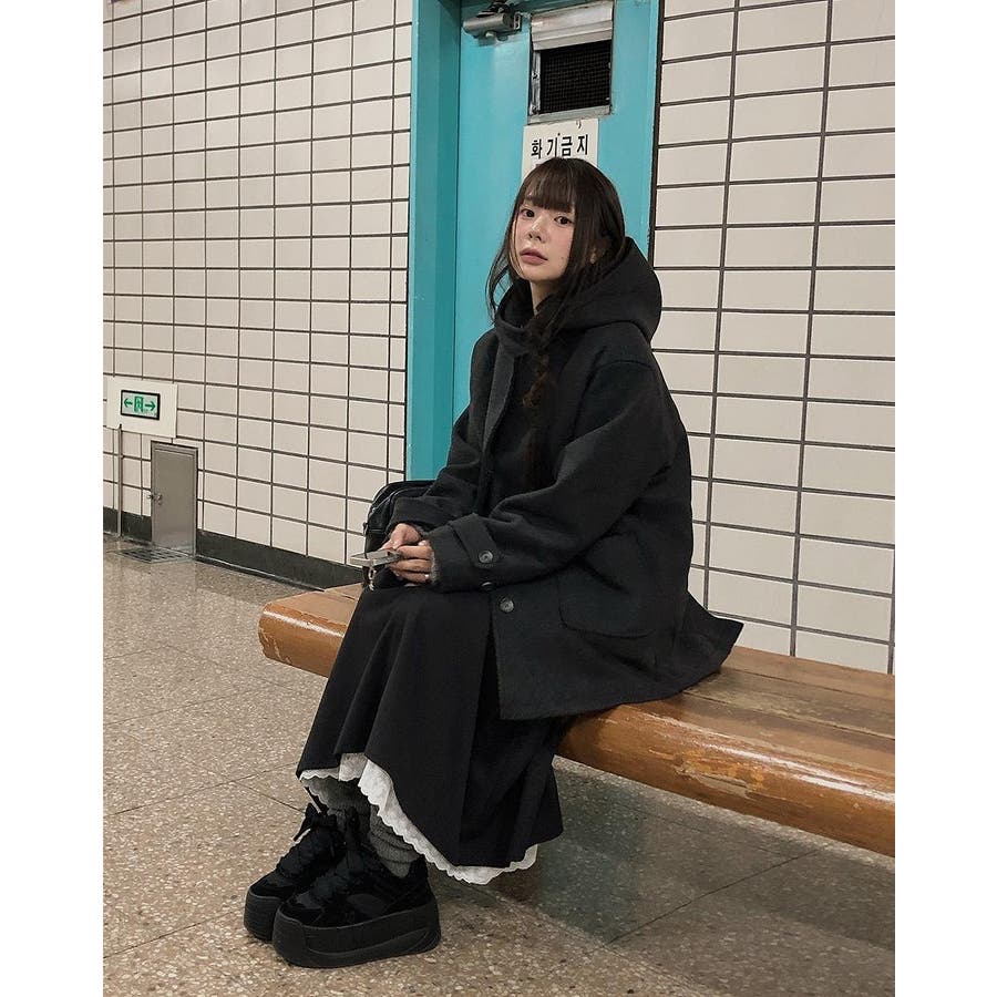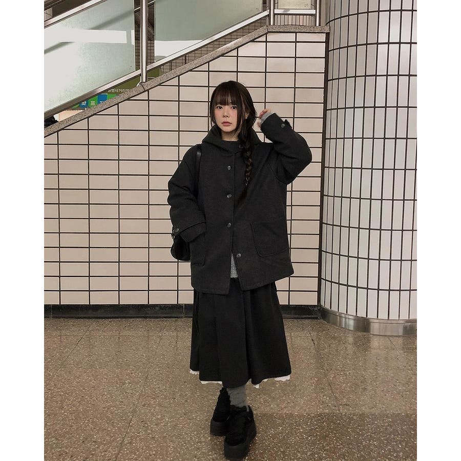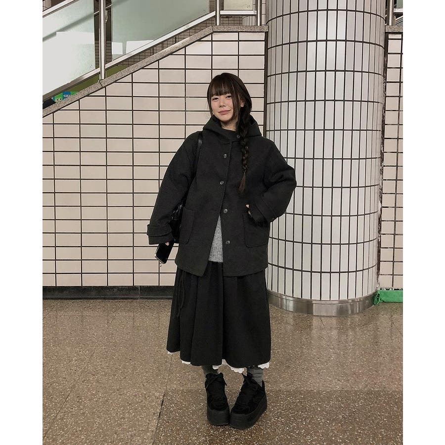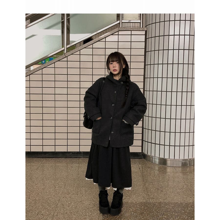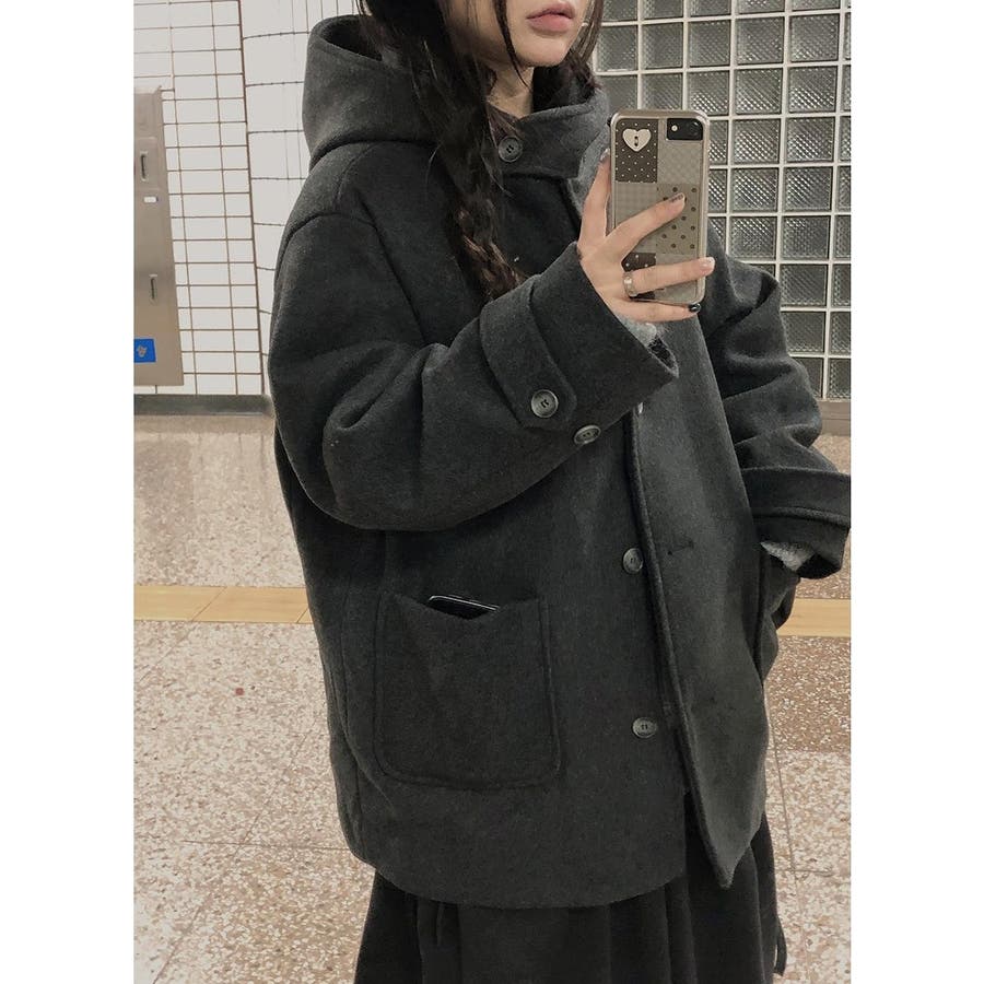 フード付きシングルブレストメルトンジャケット