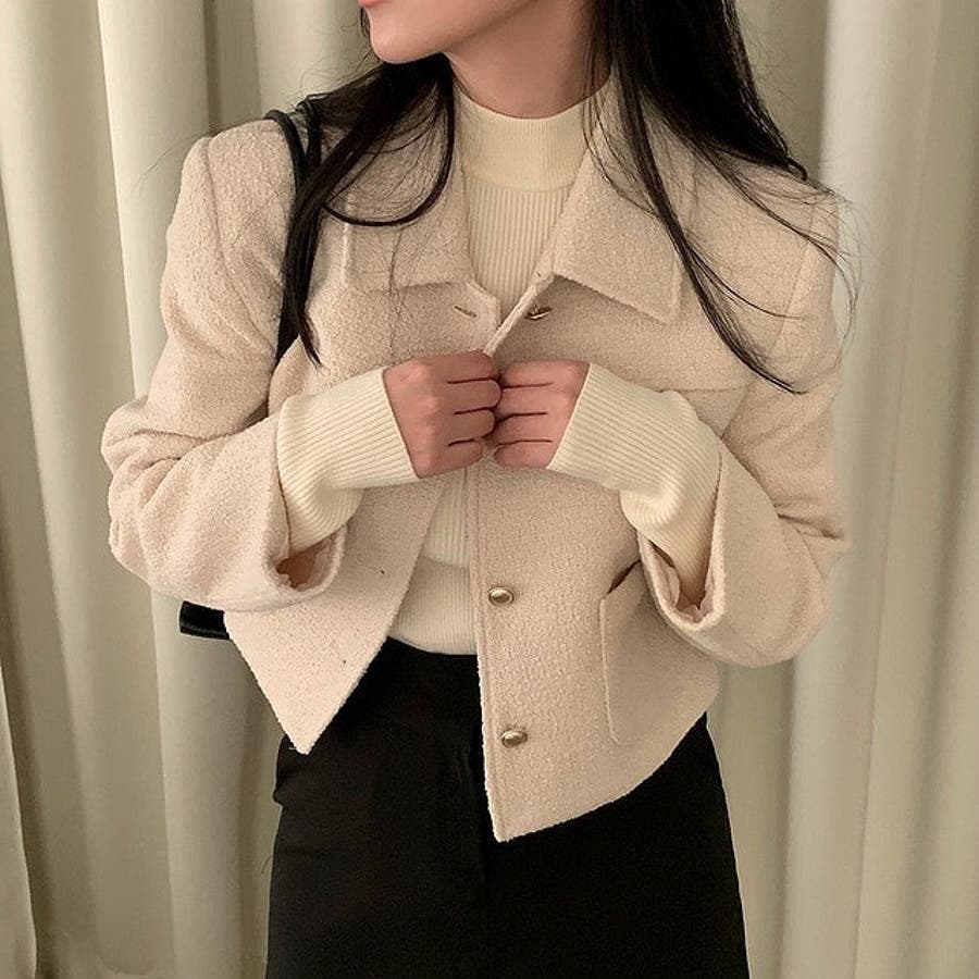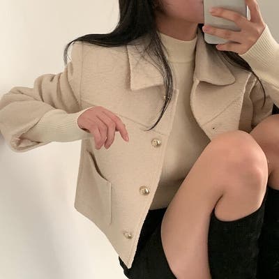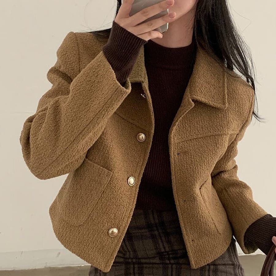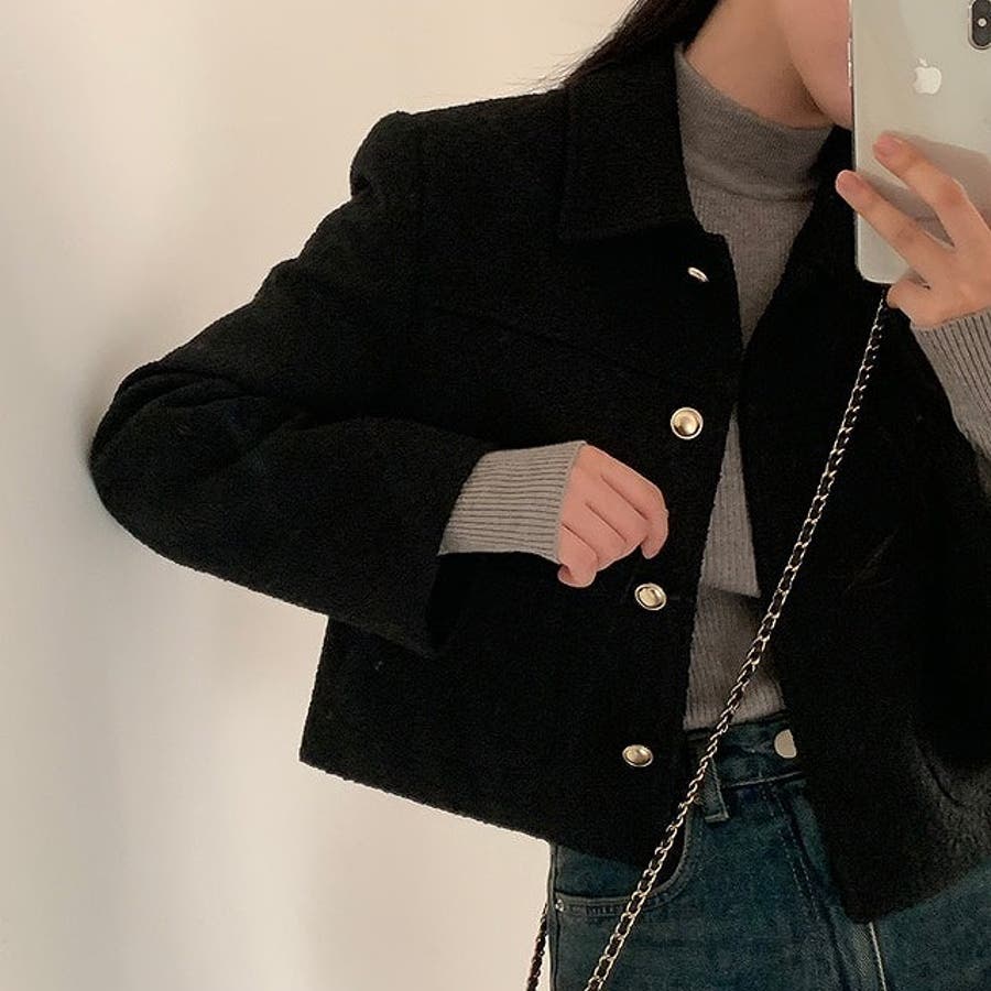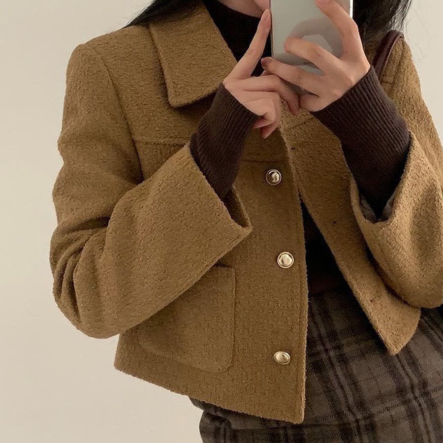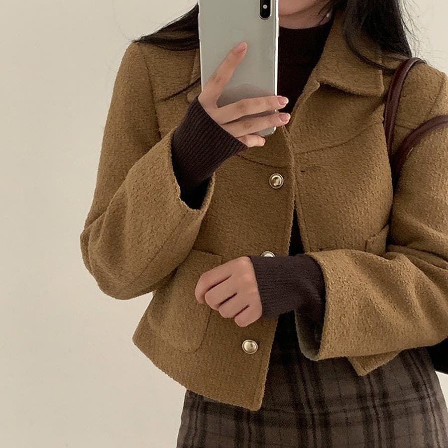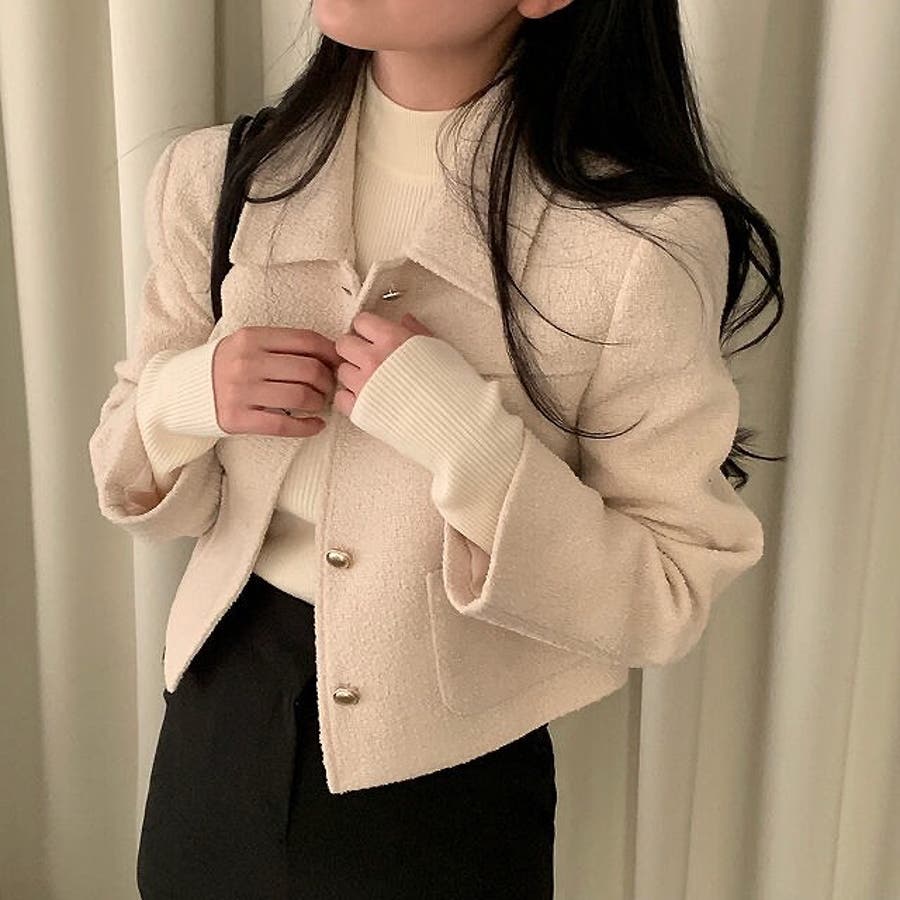 ショート襟付きシングルブレストメルトンジャケット