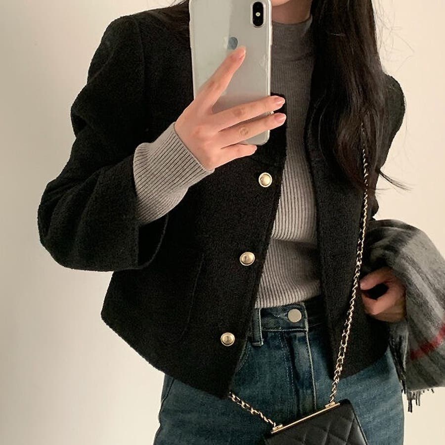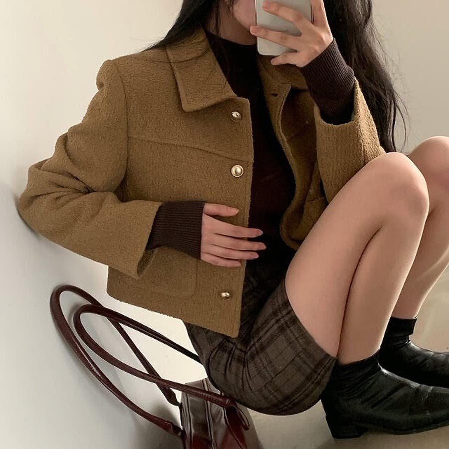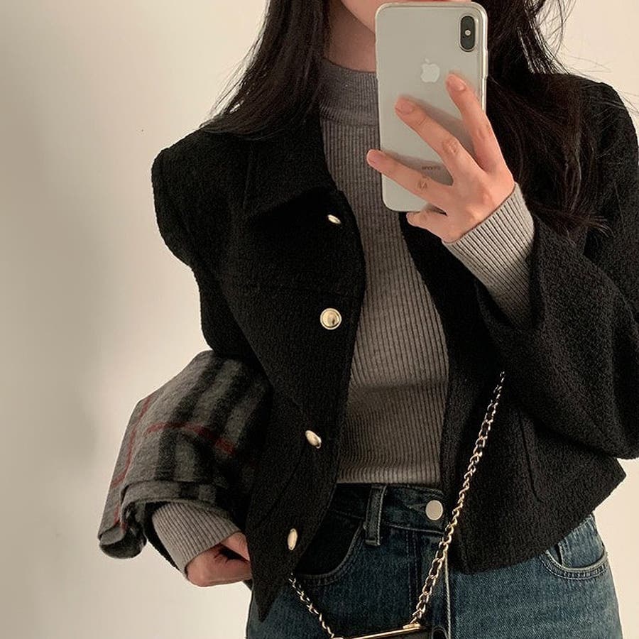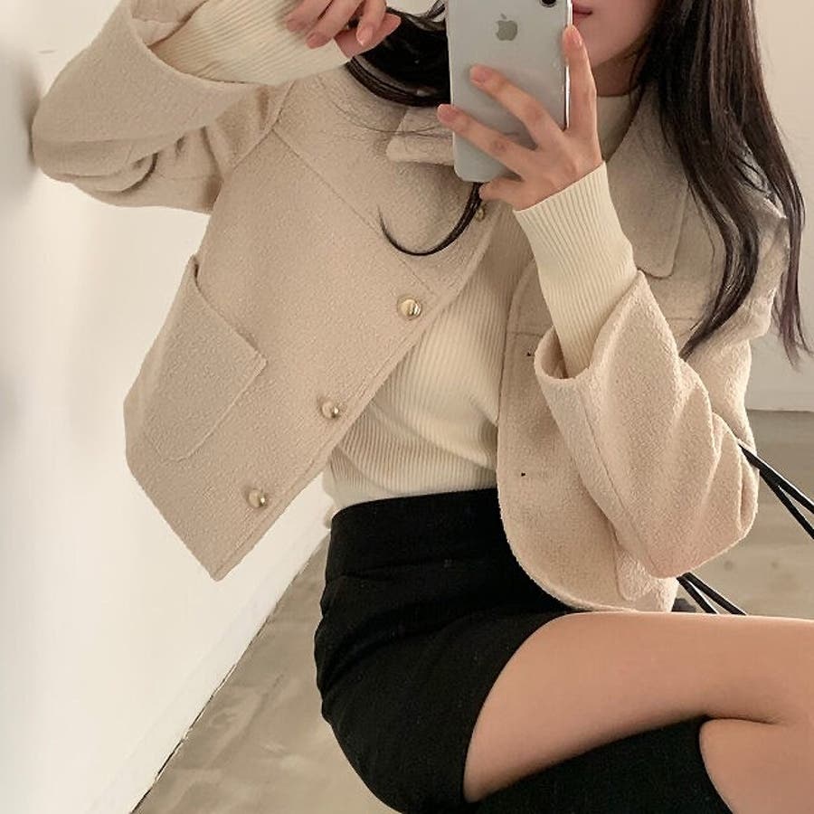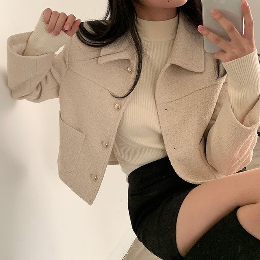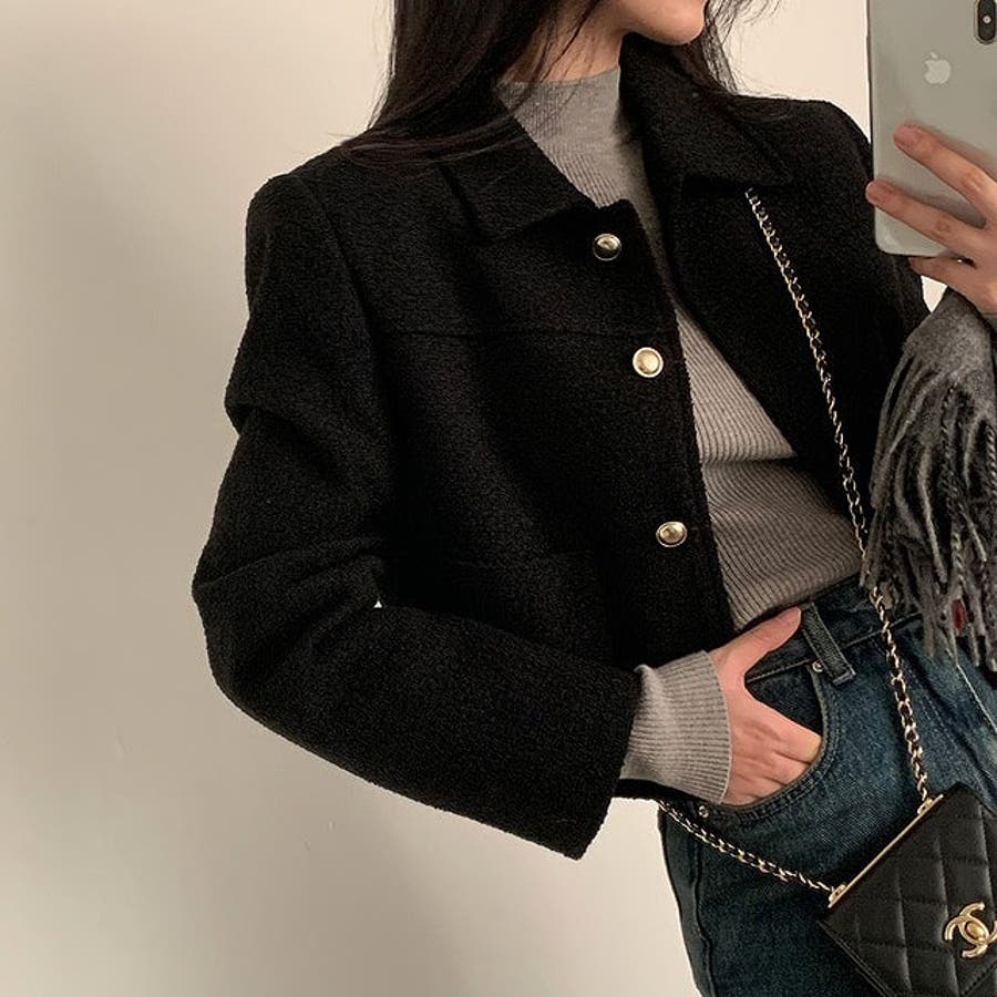 ショート襟付きシングルブレストメルトンジャケット