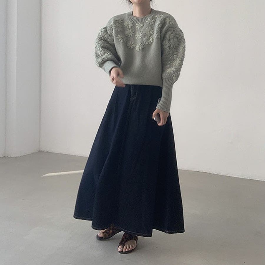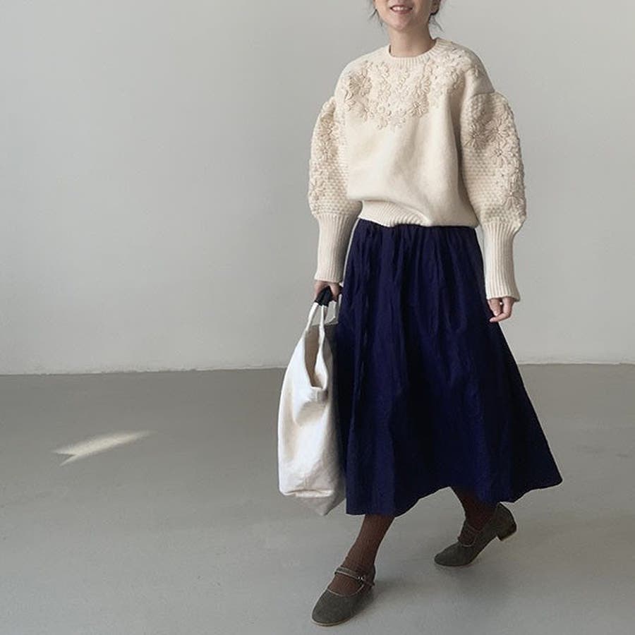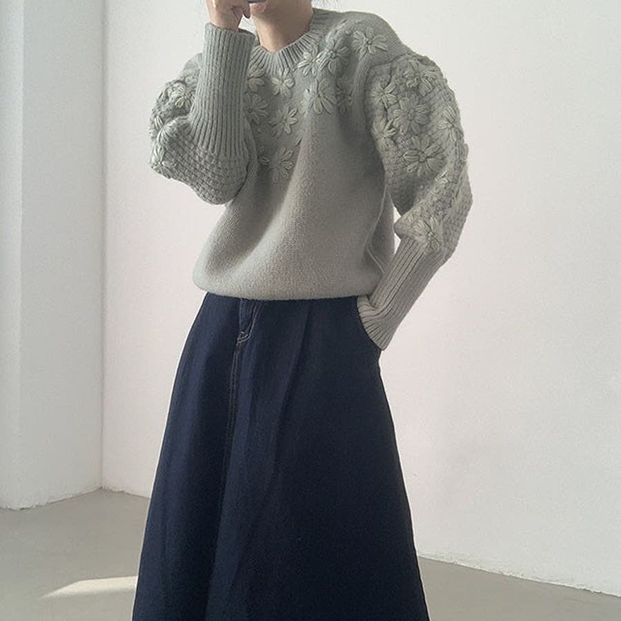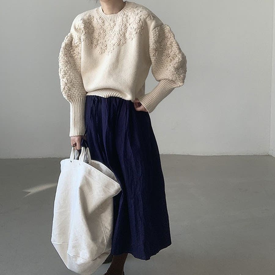 立体感があるフラワーセータートップス