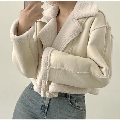 襟付き鹿の毛皮の綿毛ボアジャケット
