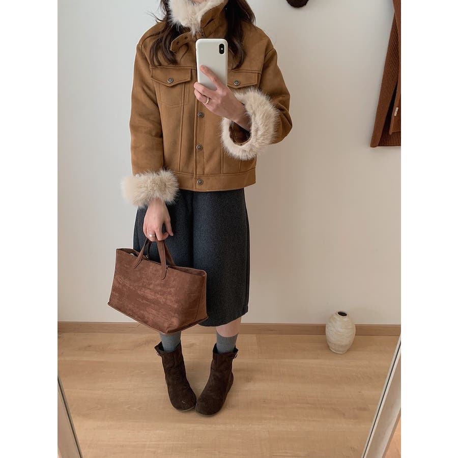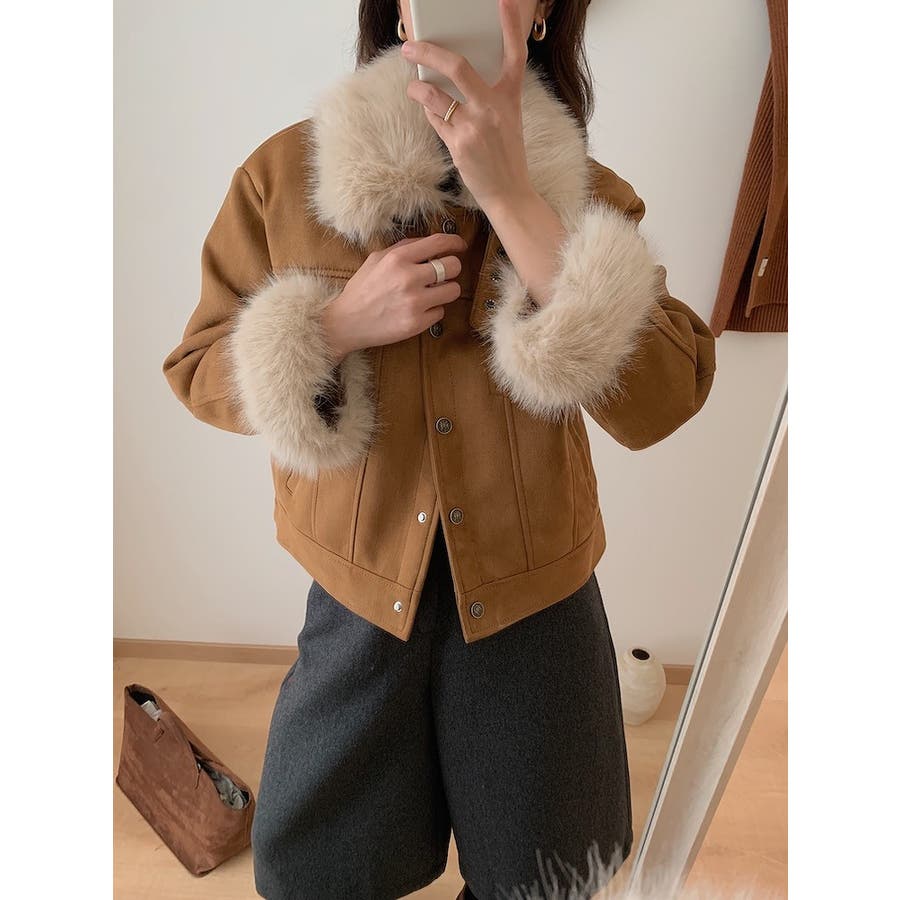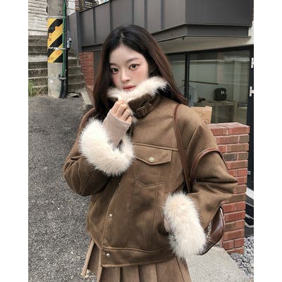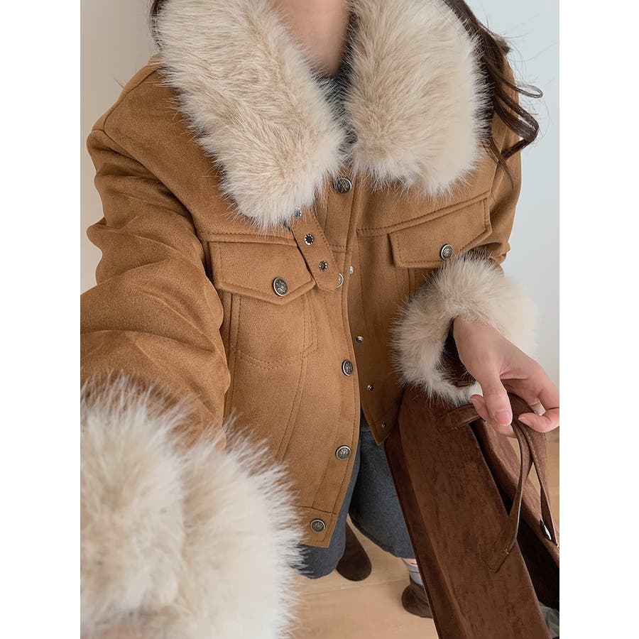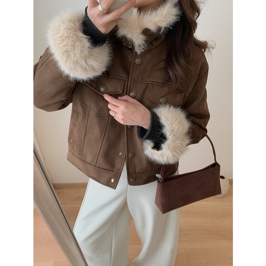 クルーネックシングルブレストフェイクスエードジャケット