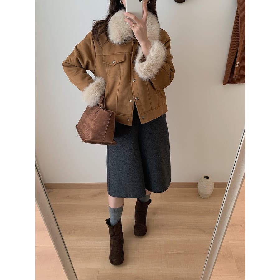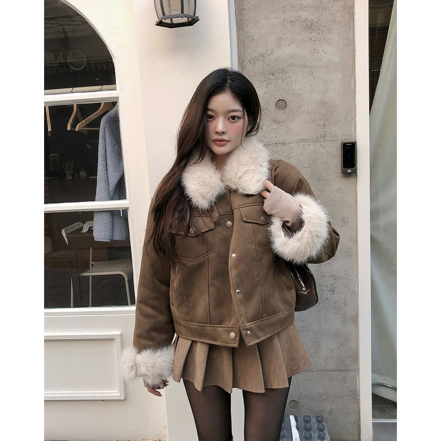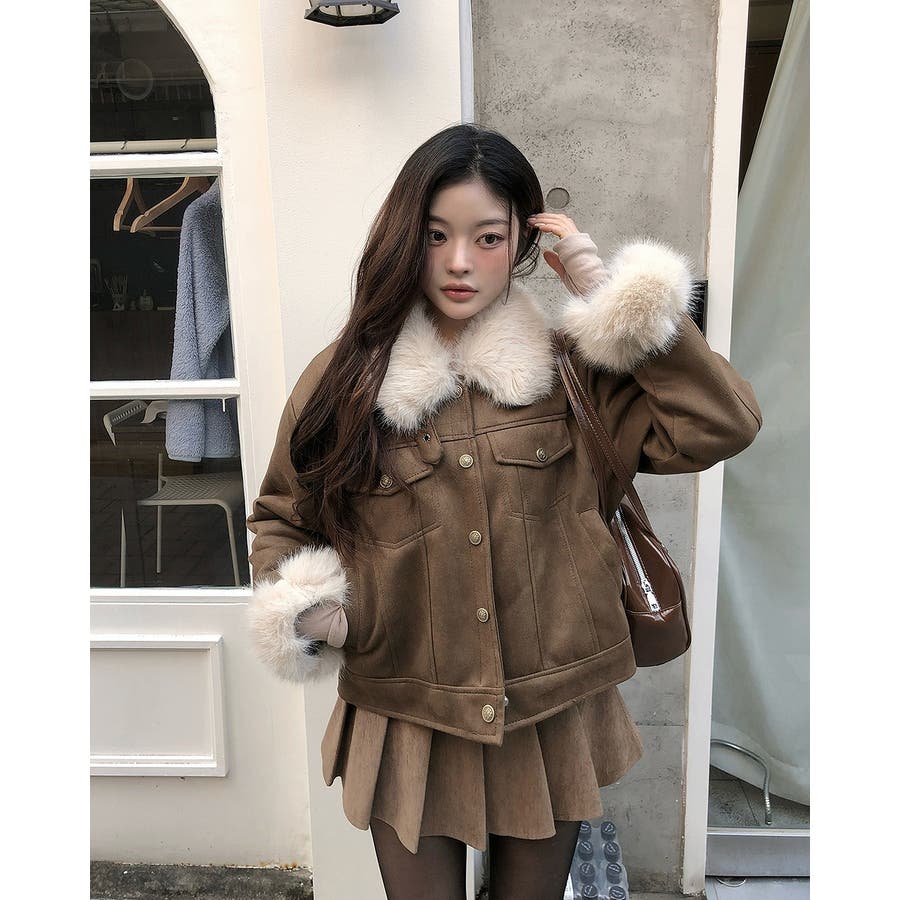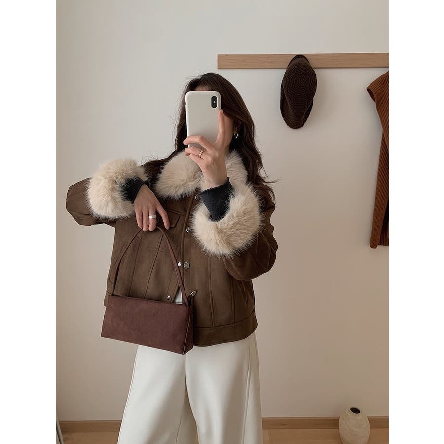 クルーネックシングルブレストフェイクスエードジャケット