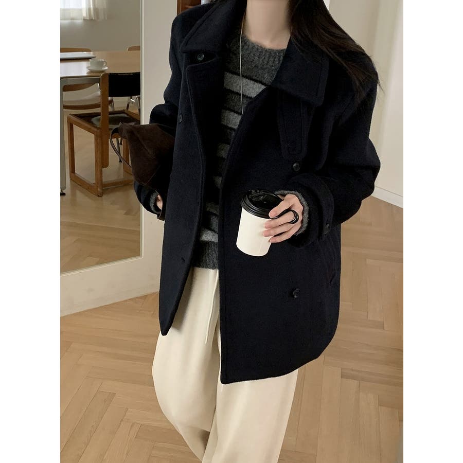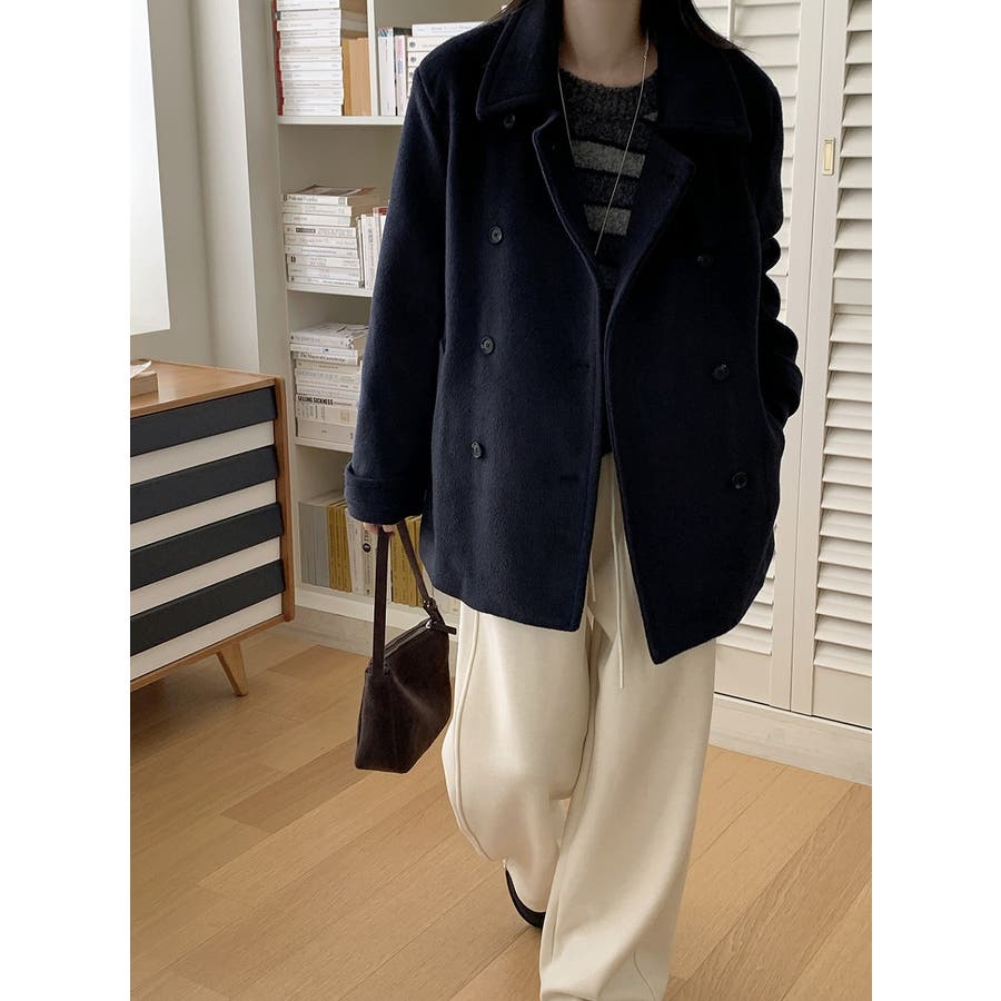 スタンドカラーダブルブレストメルトンジャケット