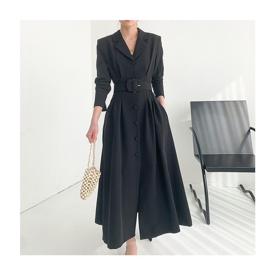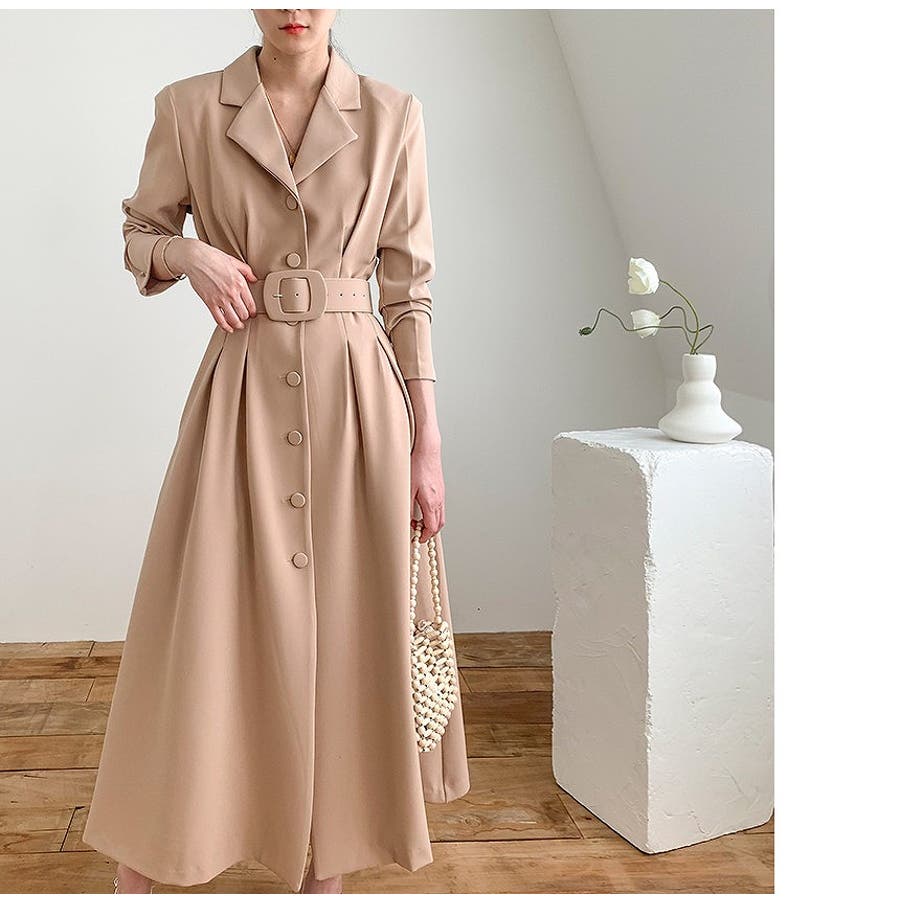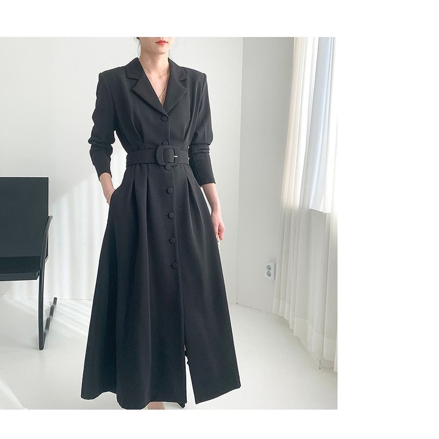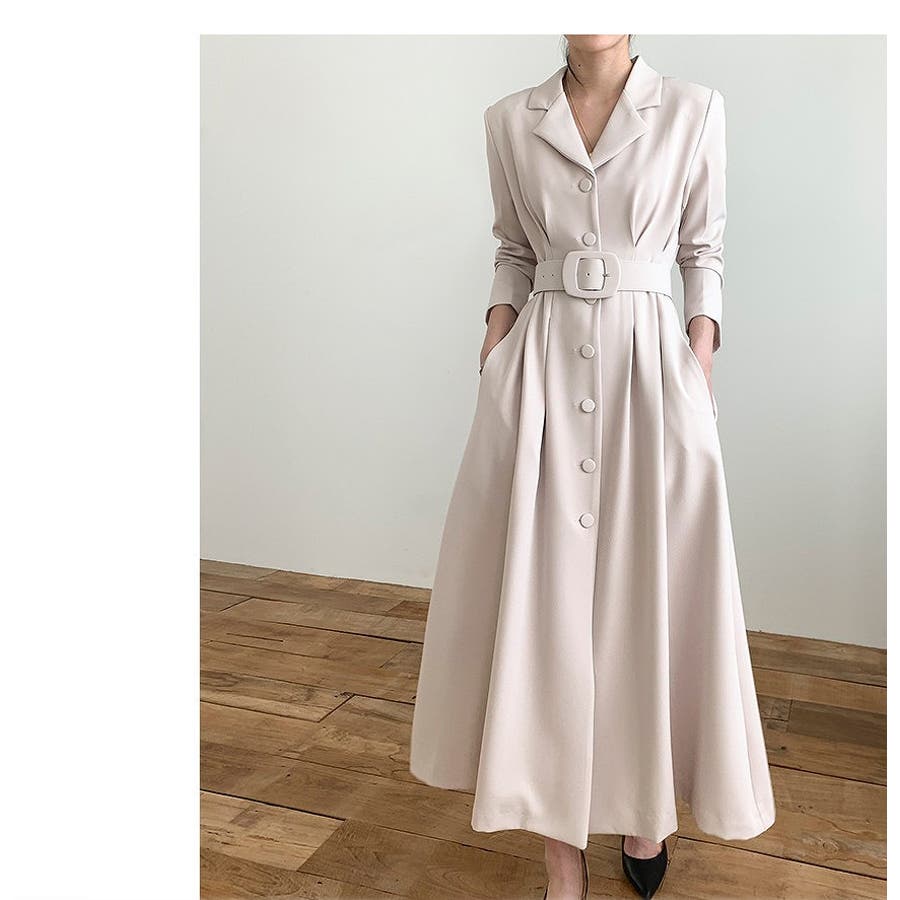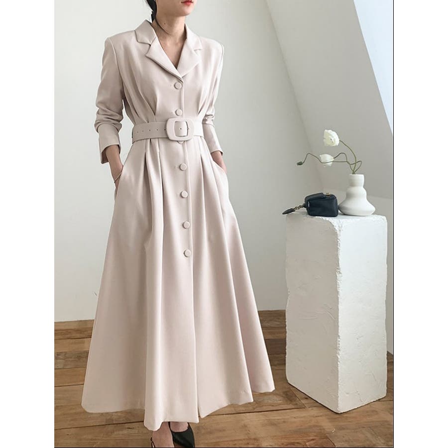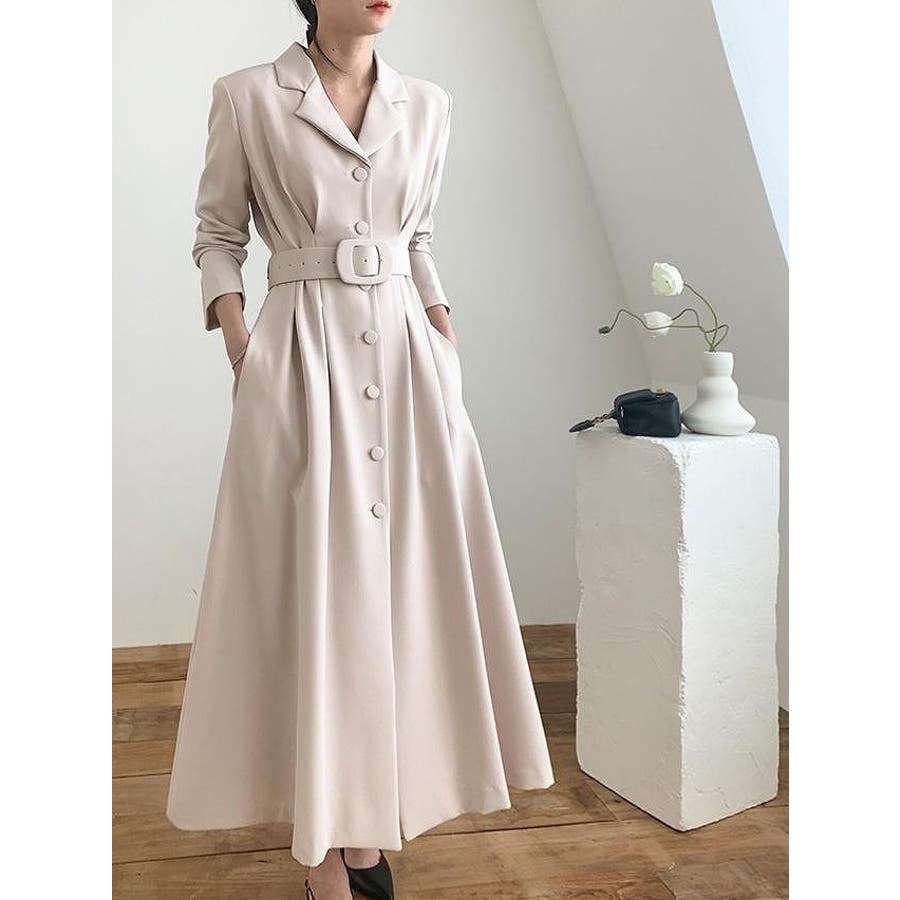 ロング襟付きシングルブレストワンピース